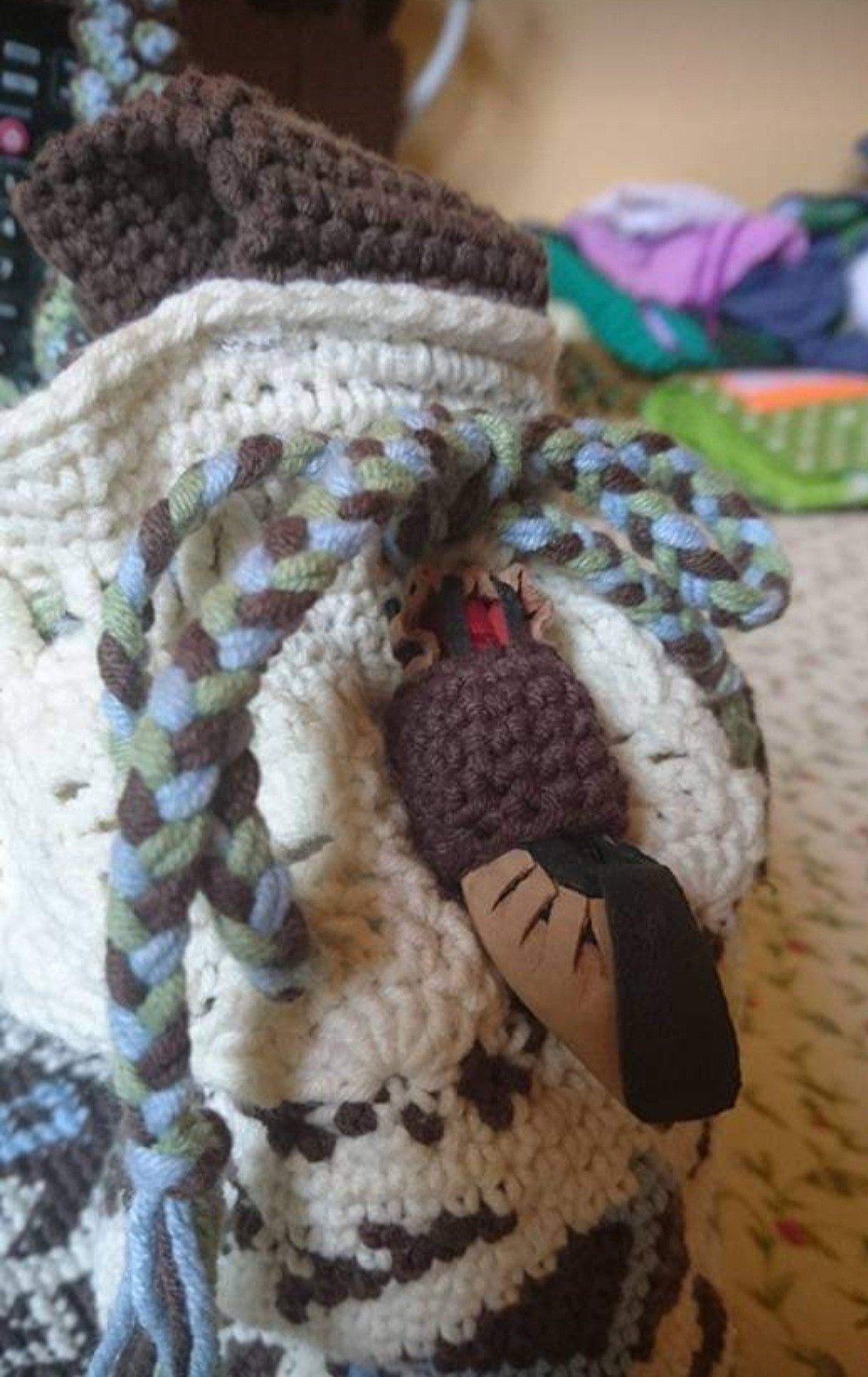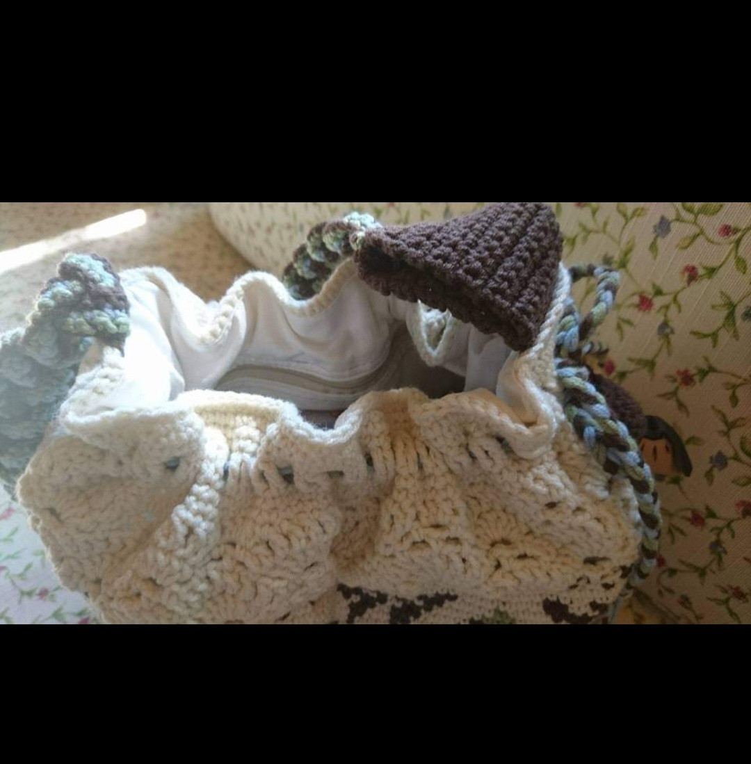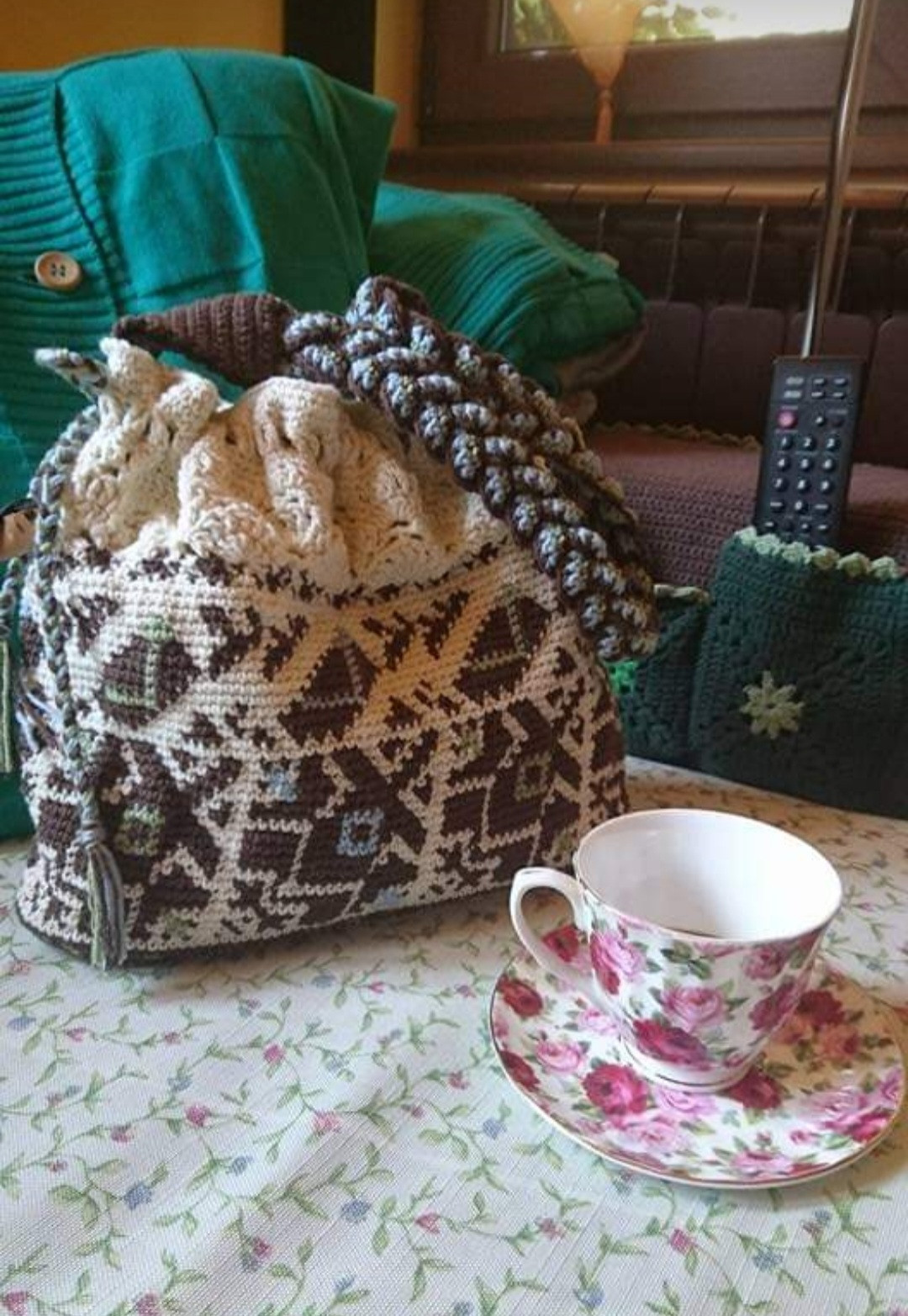 Чанта 1, памучна прежда, на една кука, с плевенска шевица, с мускалче розово масло в цървулче, подплата с отделения.