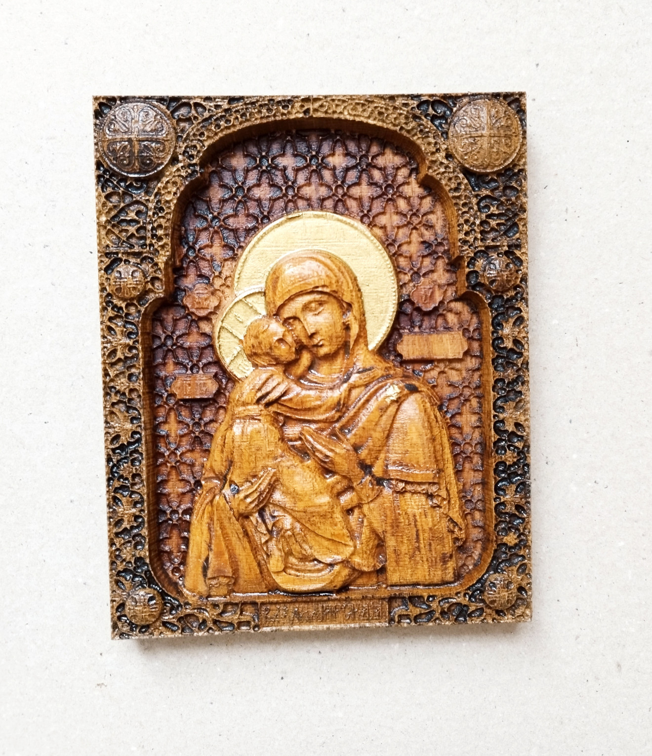Икона на Св. Богородица Материал - дъб покритие - восък, масло и варак размери 150/190 мм Може и с поръчка с размер по ваше желание - време за изработка 10 раб.дни