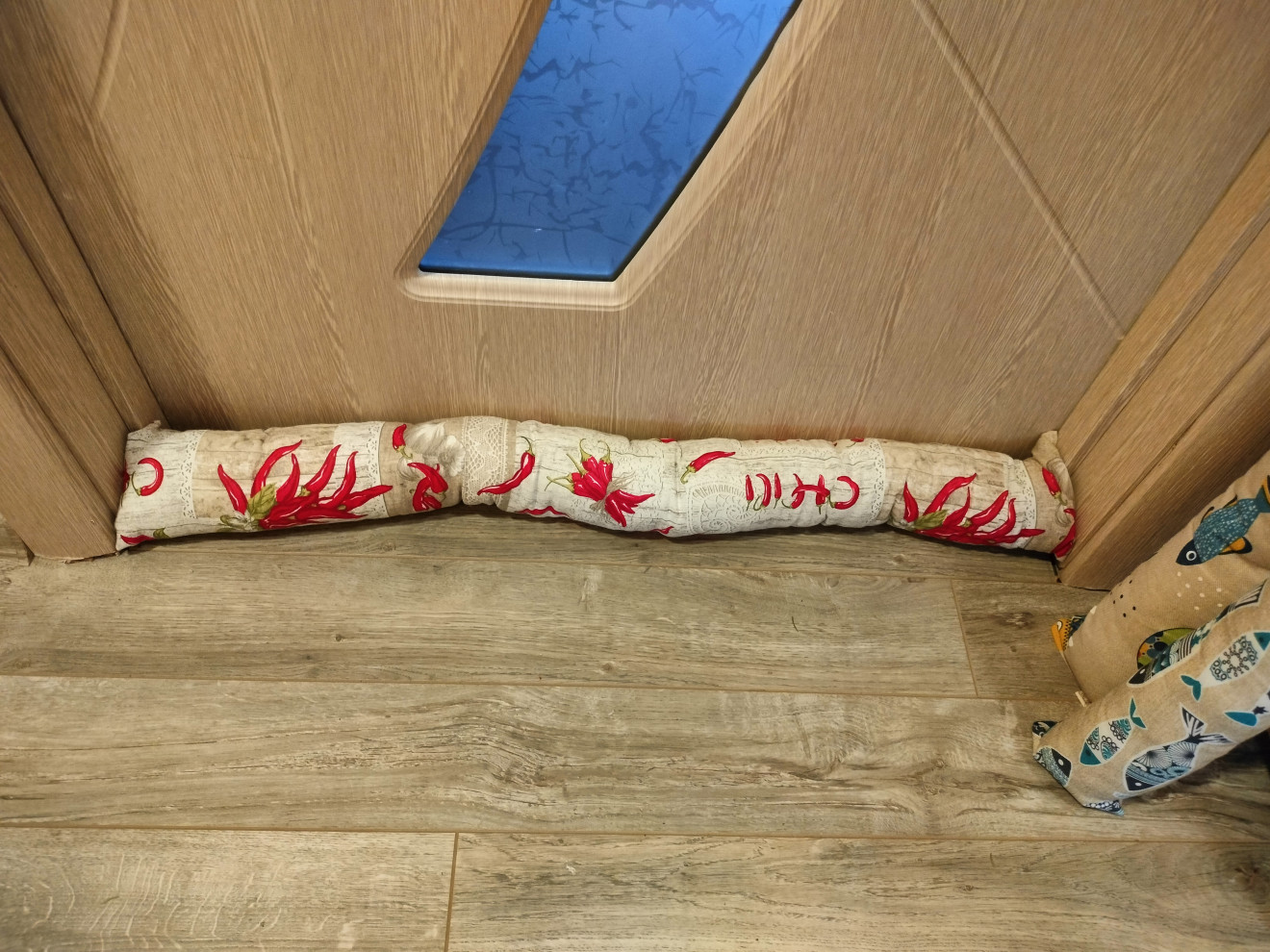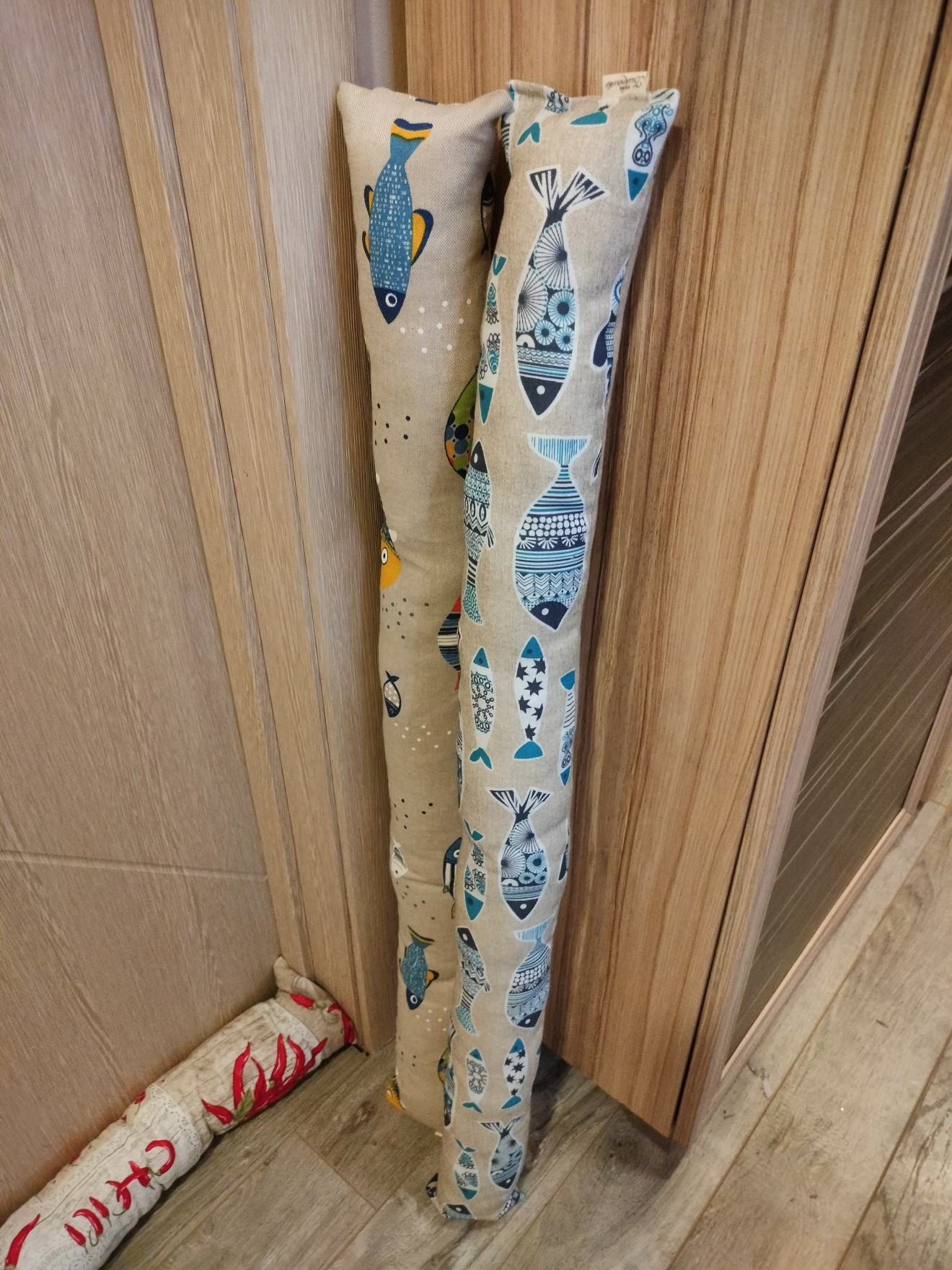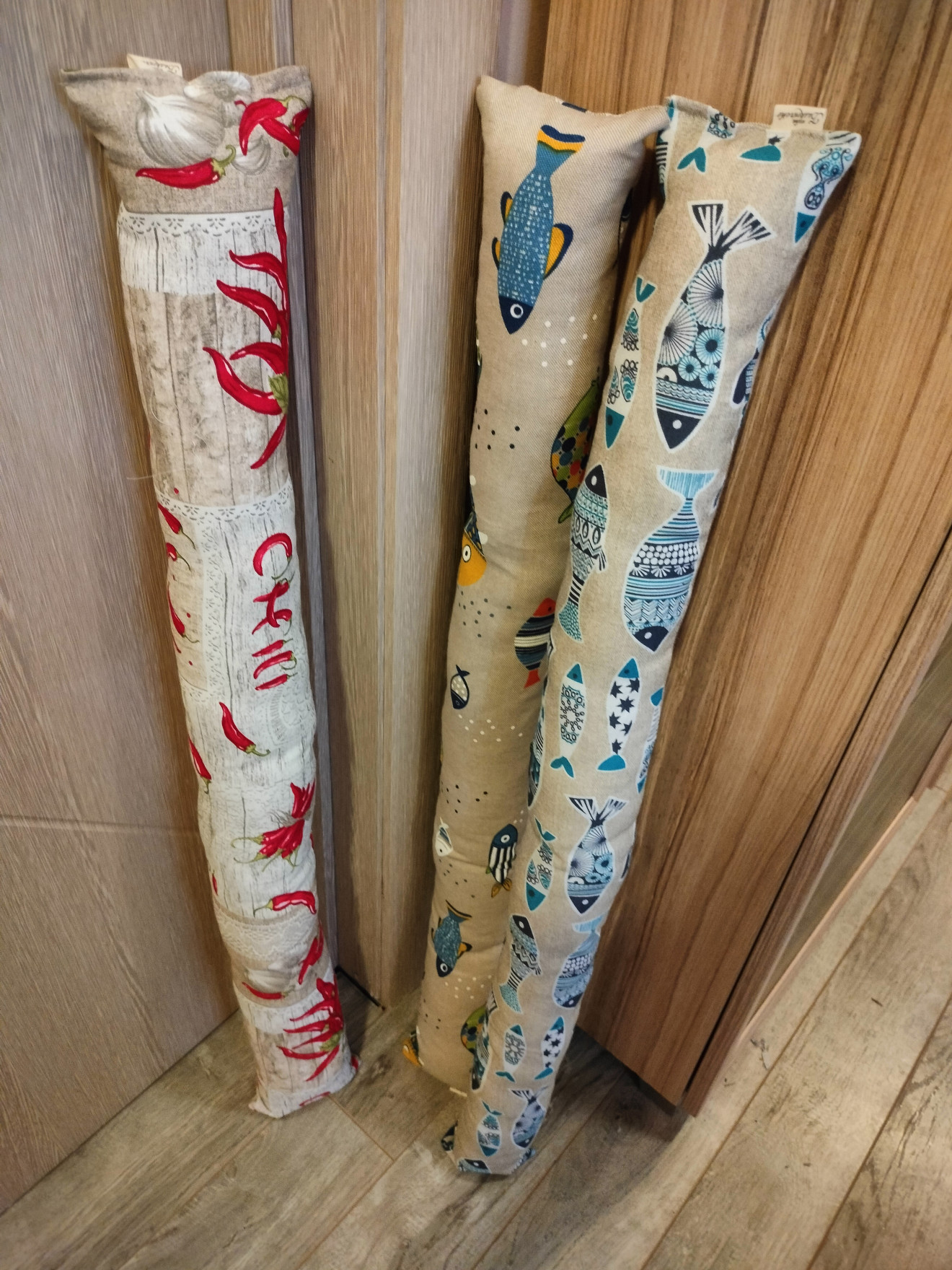 Свеж и практичен аксесоар за всеки дом. Уплътнителя за врата е забавен аксесоар, който предотвратява течението, което се получава под вратите. Може да изберете в десен, който да подхожда на интериора или да е ярък акцент. Изработен от платове, които се подържат лесно. Пълен със силиконов пух. Спокойно може да се пере в пералнята. Размерите могат да бъдат 10х90см. На цена от 15лв. 10х60см. На цена от 12лв. За други размери, цената се договаря допълнително.