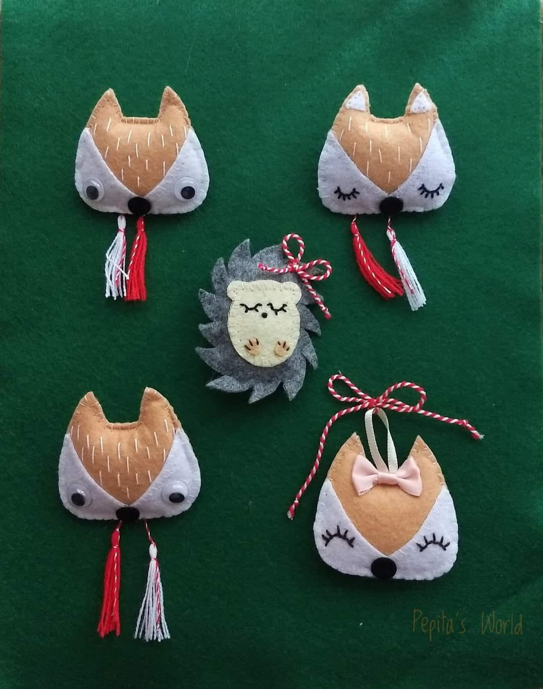 Изцяло ръчно изработени мартенички за закичване, може да се изработи и за закачване. Материал - Филц Пълнеж - Пух Когато видите щъркел, махнете червено- белия конец и използвайте изделието целогодишно като брошка или декорация.