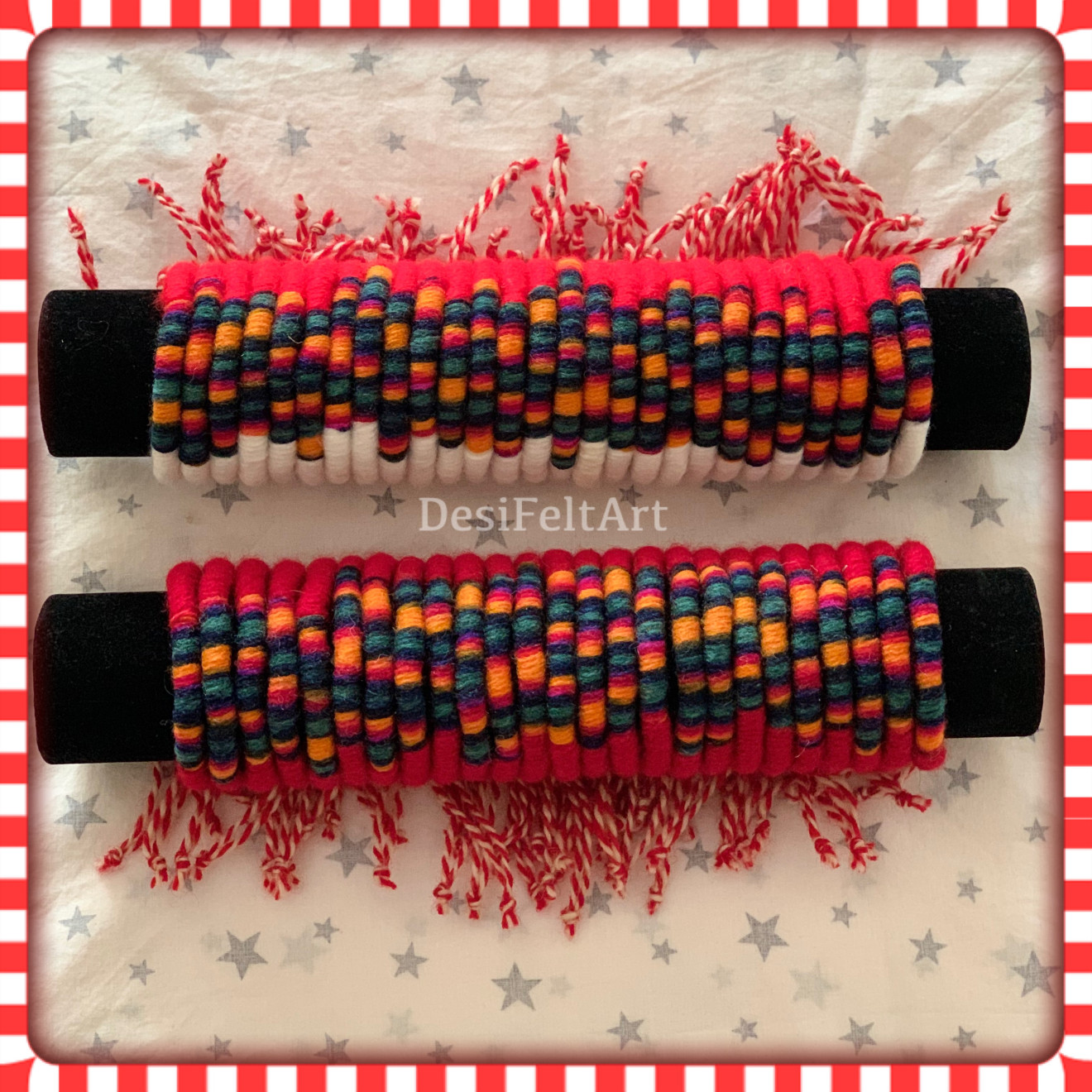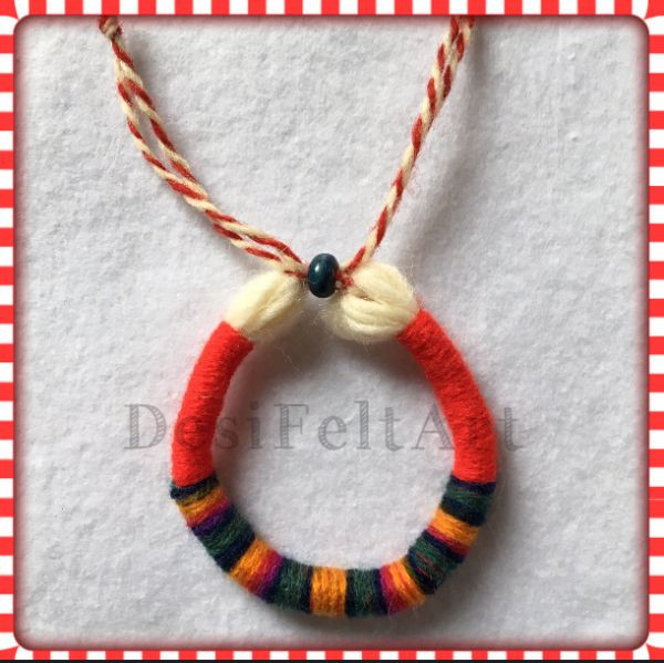 Ръчно изработени мартеници от прежда и дървено мънисто.