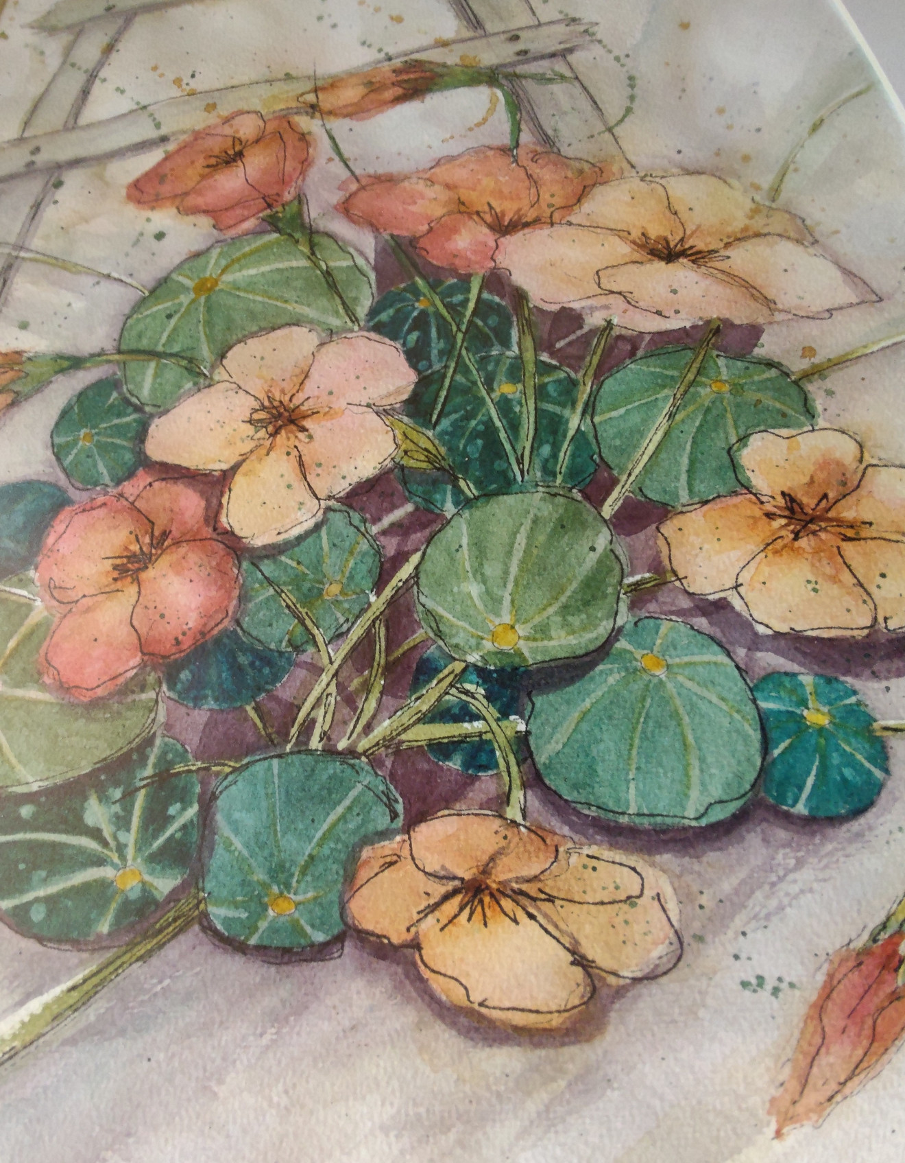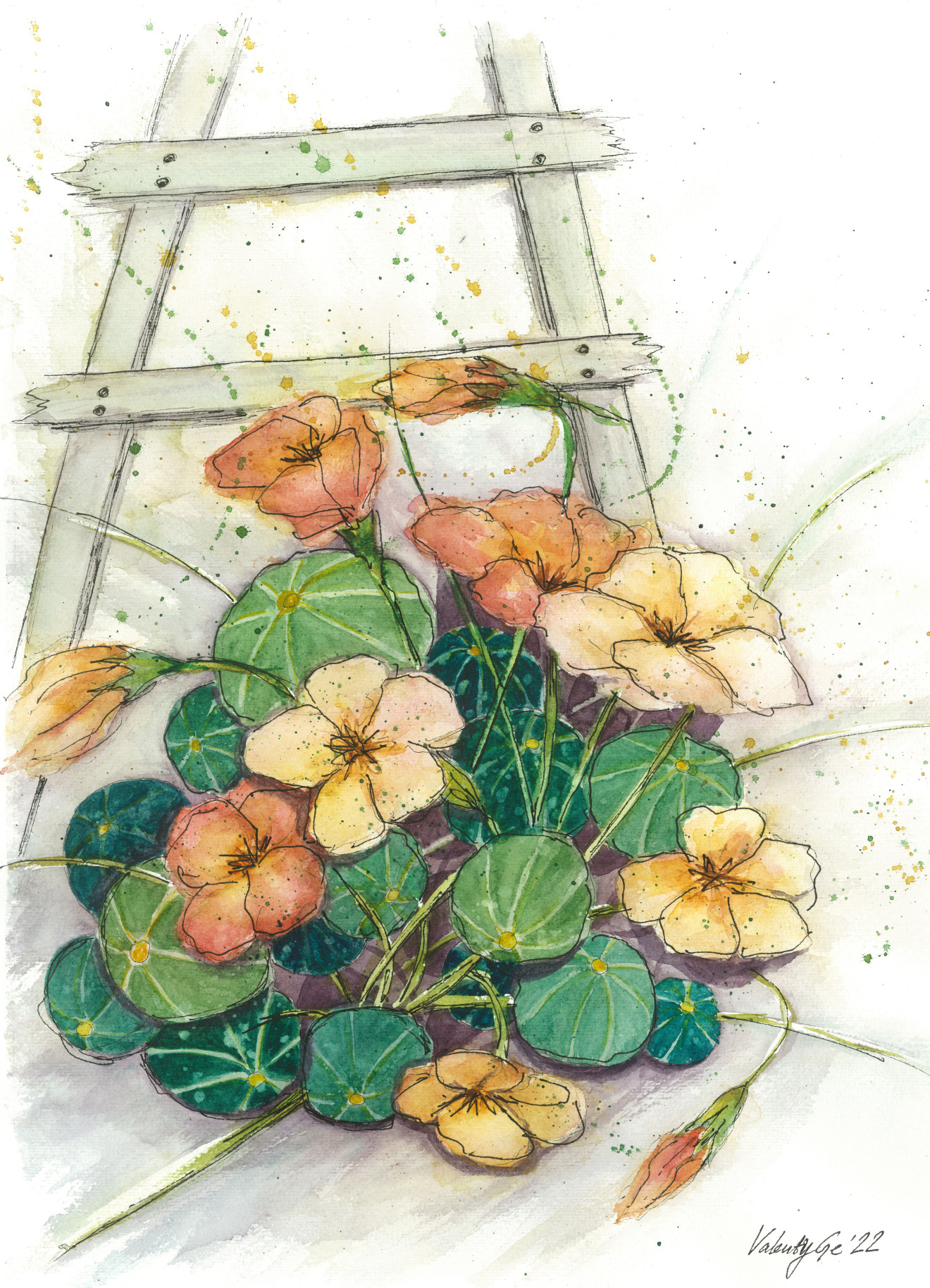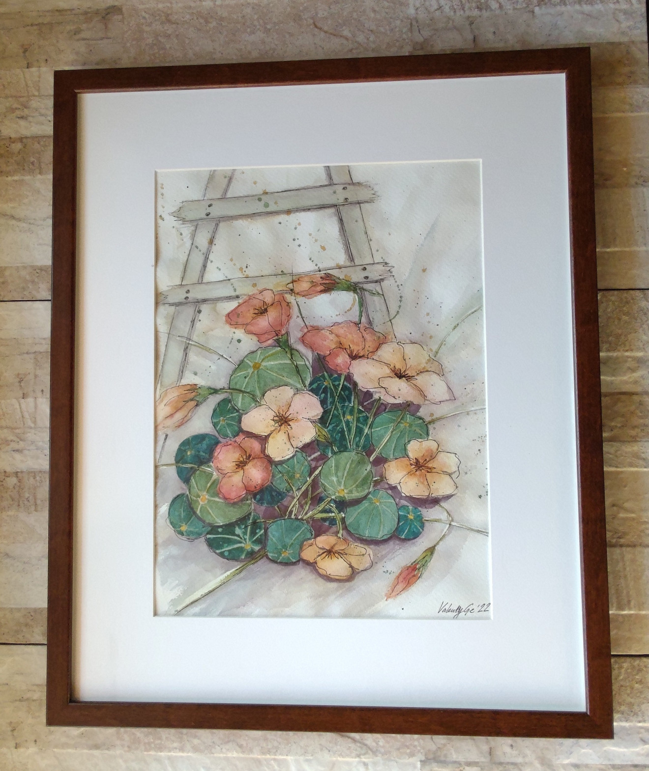 "Латинки в двора" - акварел 30х40 см Толкова нежни, цветни - обичам латинките и тяхната нежна невинност. *Цената е без рамка и паспарту.