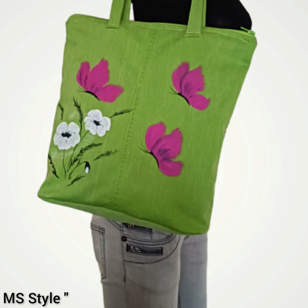 #Ръчно #рисувана и #изработена #дамска #чанта" Чантата е #ръчно #изработена от #деним, #ръчно #рисувана с #бои за #текстил, с #едно #отделение, закопчава се с #цип, памучна #подплата и #вътрешен #джоб, размери ширина 37 см, височина 36 см, дъно 32/8 см, цена 60 лв, препоръчвам деликатно пране на 30 градуса и гладене от вътрешната страна.