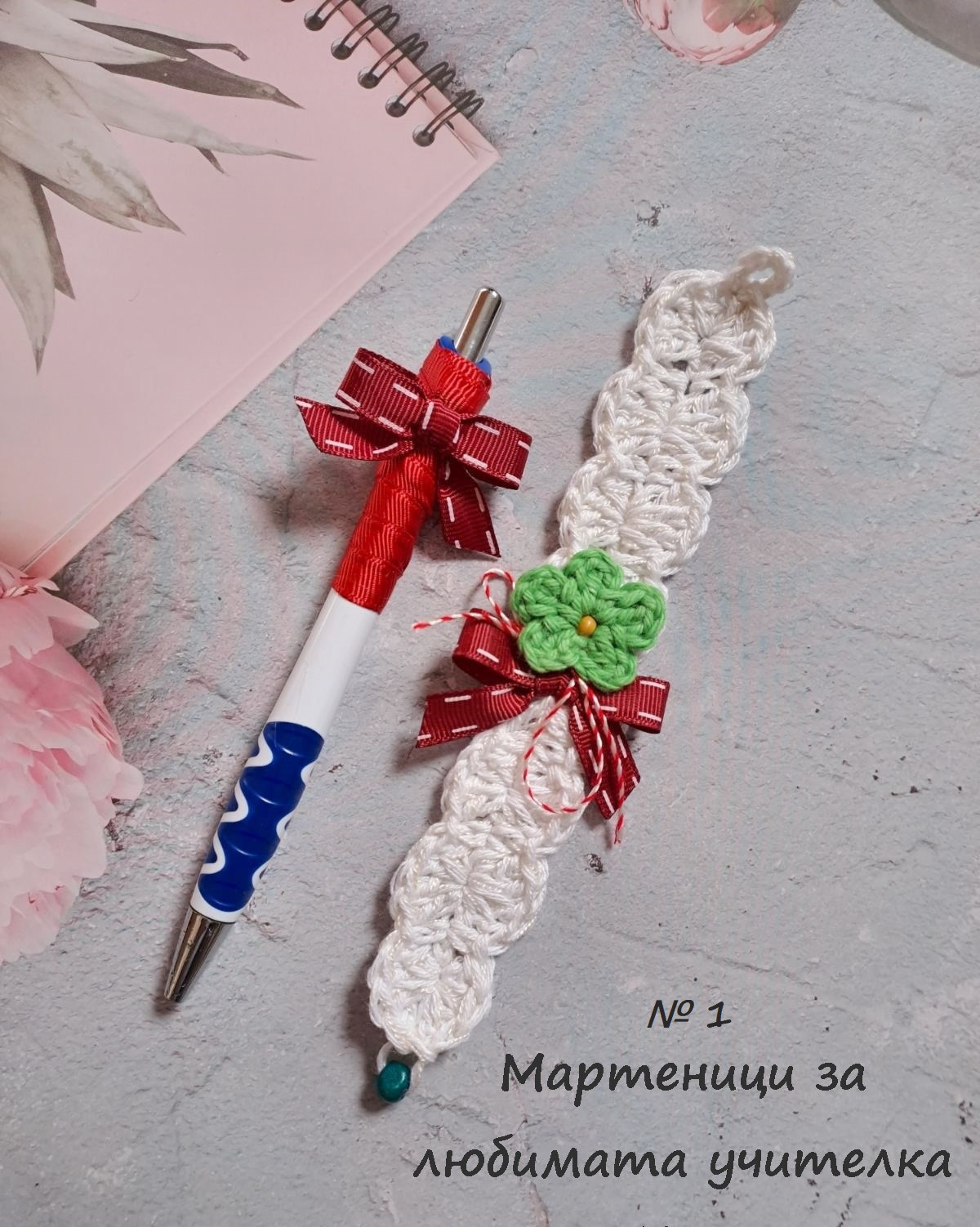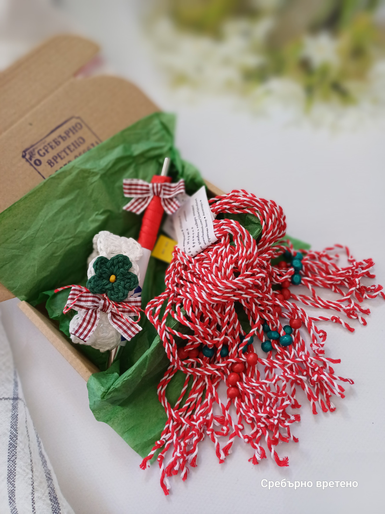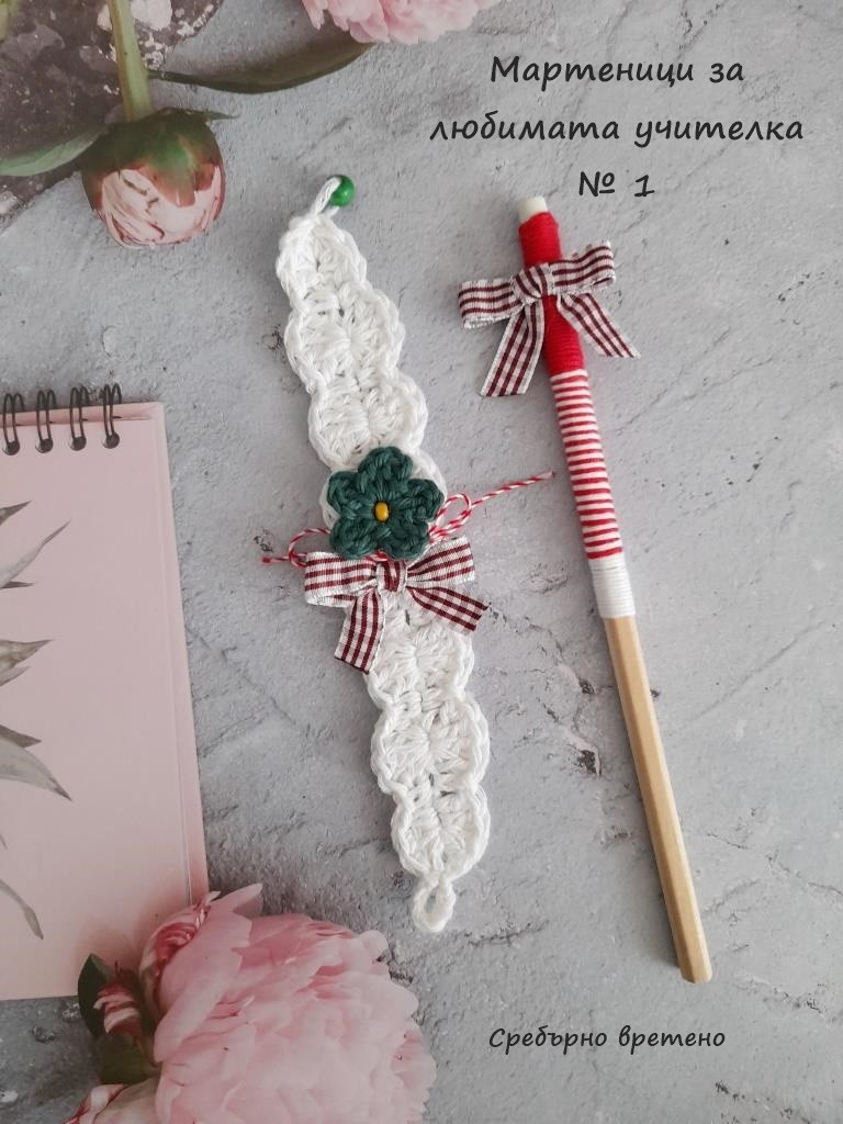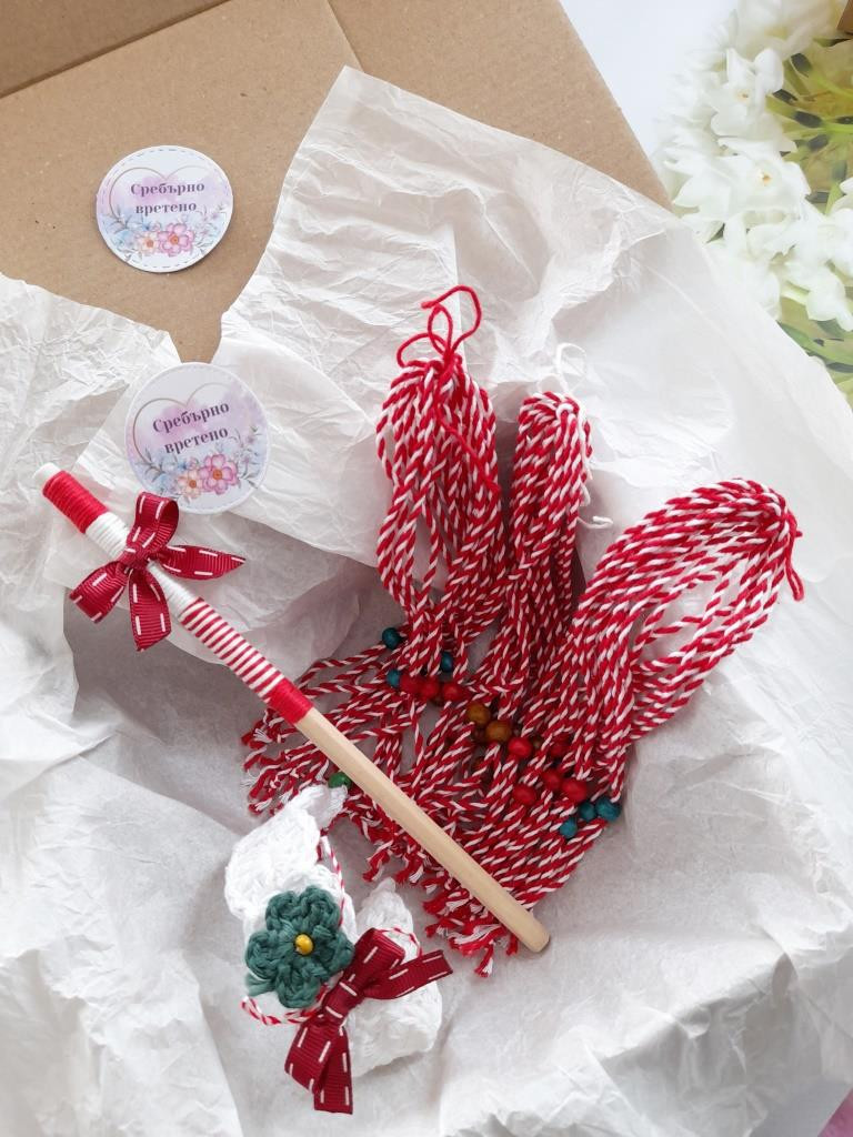 Създадохме тези комплекти, за да Ви спестим време в търсене и лутане. Всяка кутия включва: за съучениците на Вашето дете: 10 бр. мартеници за ръка от мека памучна прежда с червени дървени топчета-стопери 10 бр. мартеници за ръка от мека памучна прежда с кафяви дървени топчета-стопери 10 бр. мартеници за ръка от мека памучна прежда със сини дървени топчета-стопери за госпожата: химикал или молив с панделка в бяло и червено мартеничка-гривна с цвете и панделка в бяло и червено! По Ваше желание към кутиите може да добавим още мартенички. Пишете ни! Готови сме да Ви помогнем. Ние ще се свържем с Вас, за да уточним заявката Ви. Доставка с преглед преди плащане. Последвайте Сребърно вретено във Facebook, за да научавате за намаления и нови изделия. Разгледайте албума с мартенички. Налични са дизайнерски и нискобюджетни модели за всеки пол, възраст и повод. С поздрав, Стаси и помощници - семейството