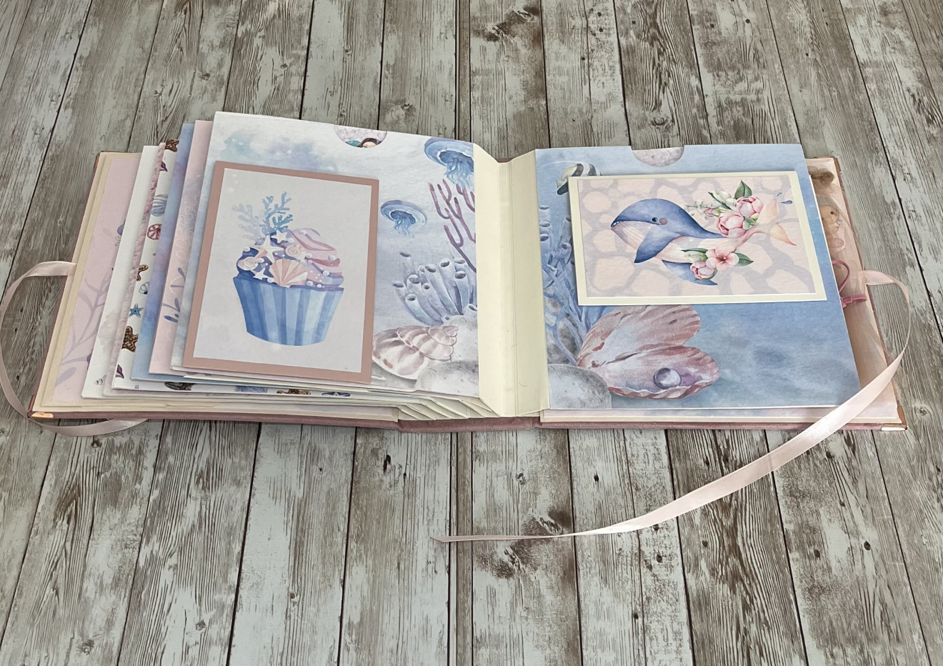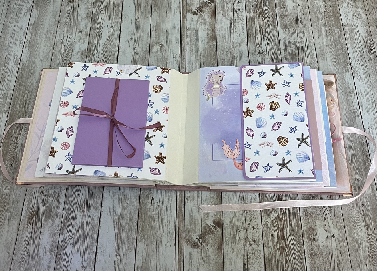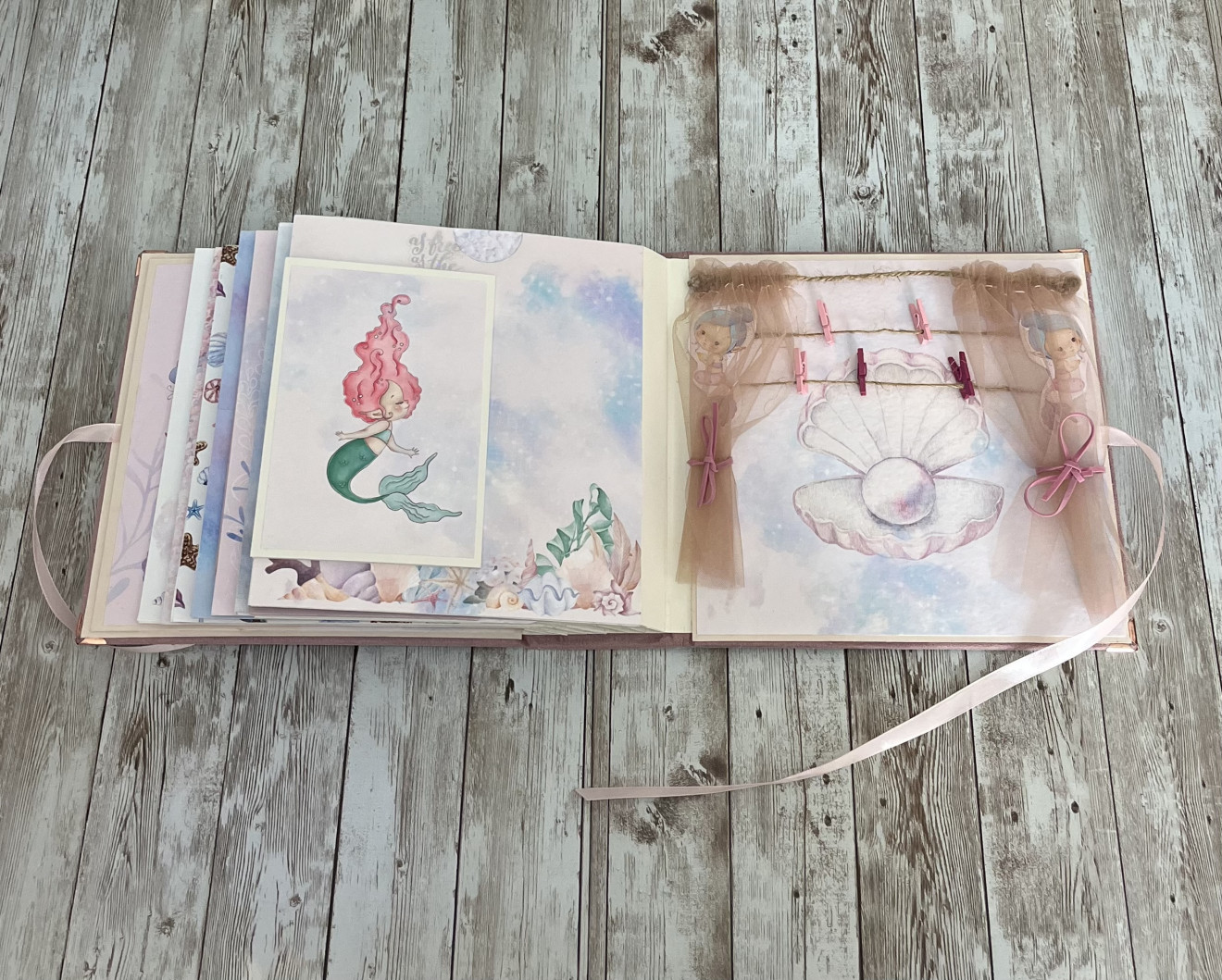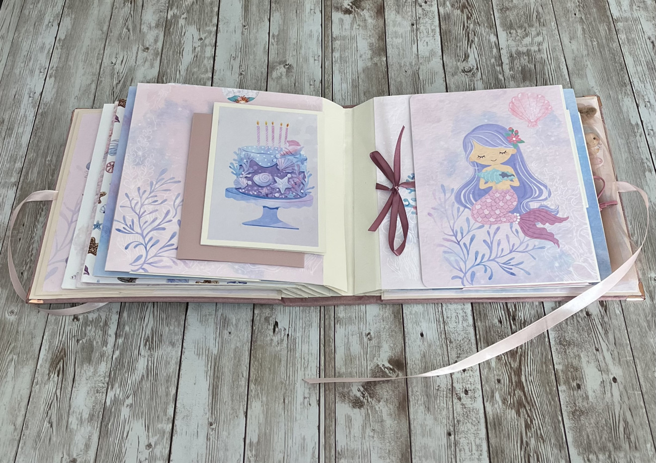 Детски албум за снимки с русалки с място за снимки от първата година на всяка малка принцеса! Албумът може да бъде персонализиран и изработен в различна тема и цвят. Албумът може да побере 100 снимки с размер 10/15.
