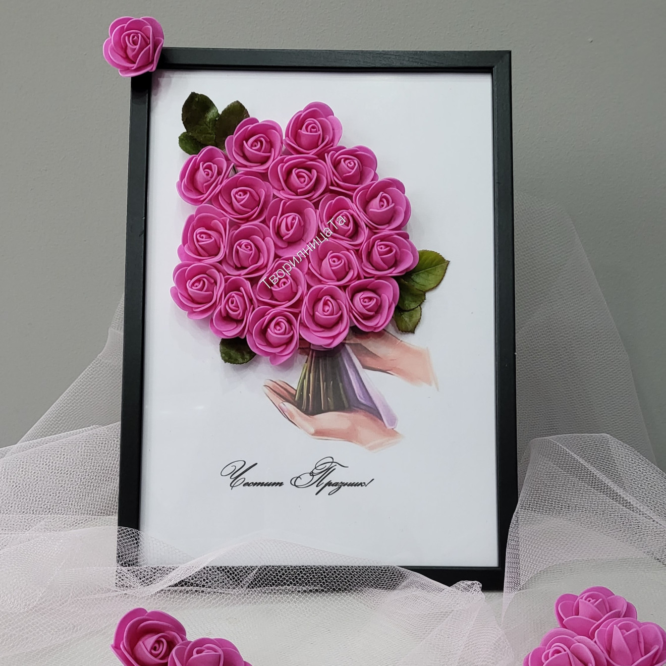 3D рамка с рози от фоам и текс/пожелание по Ваш избор