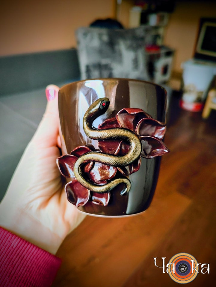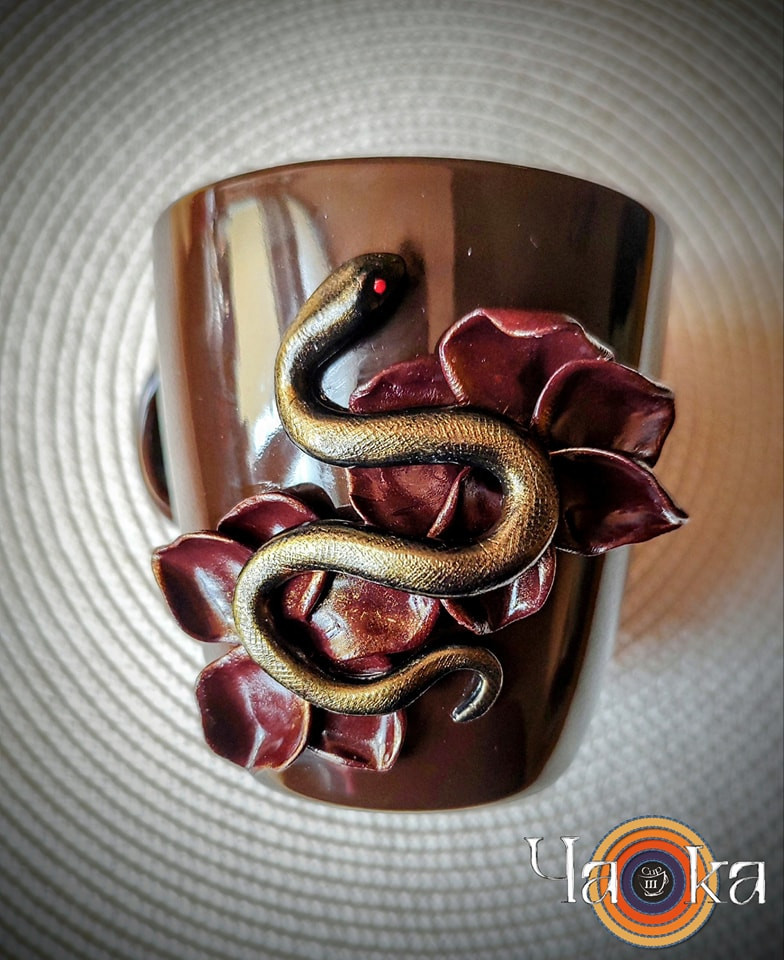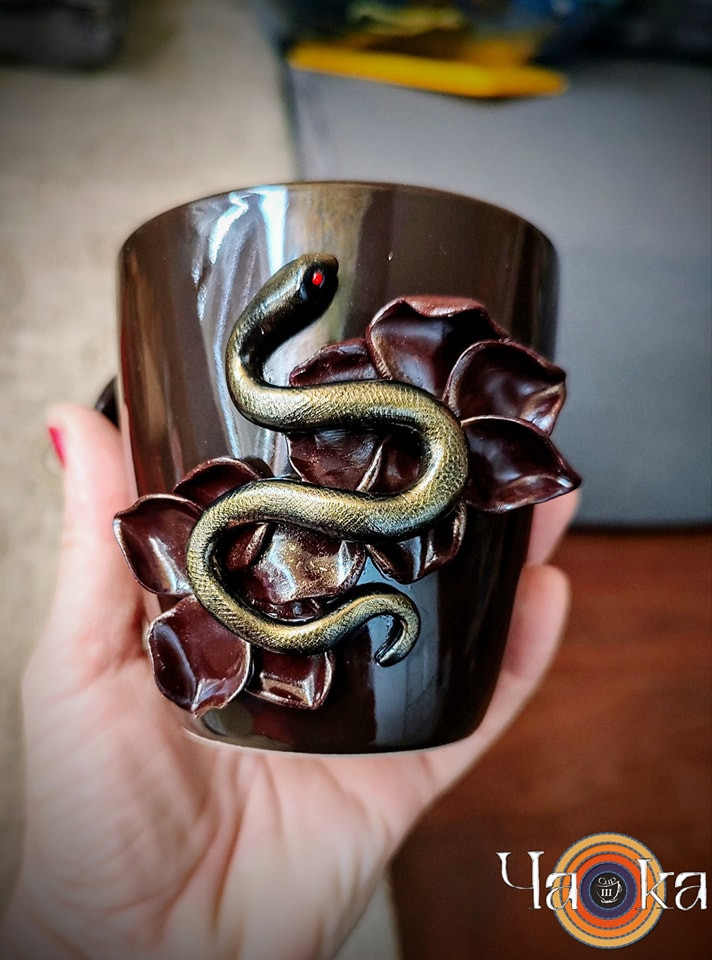 Керамична чаша с релефна декорация, ръчно изработена от полимерна глина. Чашата не е налична. Изработва се само по поръчка. Времето за изработка е орентировъчно и допълнително ще бъде уточнено.