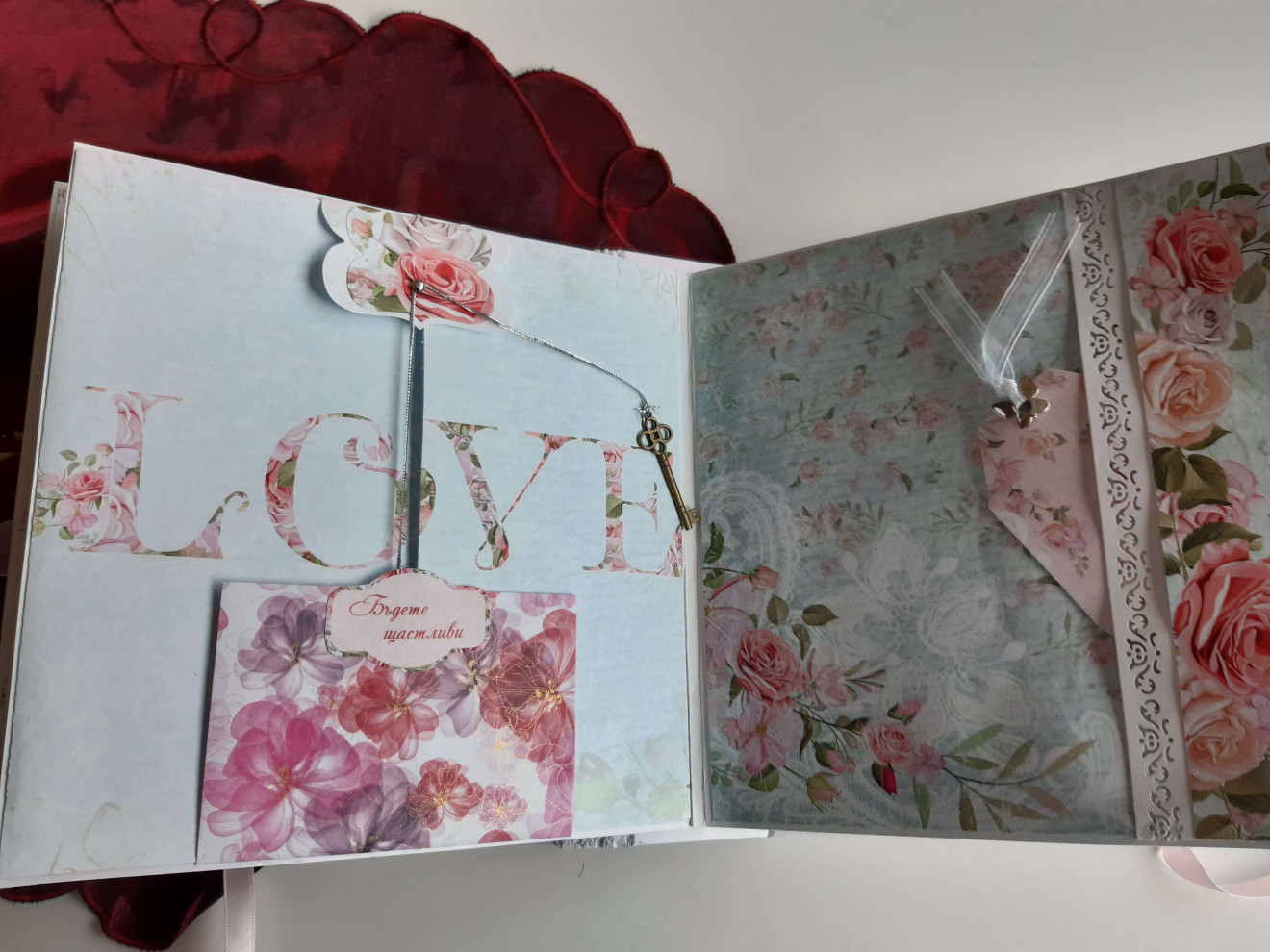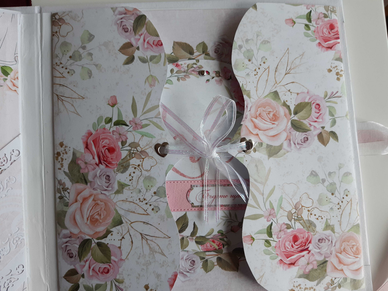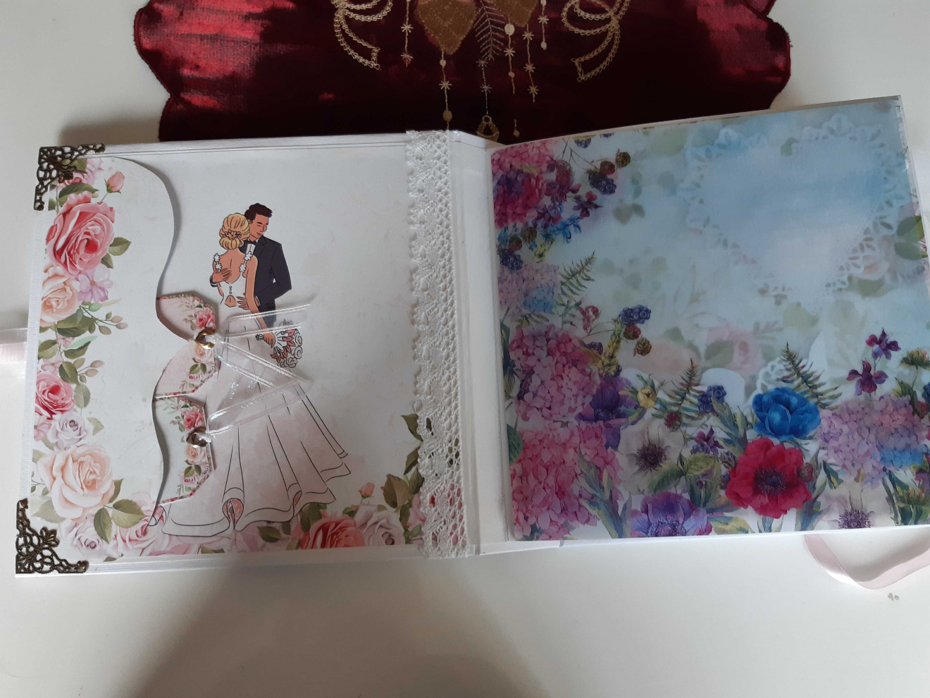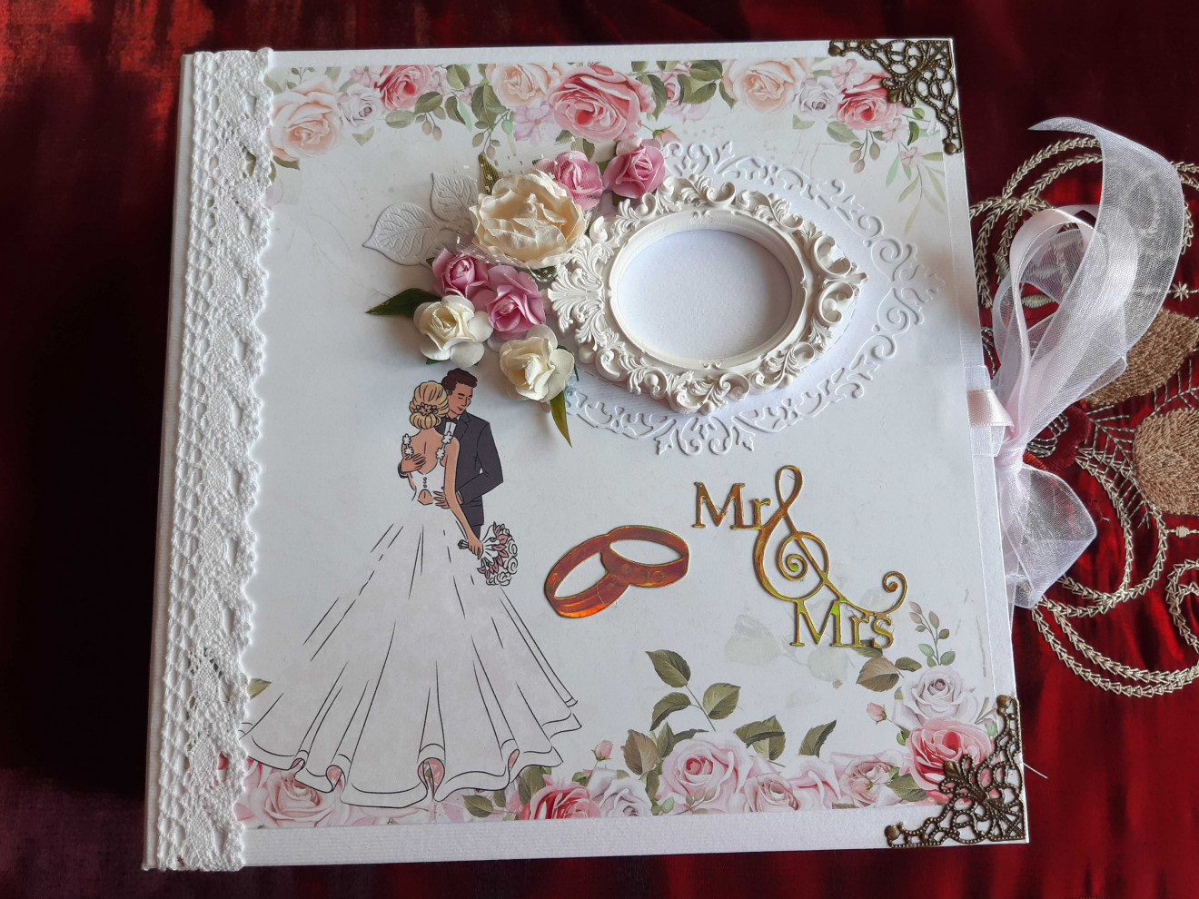 #СВАТБЕН албум.Съдържа 6 листа-12страници.Събира около 100 снимки 10-15см.Изработва се по поръчка от 10 до 14 дни.Може да се персонализира.Предлага се в подаръчна кутия.