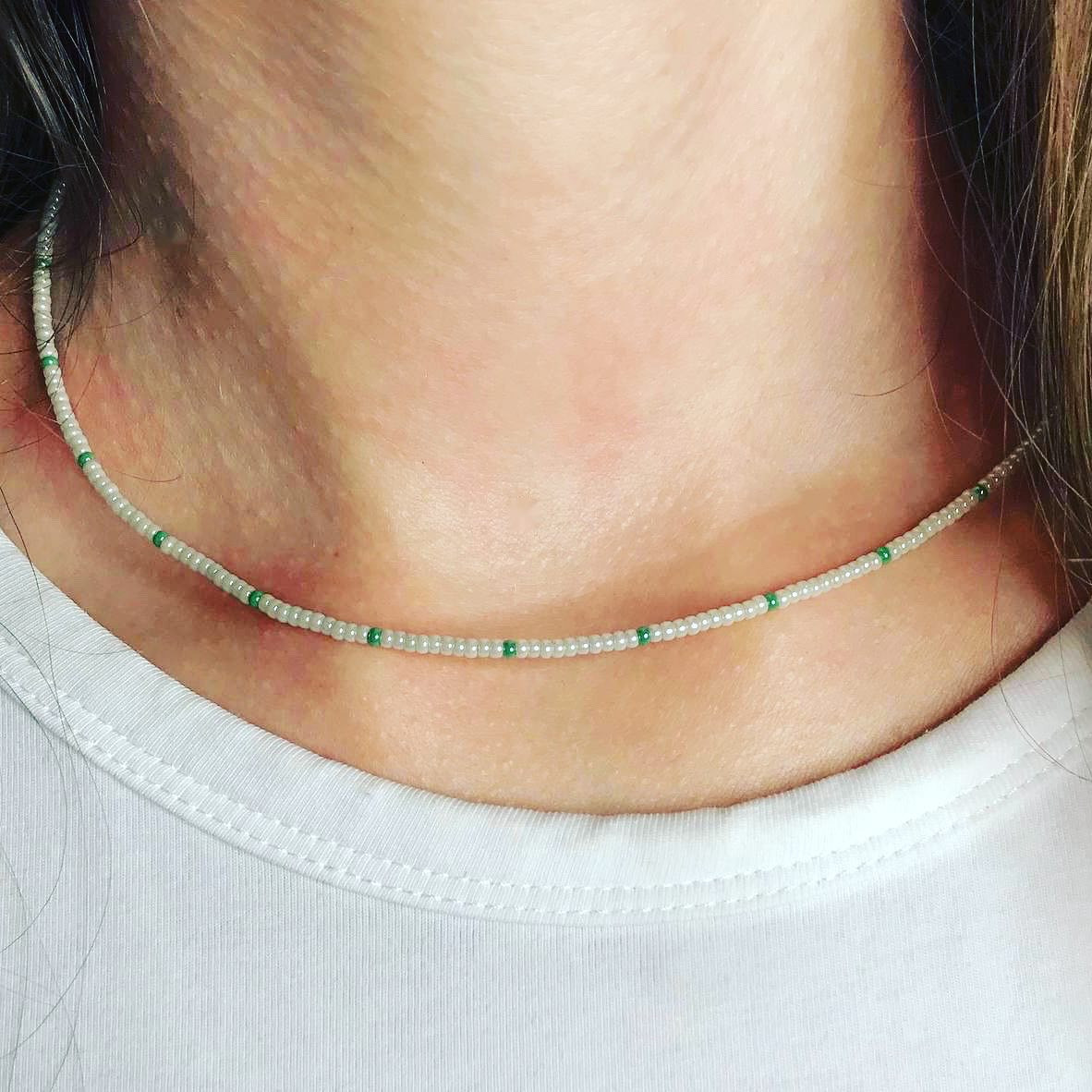 Чокър с мъниста. Дължината се регулира. Можете да си изберете цветове и да ги подредим по ваш избор.