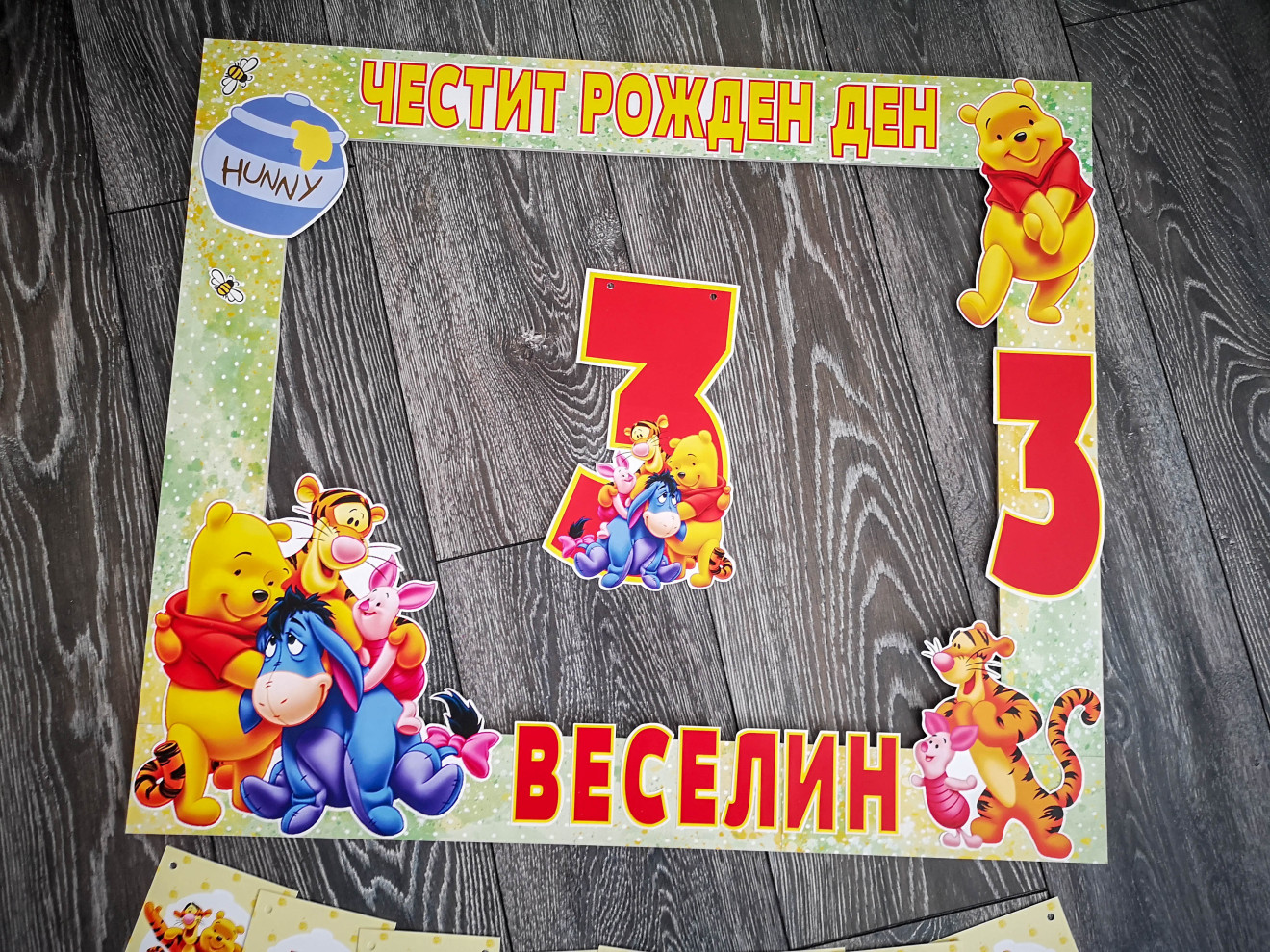 Ръчно изработена украса за рожден ден, селфи рамка, банер надпис, топер и др. Всичко с индивидуален дизайн и тема по ваш избор. - селфи рамка - 35лв. - банер надпис - 1лв. на буква - топер - 3лв. Изработвам по поръчка в рамките на 7 дни. При интерес, пишете ми или се обадете на посочения телефон. Заповядайте и да разгледате още от моите творения на страницата ми за бебета и деца https://facebook.com/HandmadeByYasnaBozhinova/