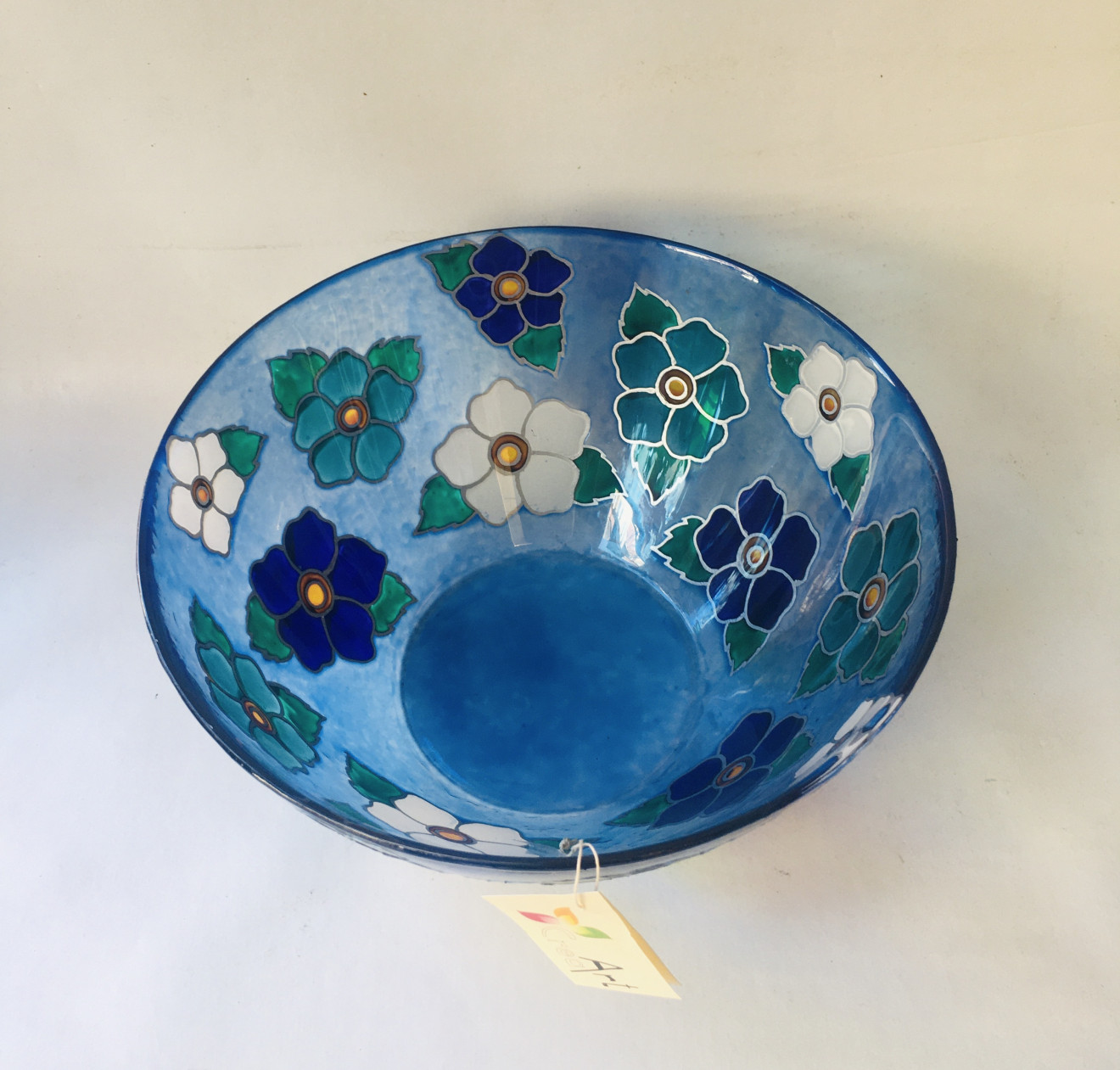 Купа, ръчно рисувано стъкло. Подходяща за сервиране на плодове, салати. Измиване - ръчно без абразиви Диаметър - 20см