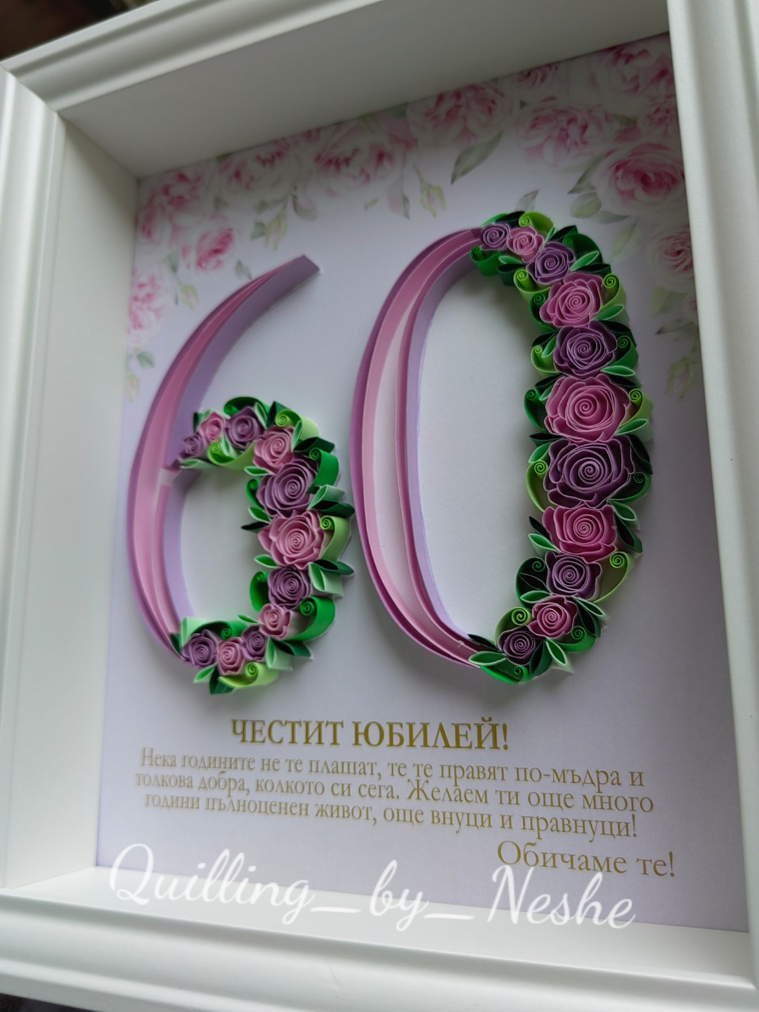 Пано изработено с техника квилинг. Подходящ подарък за рожден ден и юбилей.