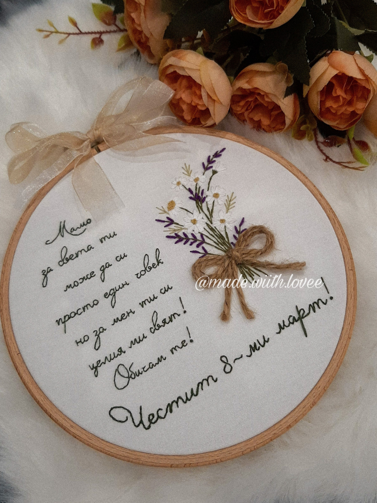 Здравейте :) мога да ви предложа ръчно изработен персонализиран гоблен . Може да разгледате страничката ми ? при интерес, пишете на ЛС? Моделите могат да де изработят и в други цветове 19 см 40 лв https://m.facebook.com/made.wiiith.lovee/