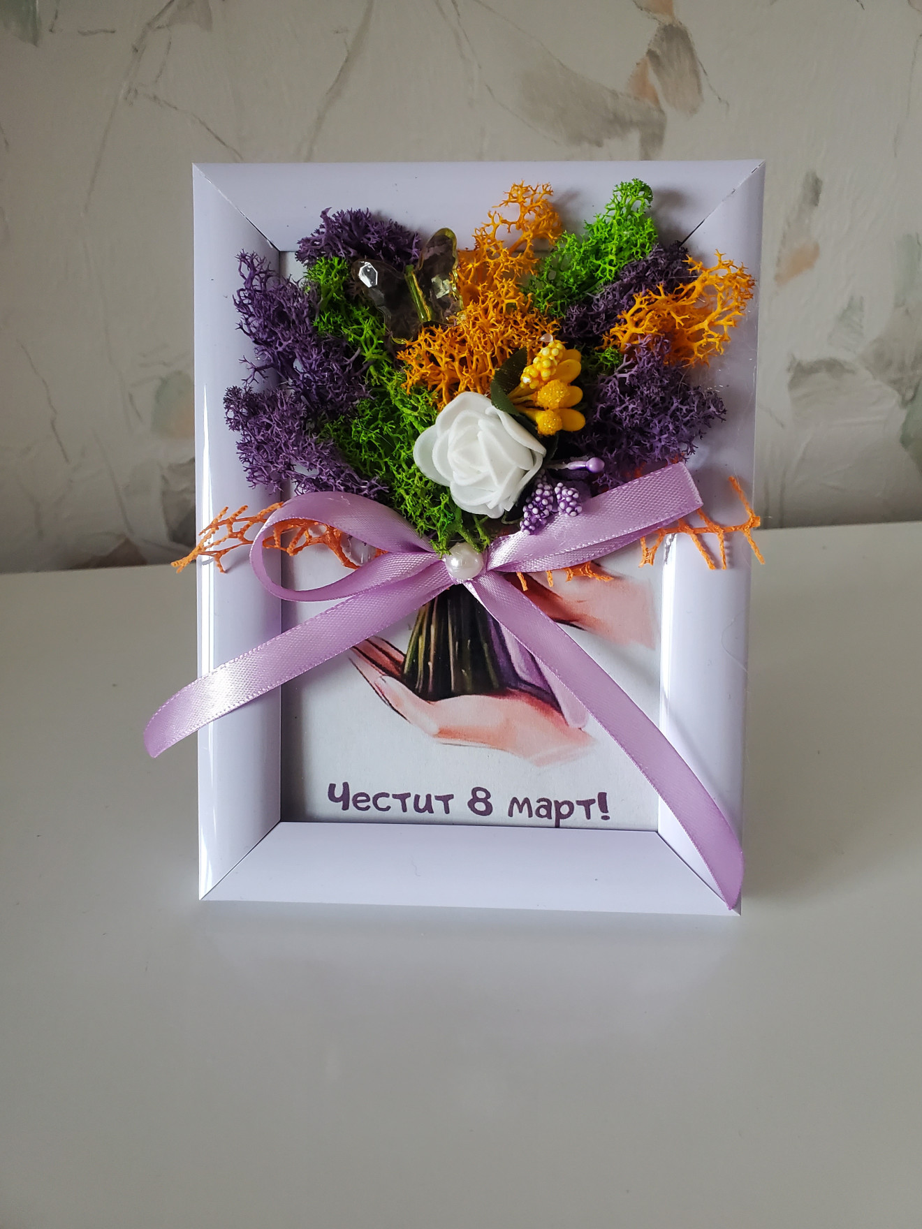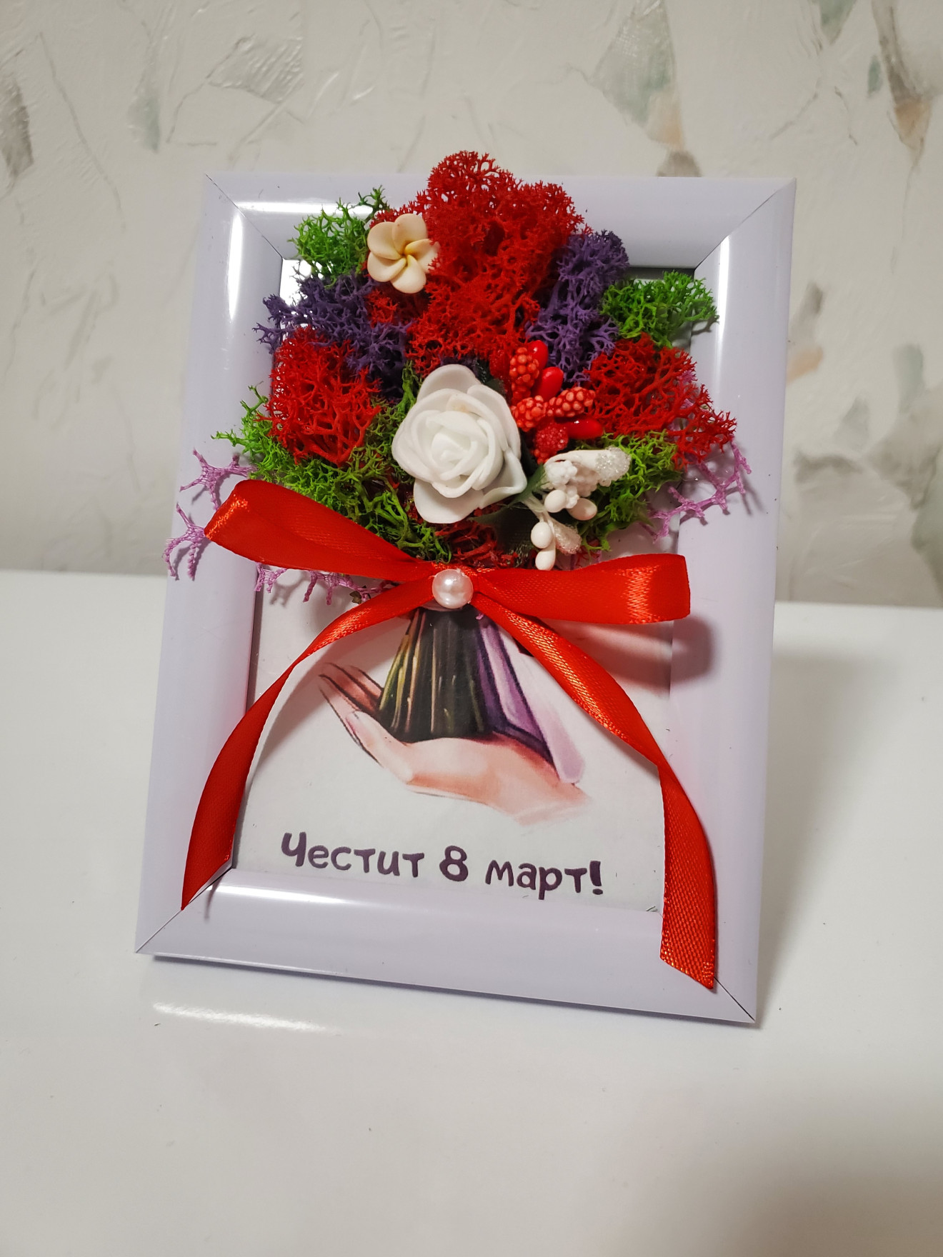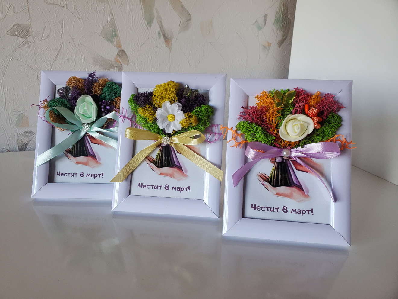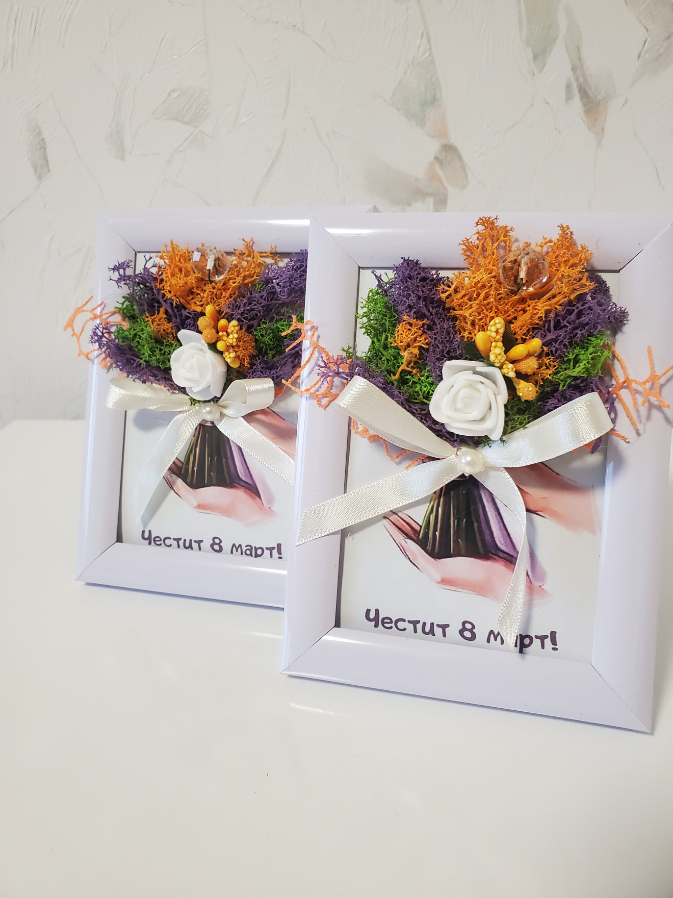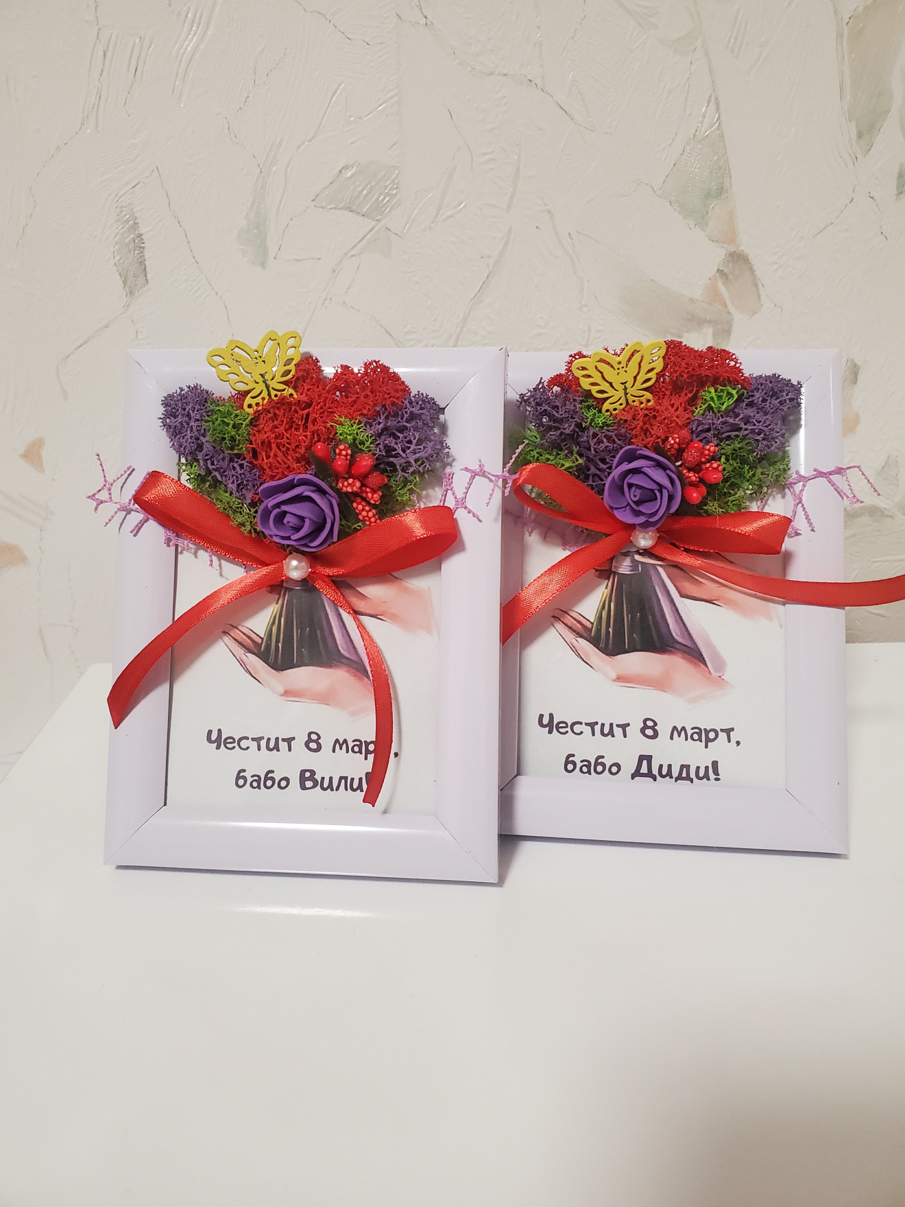 Предлагам Ви така модерните рамки със скандинавски мъх с персонализиран текст по Ваше желание и подарък картичка. Размер на рамката: 9/13см Предлагам и други размери. При интерес пишете на лични съобщения.?