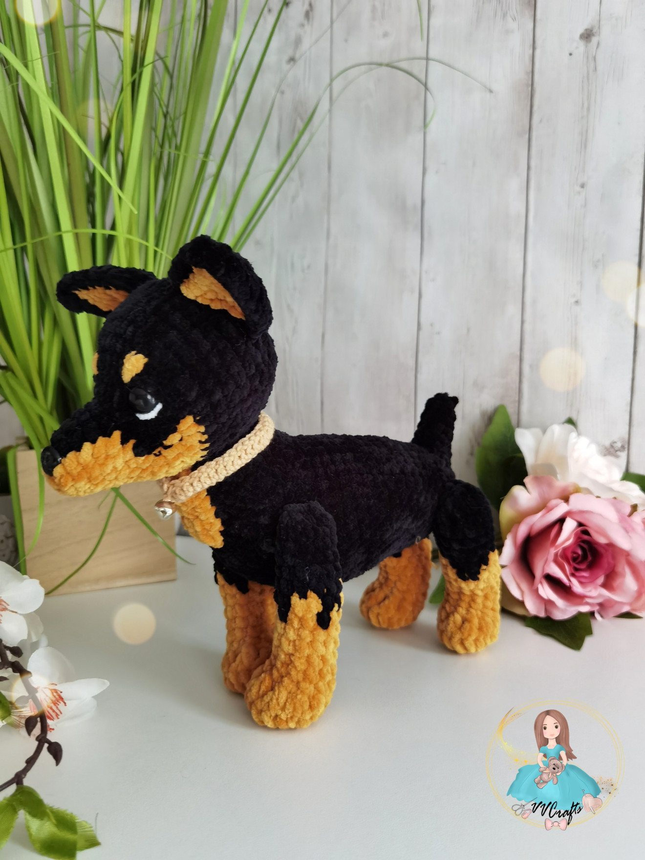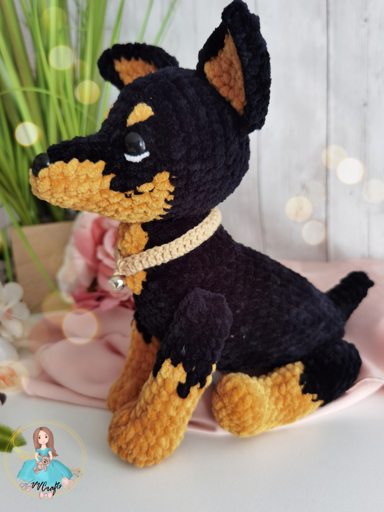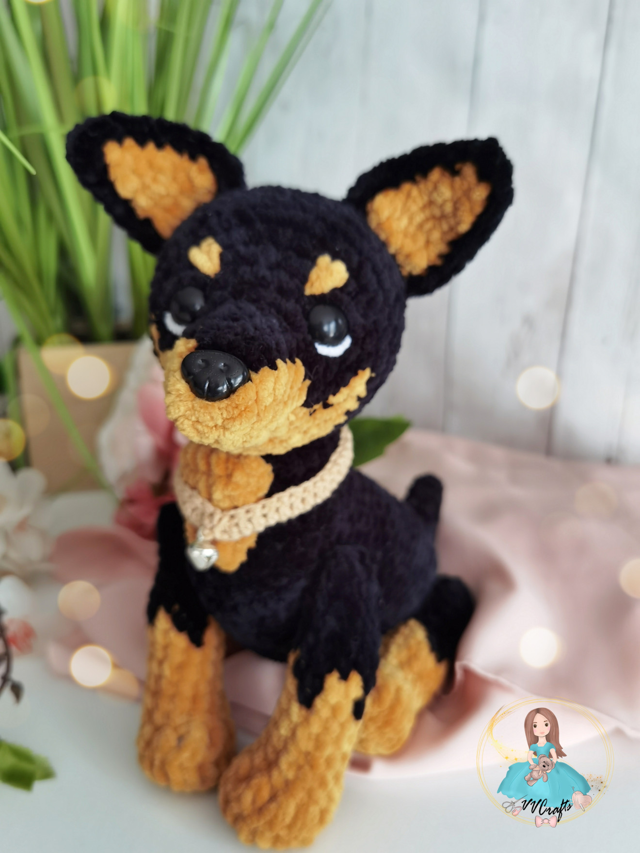 Изработен от мека плюшена прежда, безопасни очички и носле на винт. Пълнежът е хипоалергенен силиконов пух. Подвижна глава и крачета. Стои самостоятелно.
