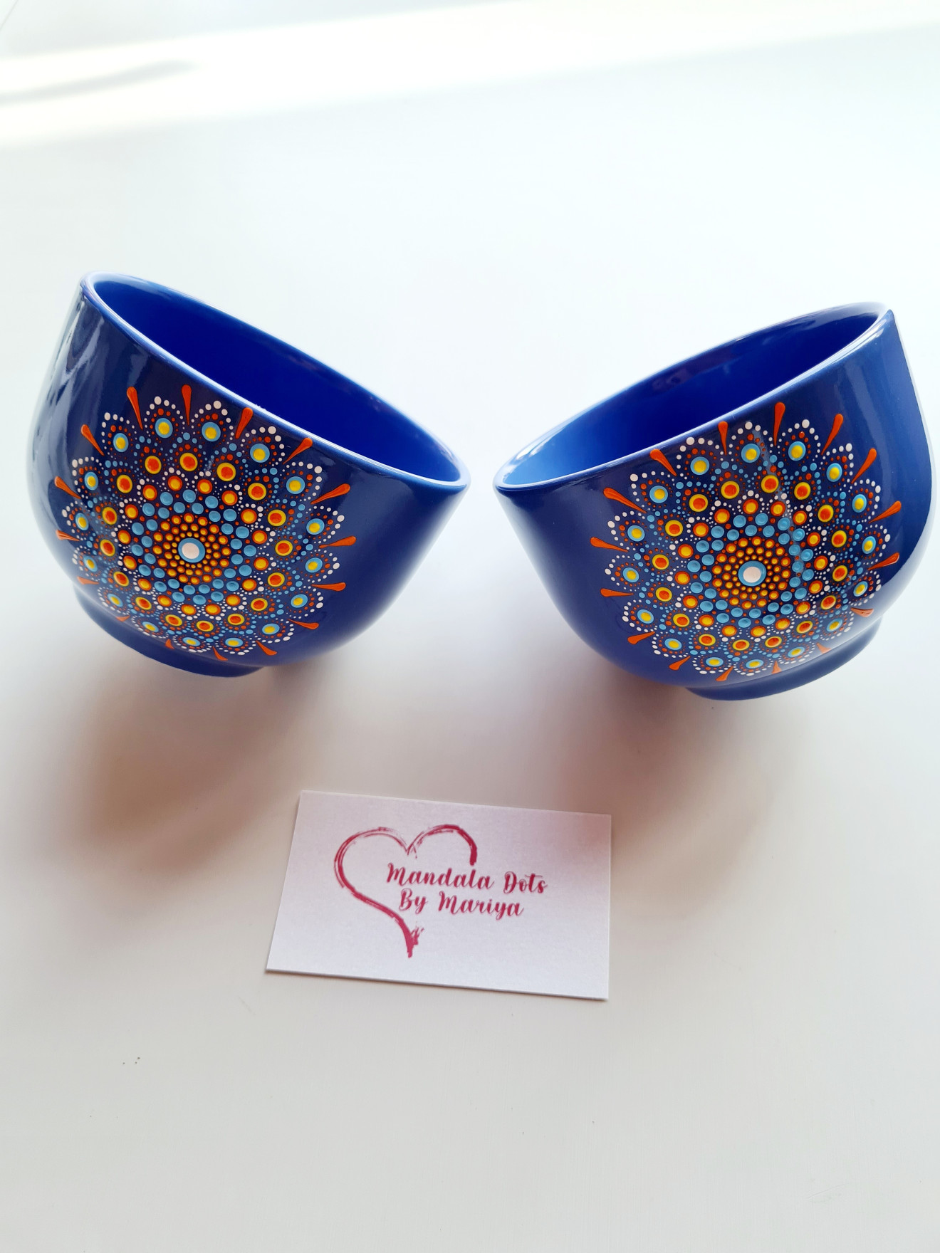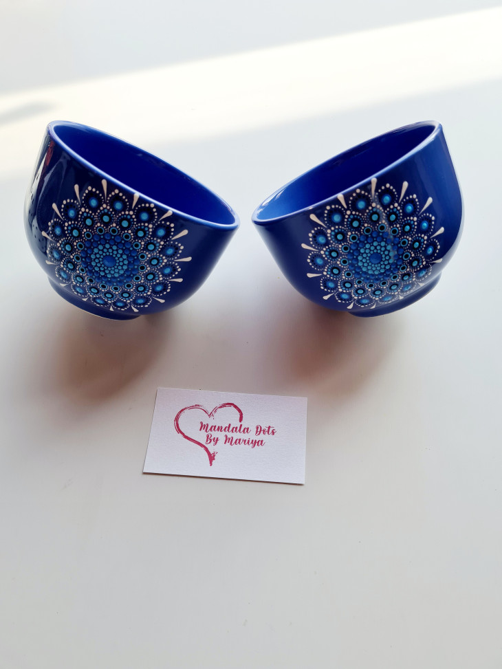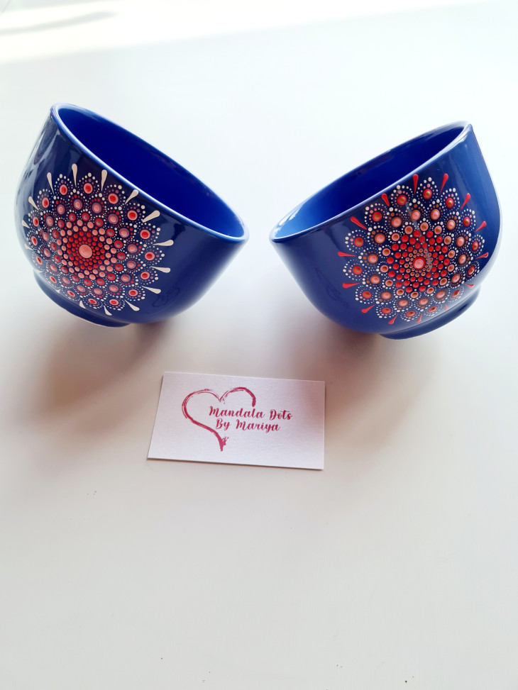 Изцяло ръчно рисувана чаша 370мл . Техниката е поантилизъм, или иначе казано рисуване с точки :) Цветовете може да са по ваш избор. Боите са НЕ токсични, може да се мие в миялна машина, но имайте предвид, че тя е агресивна. Чашката може да се изработи спрямо символиката на цветовете в мандала, за да научите повече се свържете с мен :))
