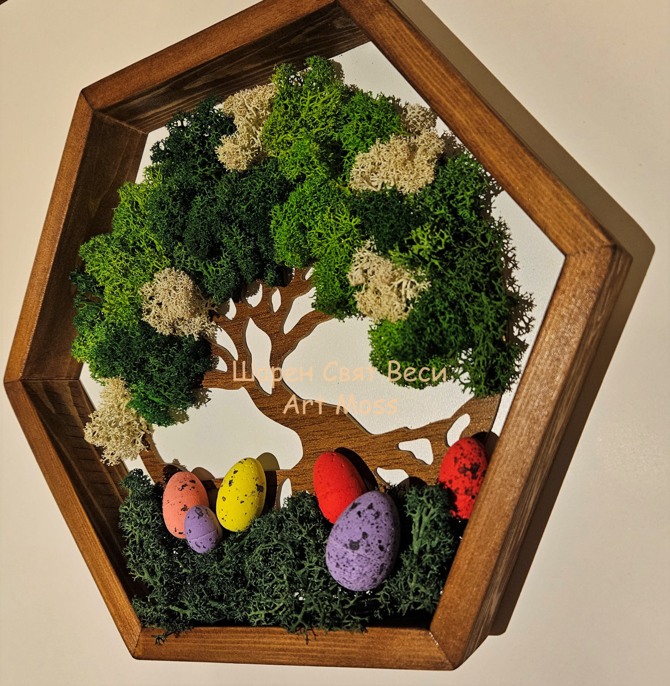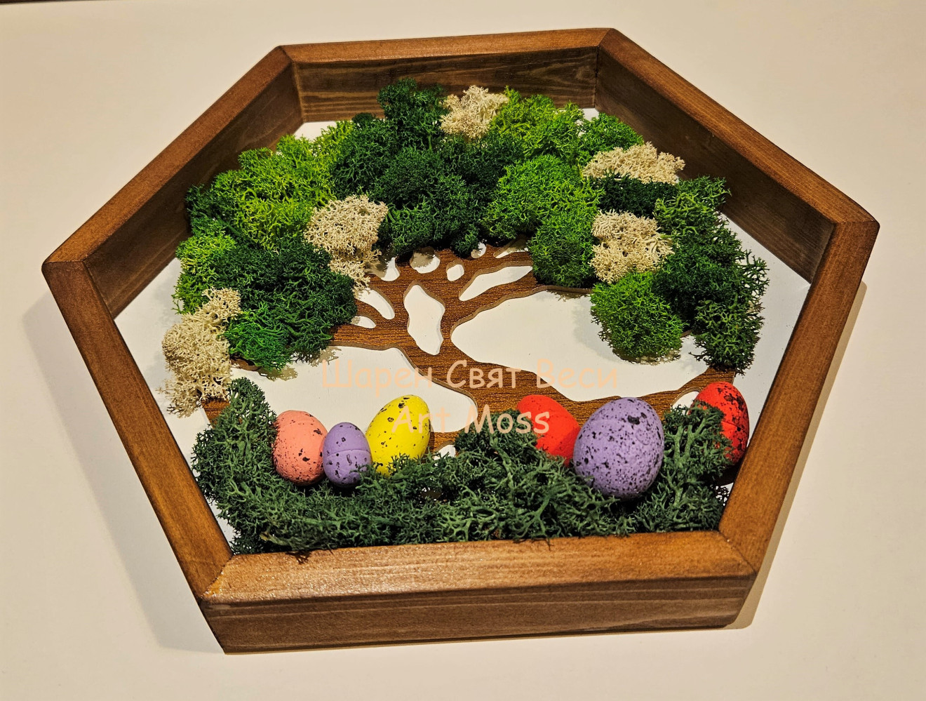 Шестоъгълна рамка с размер 25см. и дърво с декорация Скандинавски мъх. Подходящ подарък за ходене на гости покрай скорошни празници. ? Цветни и свежи предложения ? Декорации подходящи за всяка къща, шарен Скандинавски мъх ? Внася свежест и прекрасно настроение ? Не се полива и не се пръска с вода ? Запазва се хубав и мек, когато е далеч от климатик