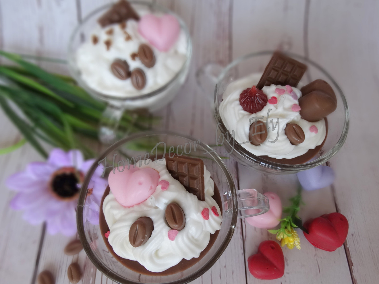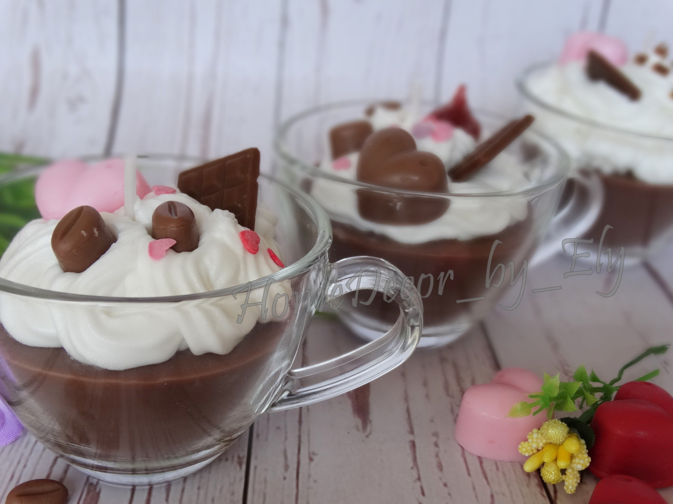 Ароматна декоративна свещ в чашка или кафе със сметана, с аромат на шоколад.