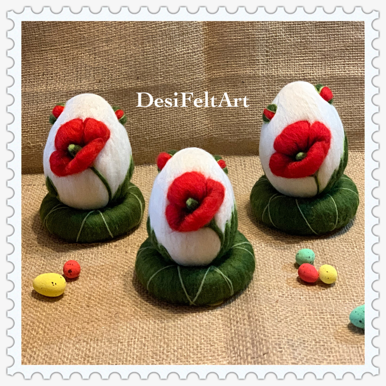 Великденски яйца изрисувани с вълна - Мак (3D декорация)