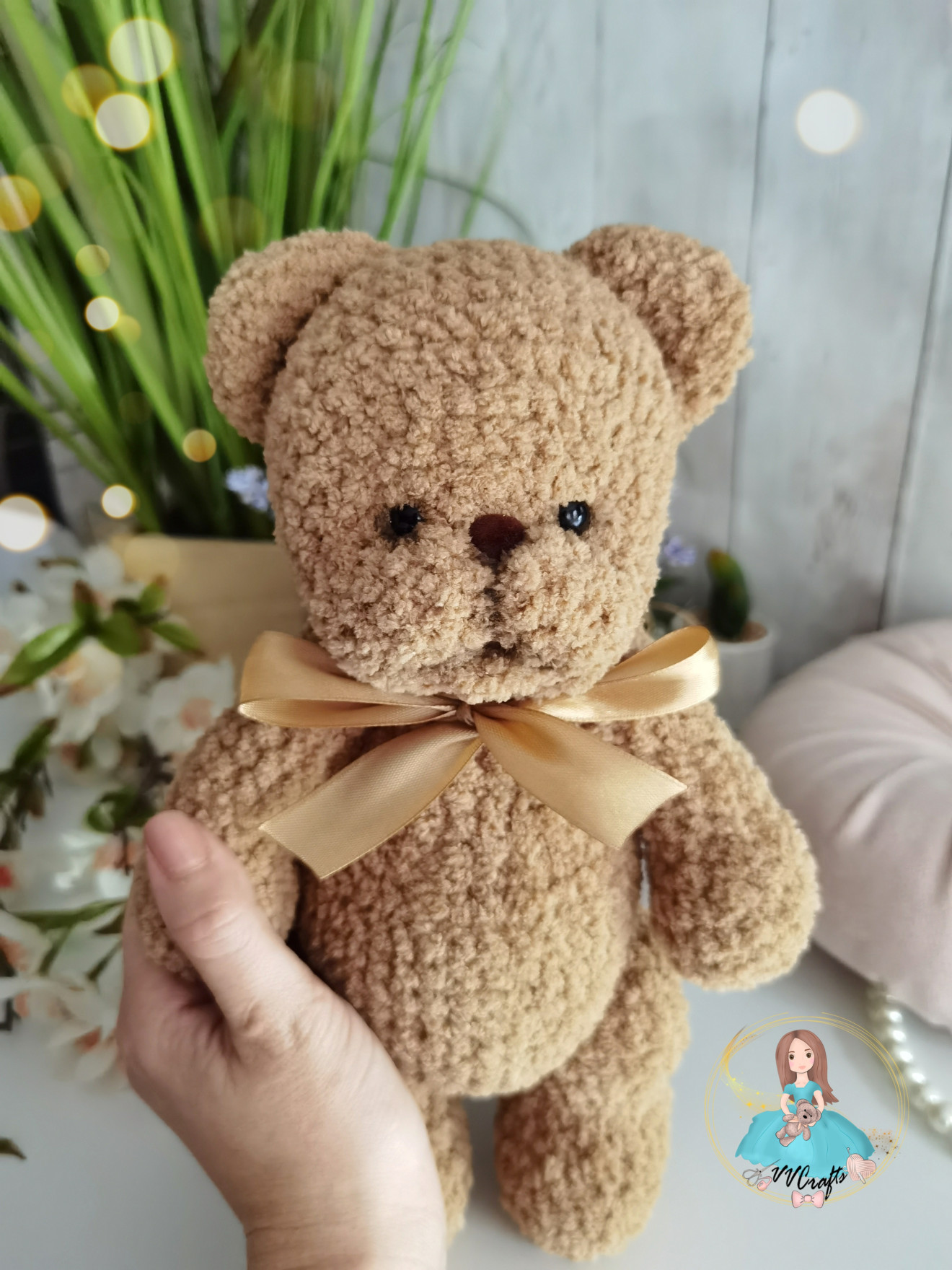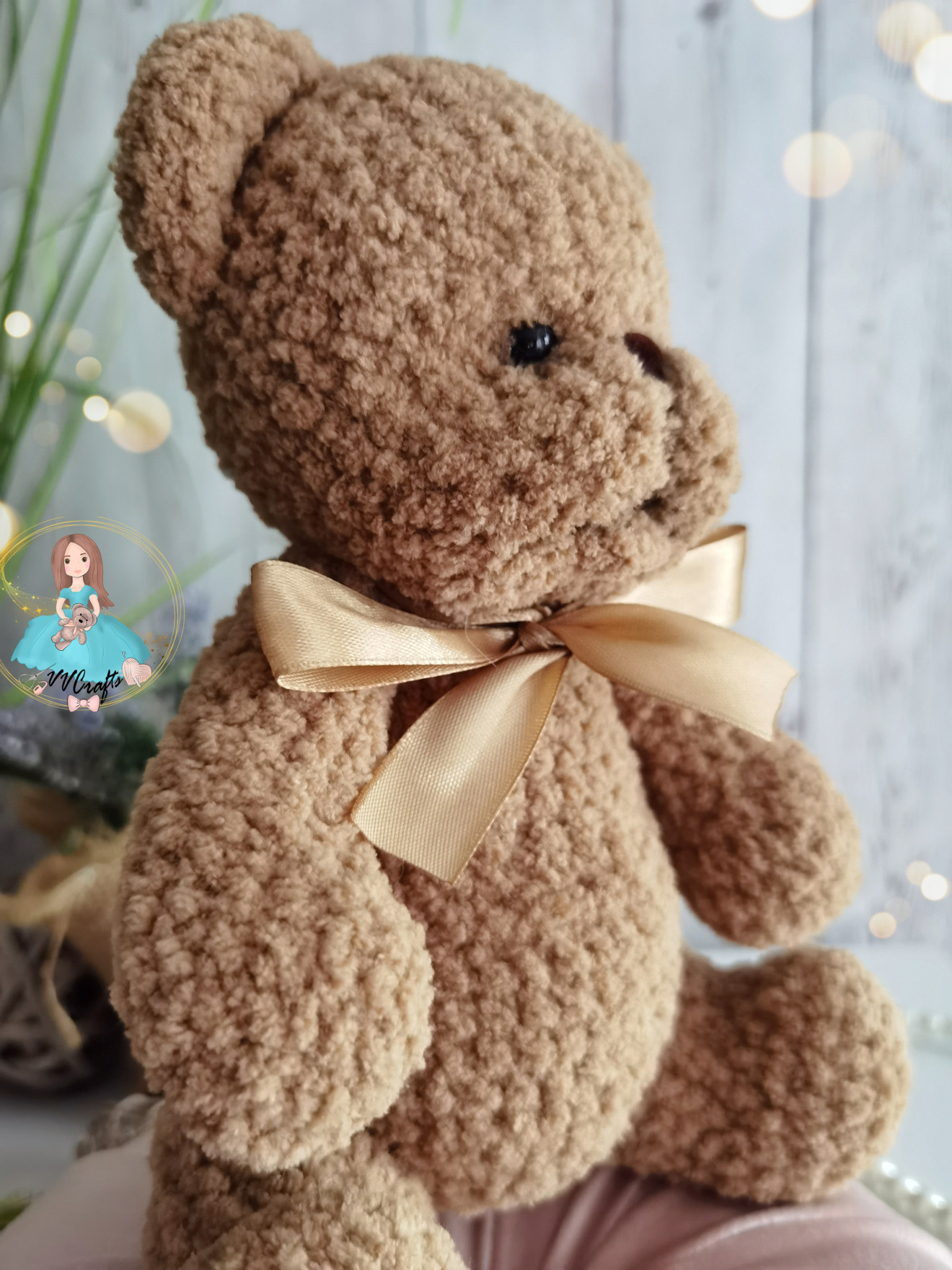 Изработено от мека хипоалергенна прежда. Високо около 30см, подвижни крачета и ръчички.