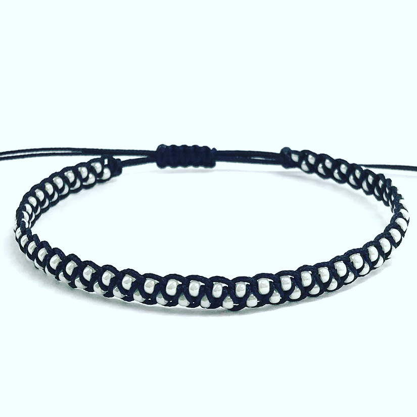 Перлени мъниста 2 мм. Дължината се регулира. Възможна е изработка с друг цвят конец и мъниста.