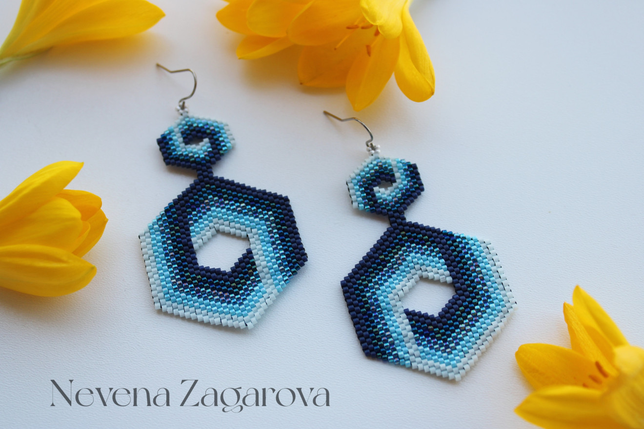 Бижутата от мъниста се носят на бизнес срещи, изискани вечери, специални поводи, разходки или кино в събота вечер! ❤ С моите ръчно изработени бижута, несъмнено ще Ви затрупат с комплименти и трудно ще отместят поглед от вас! ☺️ Представям ви любимите висящи обеци изработени от мъниста в преливащи сини нюанси. ? Обеците са налични, подаръчно опаковани в луксозна бижутерска кутийка. Цена: 56.99 лв.