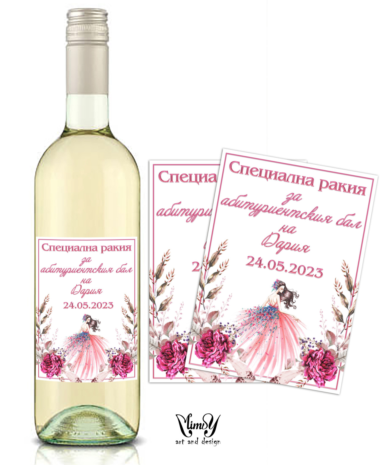 Самозалепващи етикети за абитуриентска ракия,вино, уиски. Размер: 8,5/12см Минимално количество за поръчка 5бр.