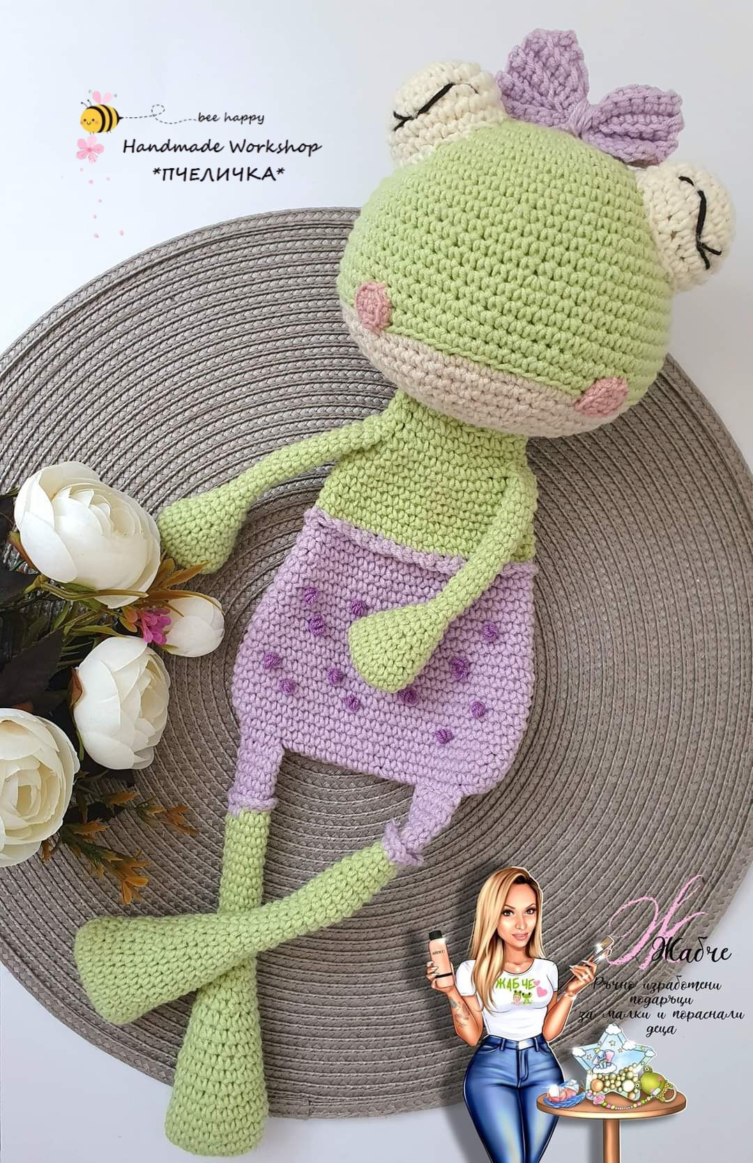 ????? Сладки жабчета, любими талисманчета! ✅️Жабчета за гушкане, приспиване и весели игри. ✅️Момиченцето е високо цели 44 см., а момченцето 40 см. ✅️Изплетени от мека прежда, подходяща за бебешки играчки и плетива. ✅️Пълнеж от висококачествен гранулиран силиконов пух ✅️Тялото е без пълнеж.