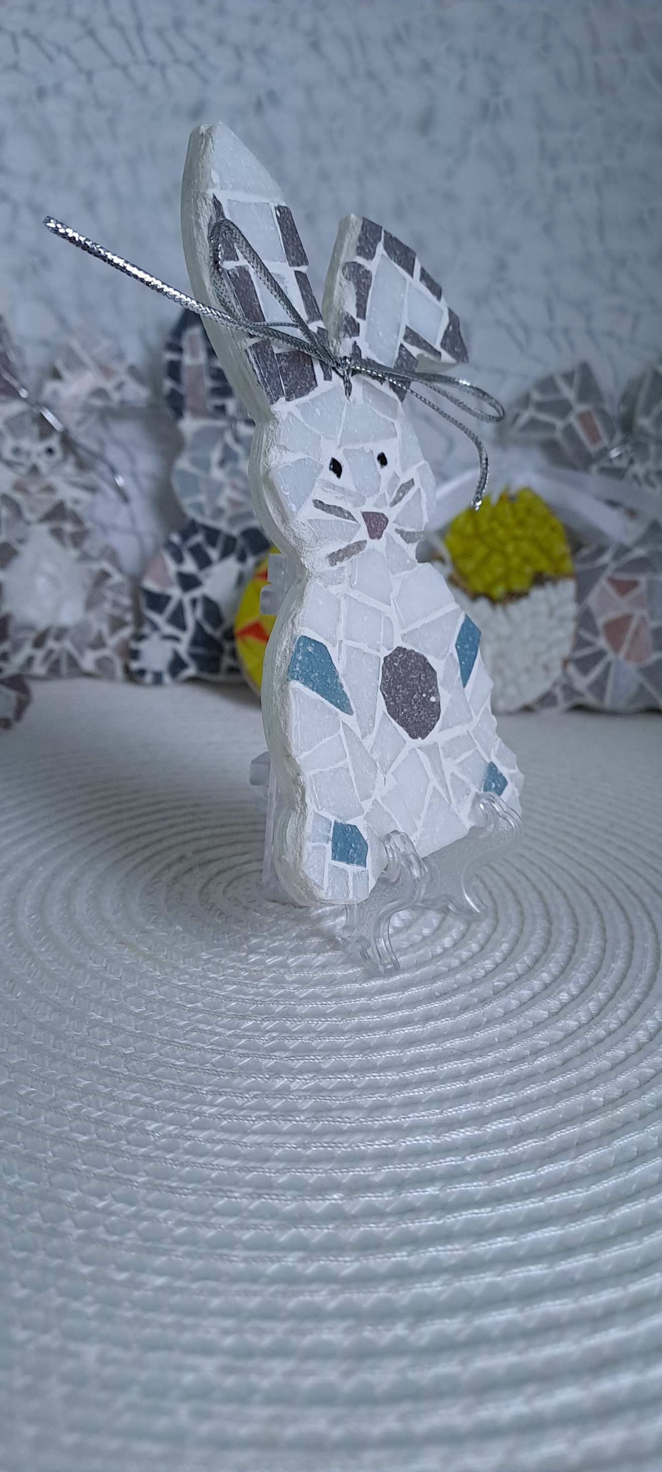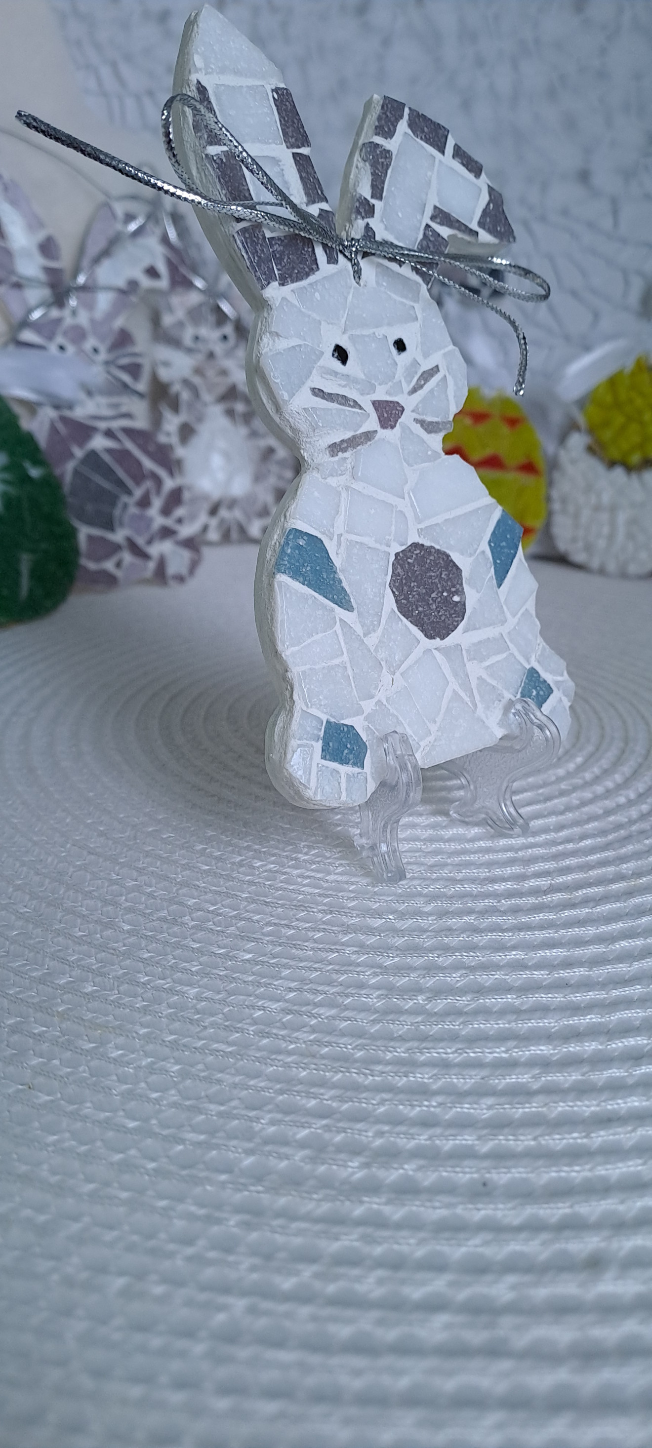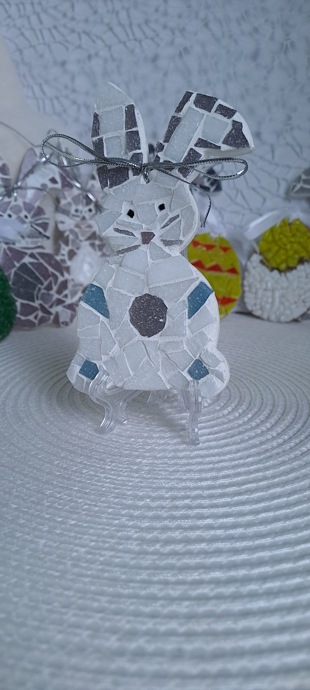 Декорация за закачане. Има възможност и за поставка+1,00 лв. Дървена основа.Боядисан и лакирана , стъклена мозайка и фуга.