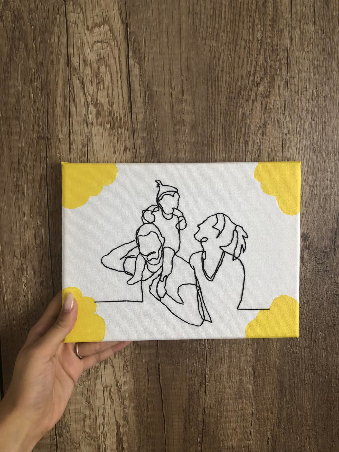 "Моето семейство" Бродирано памучно платно върху дървена подрамка. Картината е с размери 18*24, но може да с изработи и в други размери и цветове. Нежен, практичен и различен подарък или декорация за дома :)
