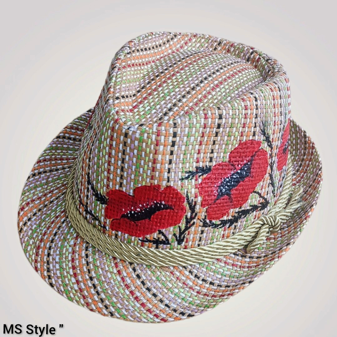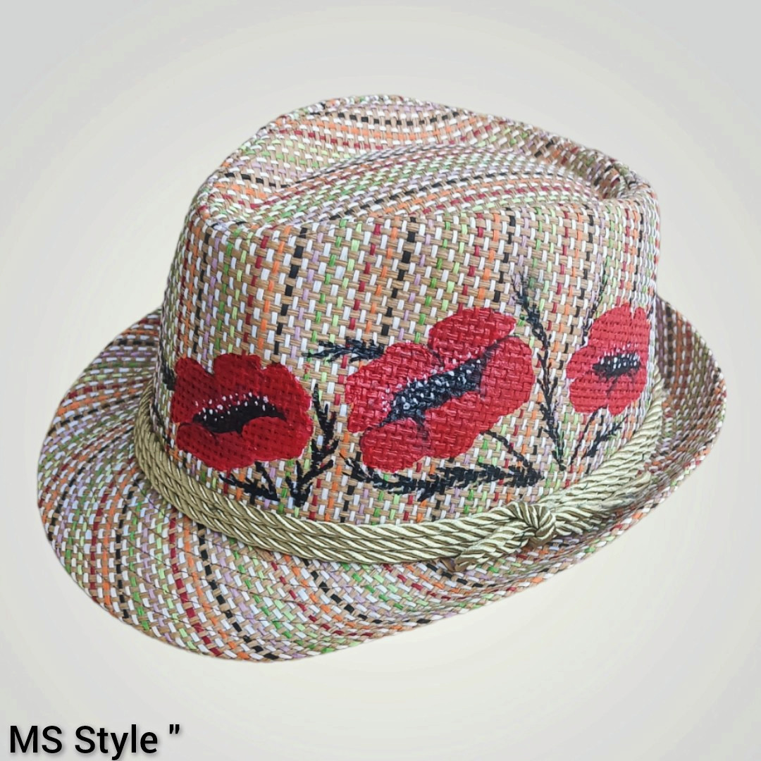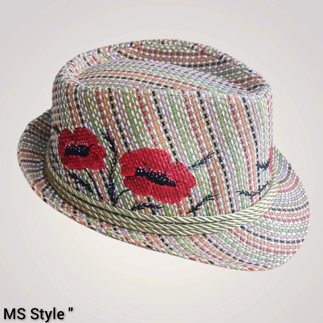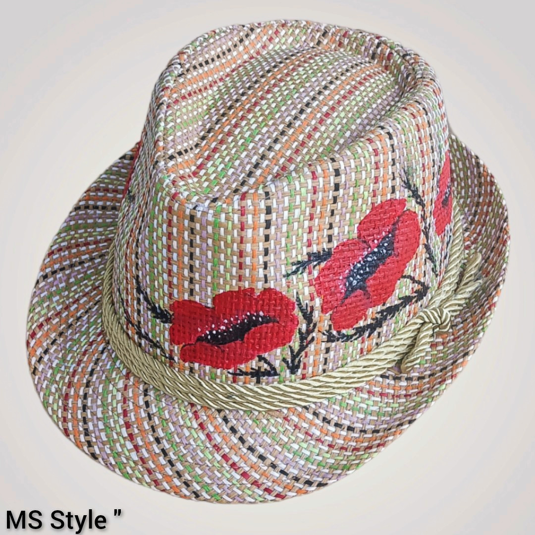 #Ръчно #рисувана #дамска #шапка тип #Бомбе" Шапката е #ръчно #рисувана с #текстилни #бои без употребата на шаблони, единствена бройка, размер 58, цена 35 лв.