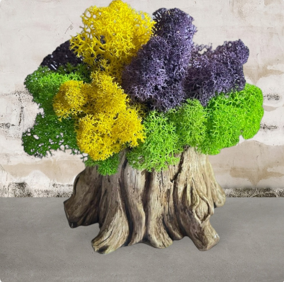 Кашпи "Пънче" със скандинавски мъх. Снимка 1: Височина с мъха 12 см. Снимка 2:: Размери 12/9 см.