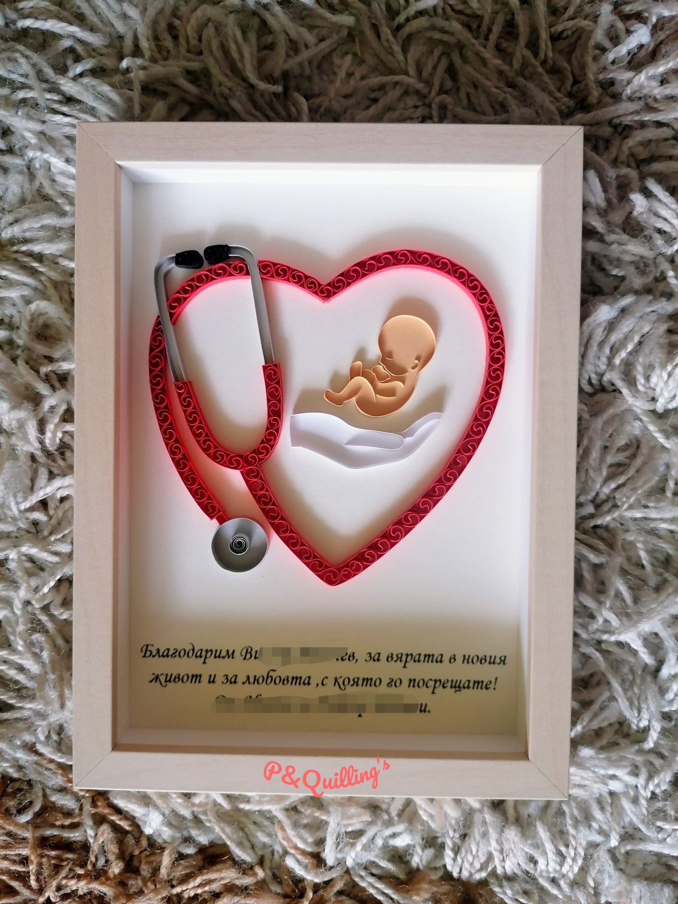 Пано изработено с техника квилинг, рамка със защитно стъкло и подаръчна кутия