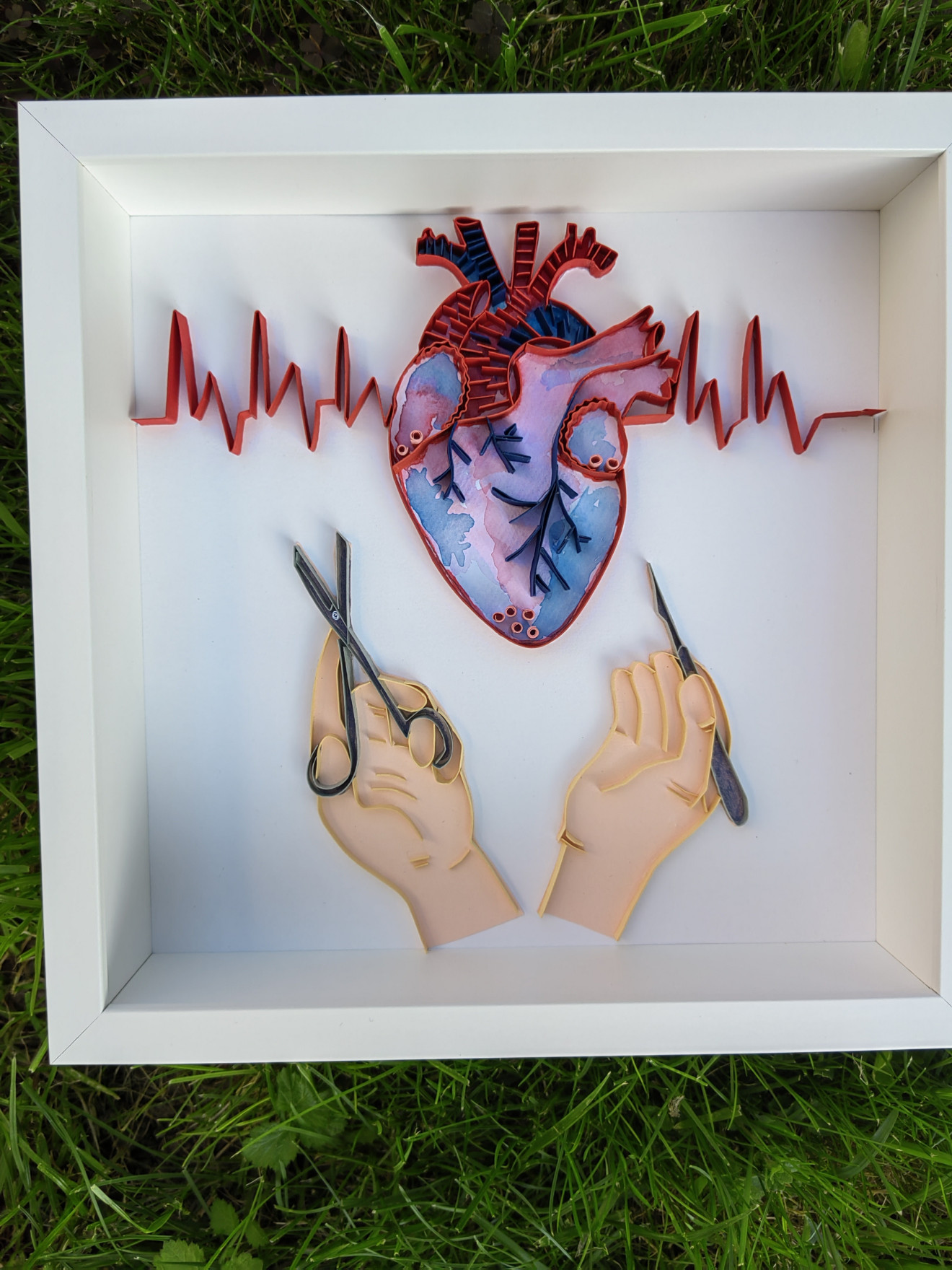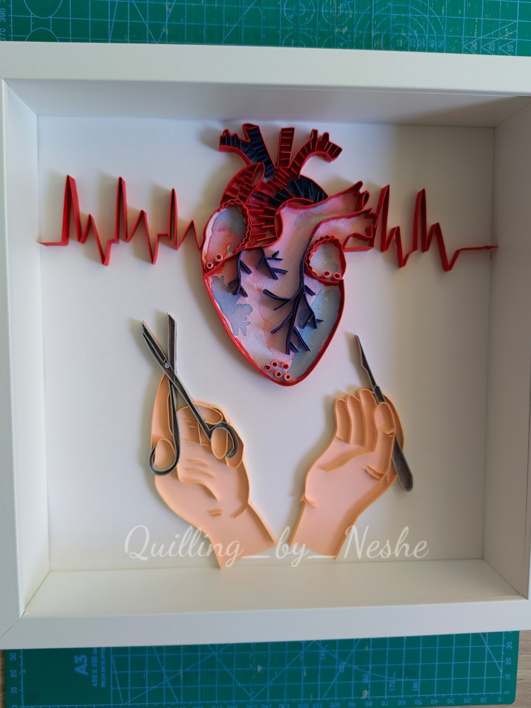Пано създадено с техника квилинг. Подходящ подарък за кардиолог.
