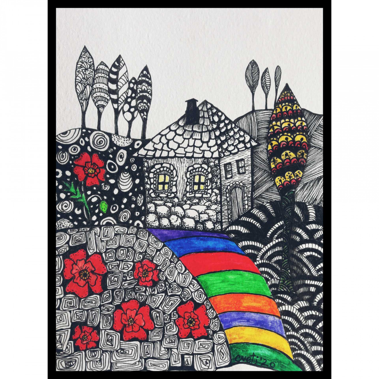 Техника doodle art . Акварел и тънкописец.