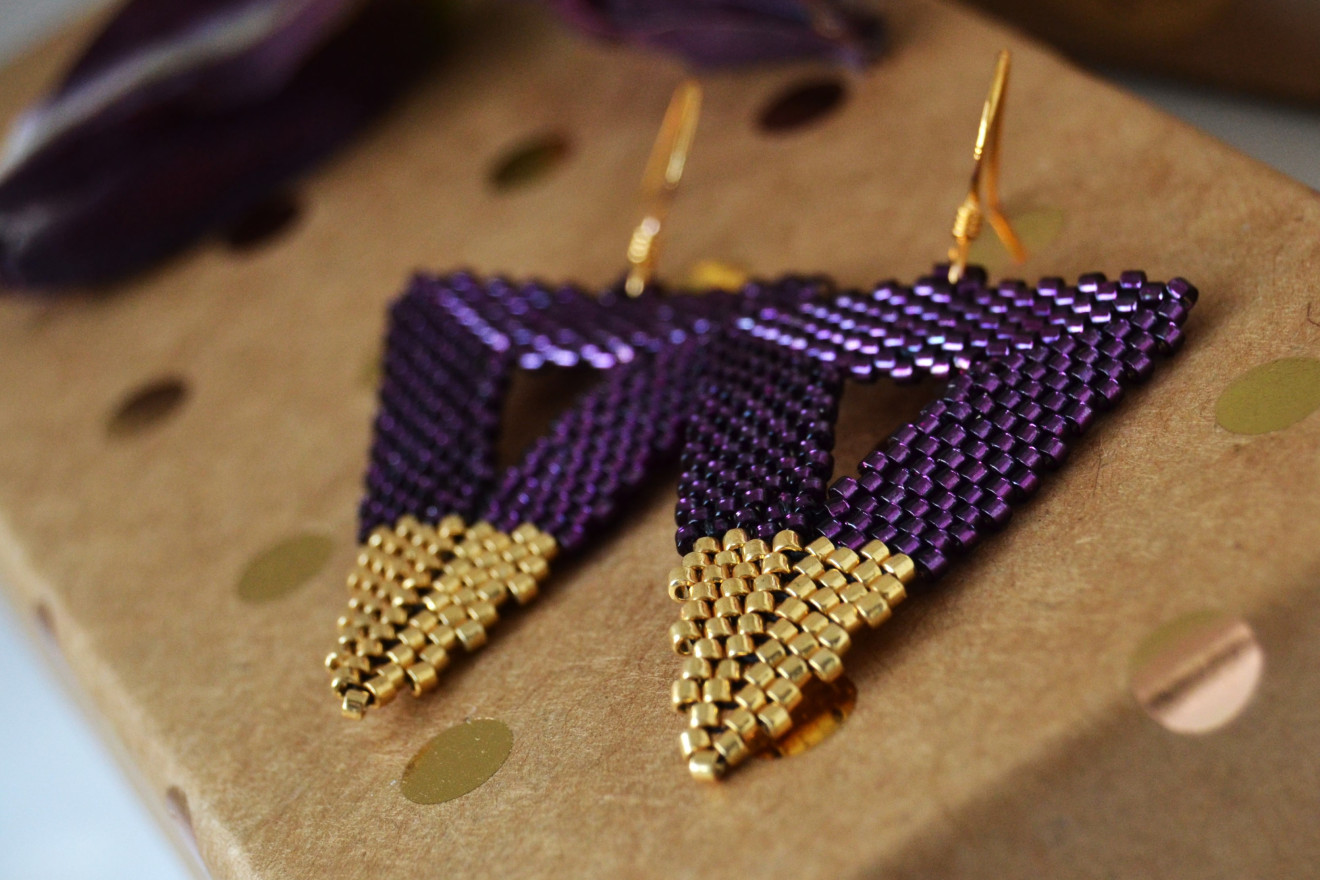 Висящи обици от новата колекция,, Radiant orchid,,. Леки и много удобни за носене, с екстравагантна форма и цвят.