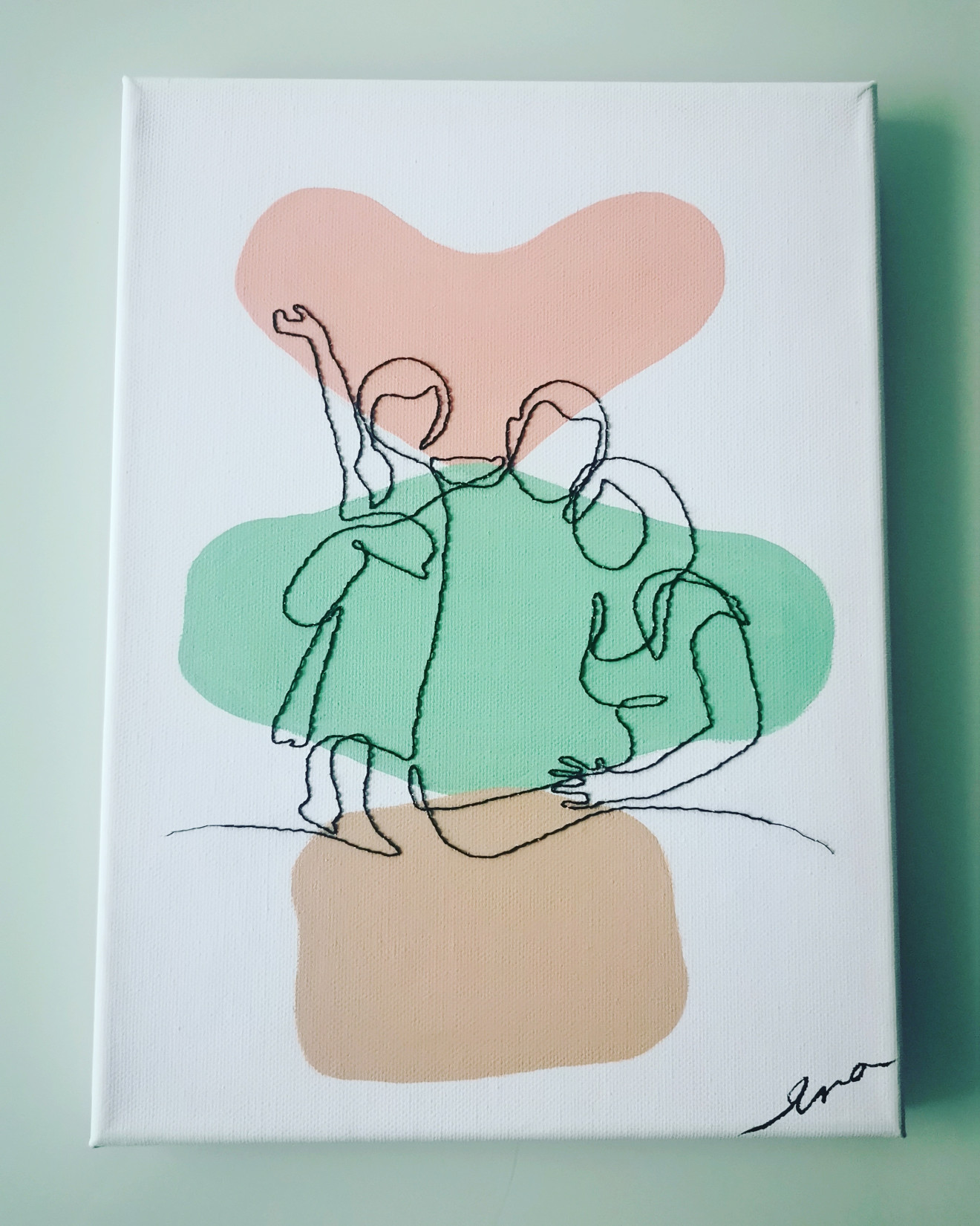 Платно рисувано с акрилни бои, бродирано на ръка, направено с любов. Може да бъде изработено подобно или по избор с друга one line картина на семейство. Всяка картина е индивидуална и сама за себе си. Няма как да бъде повторена ❤️