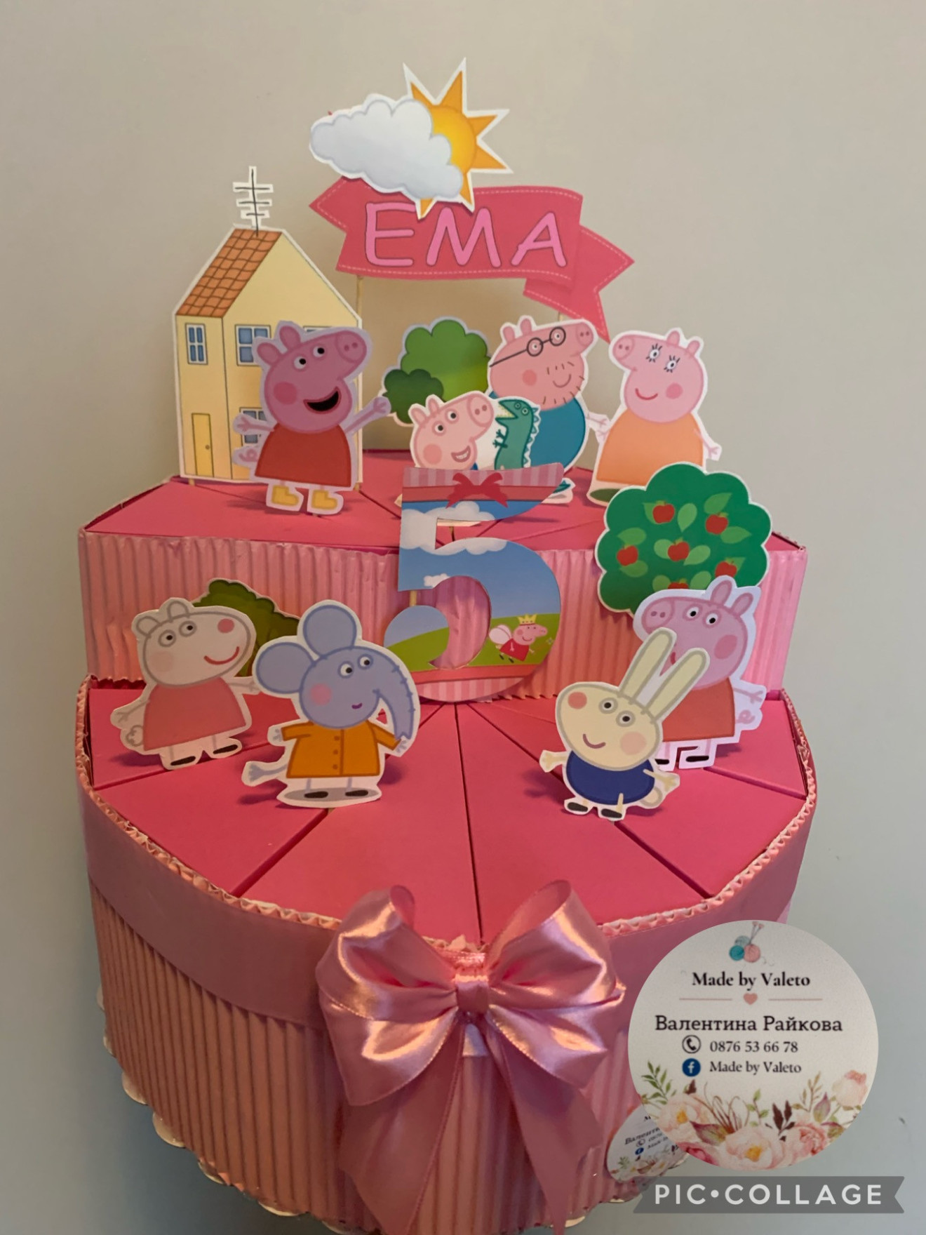 Торта от картонени парчета, пълнеж и тема по желание. В цената е включено празно парче и цялостно декориране на тортата по избраната тема.