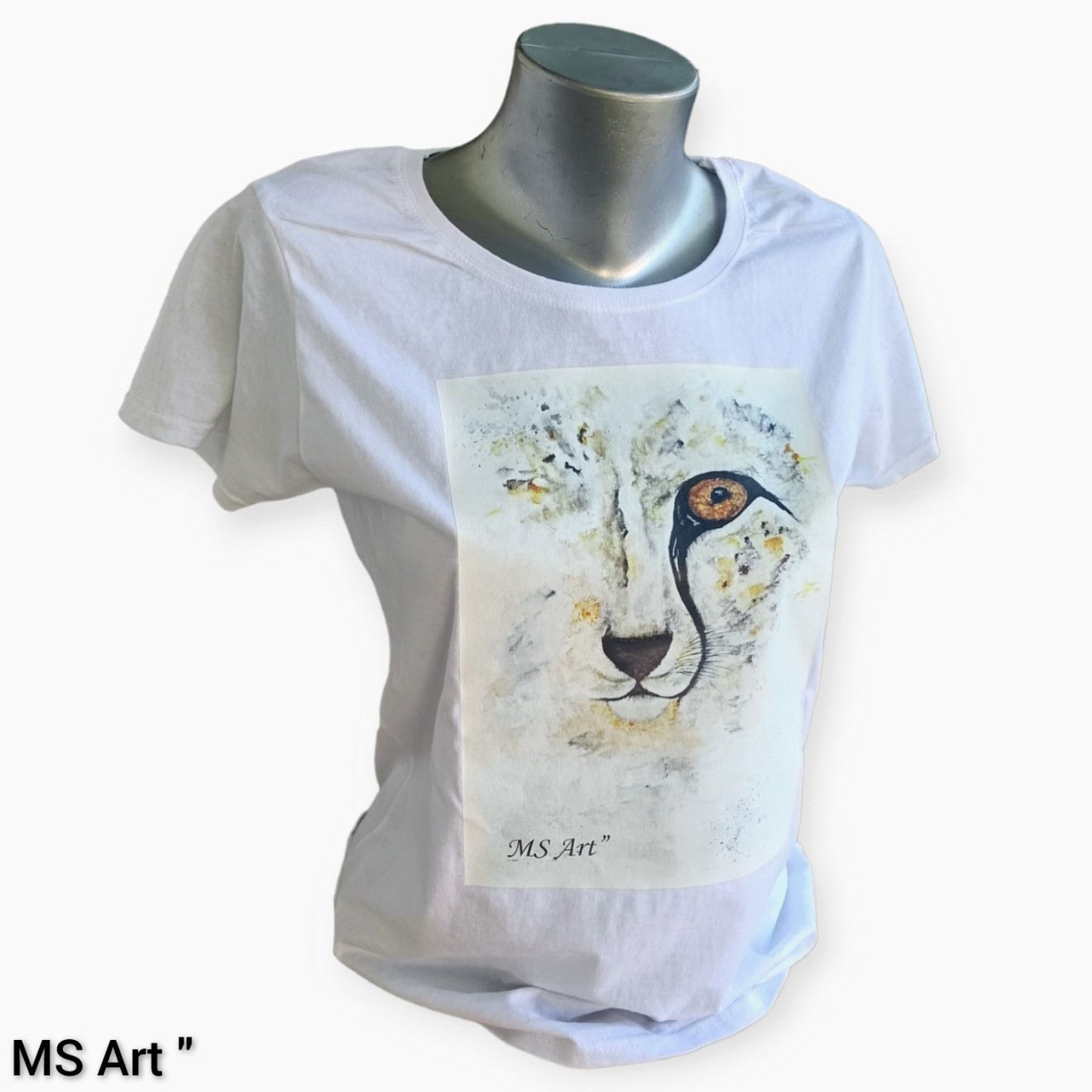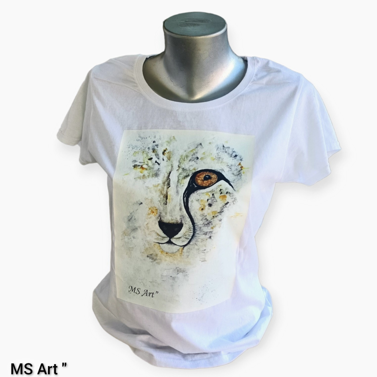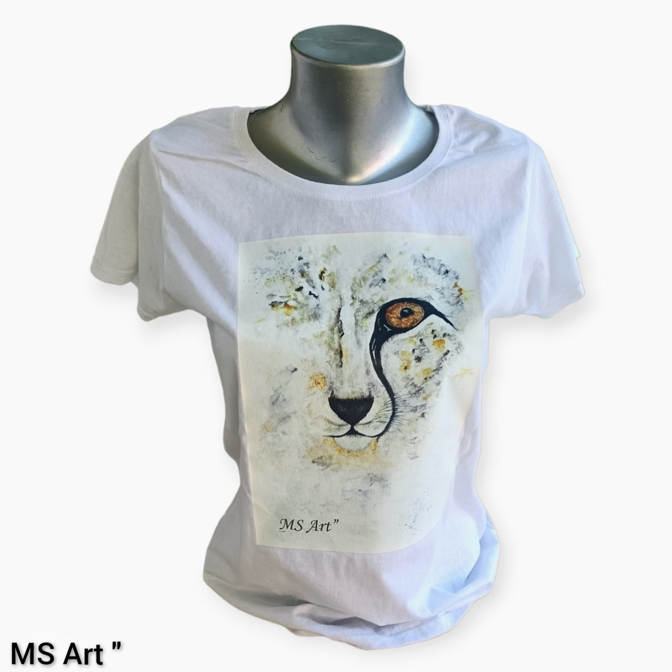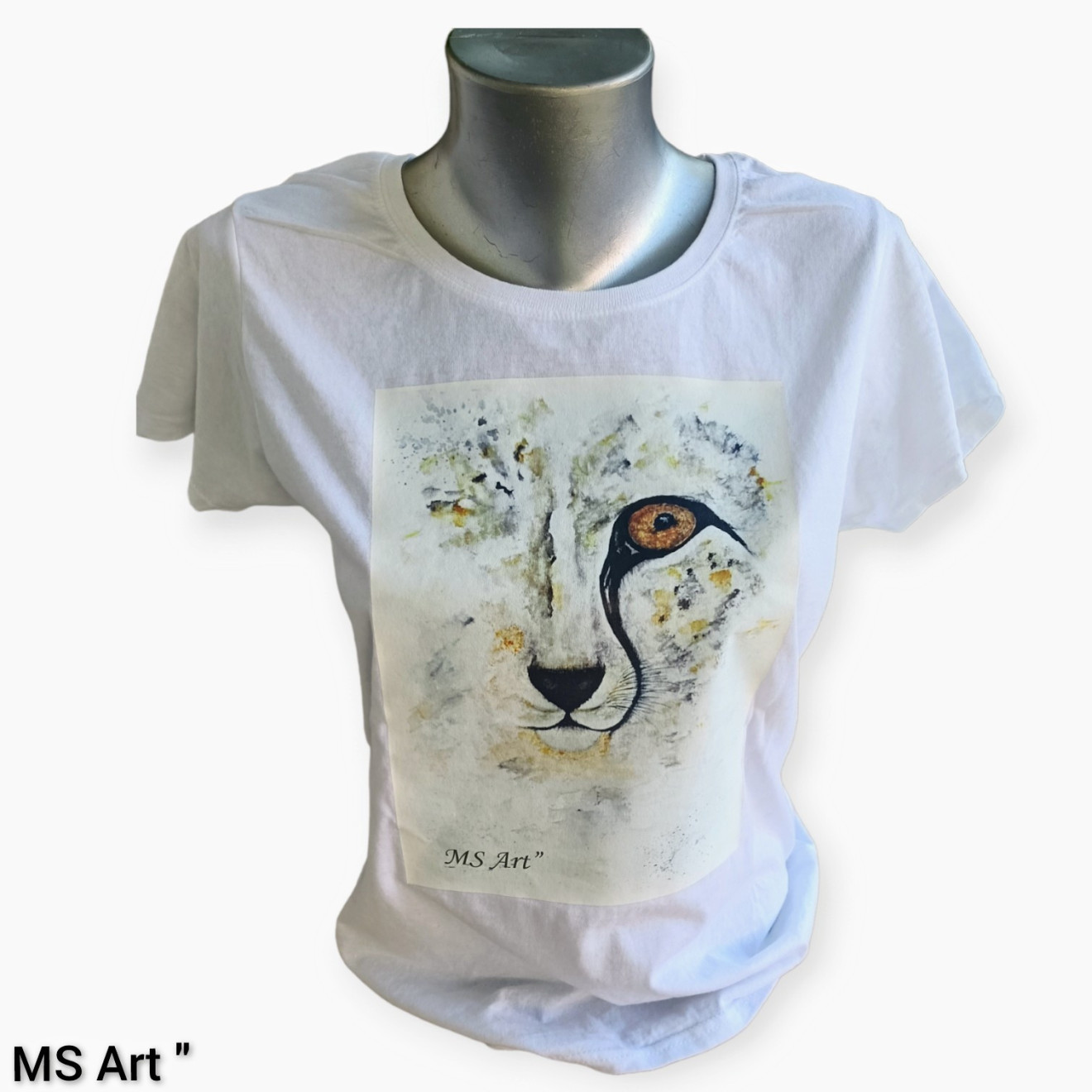 Дамска тениска с трансфер на моя картина. Ако и Вие искате такава, имам една свободна с размер М, цената и е 22 лв, но ако искате да поръчате в друг размер, може да ми пишете...