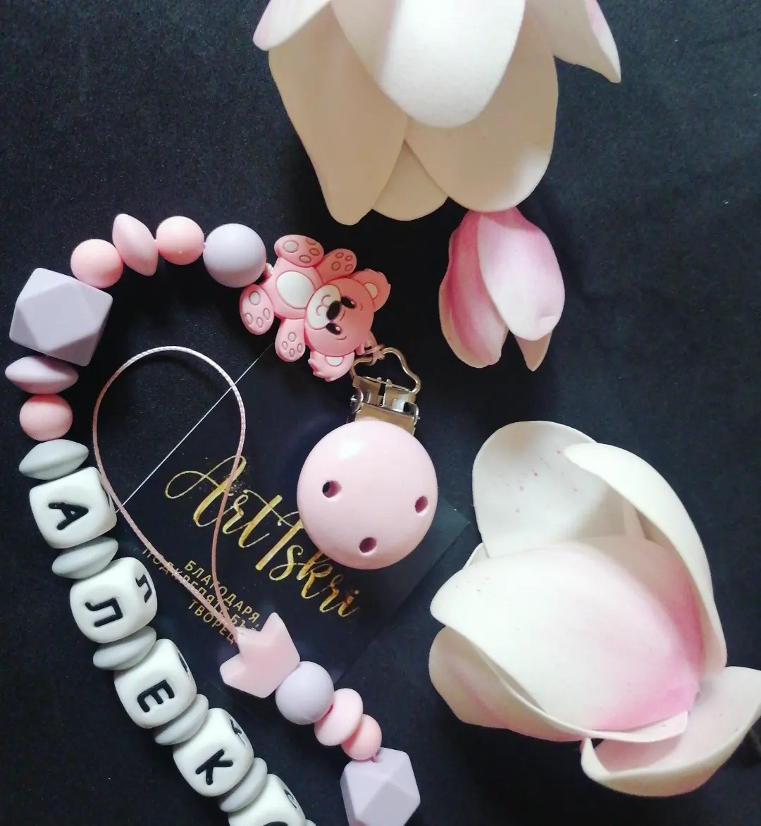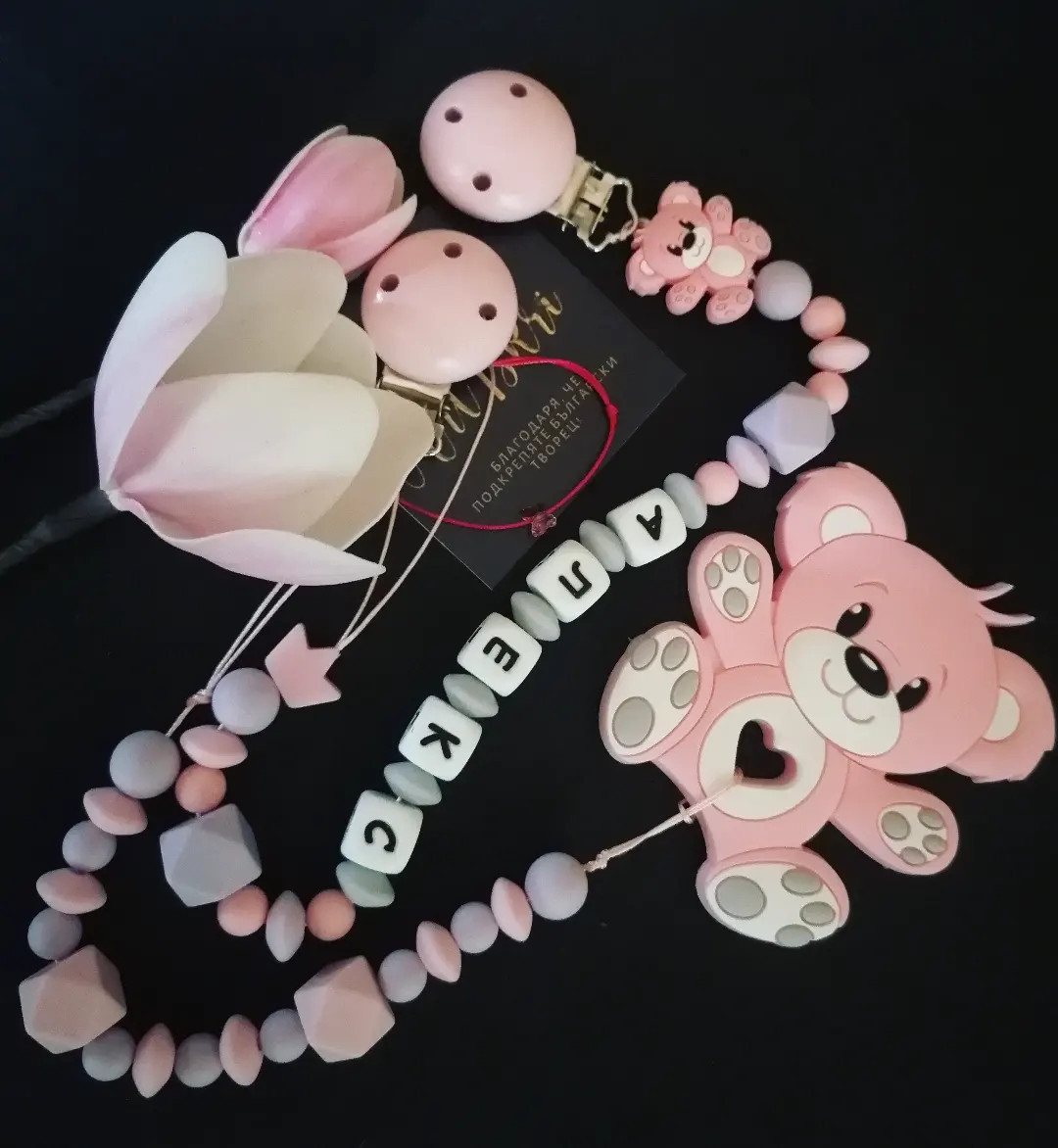 Комплект клипсове за биберон и с гризалка, с персонализация. Изработени от напълно безвредни силиконови елементи. ❤️