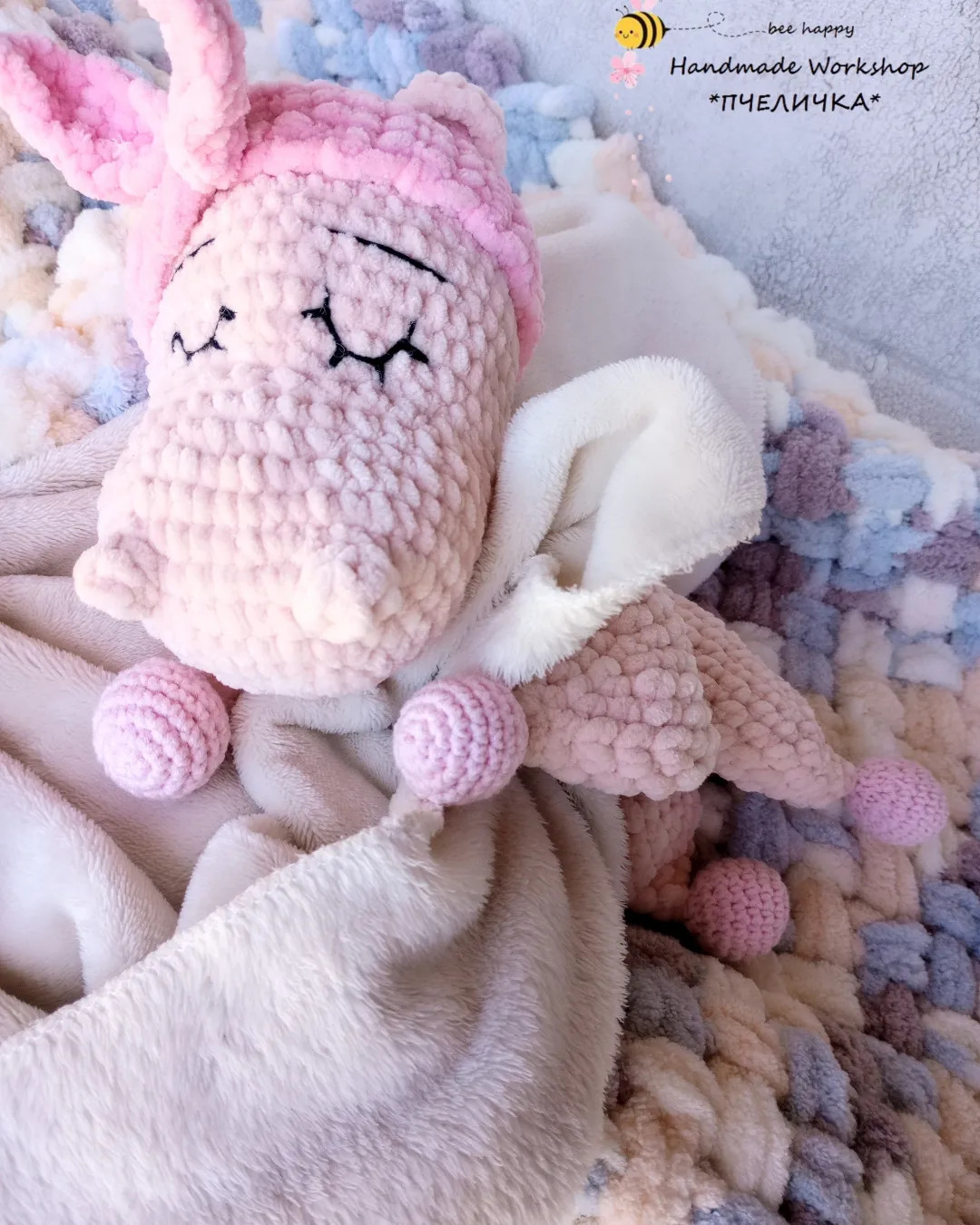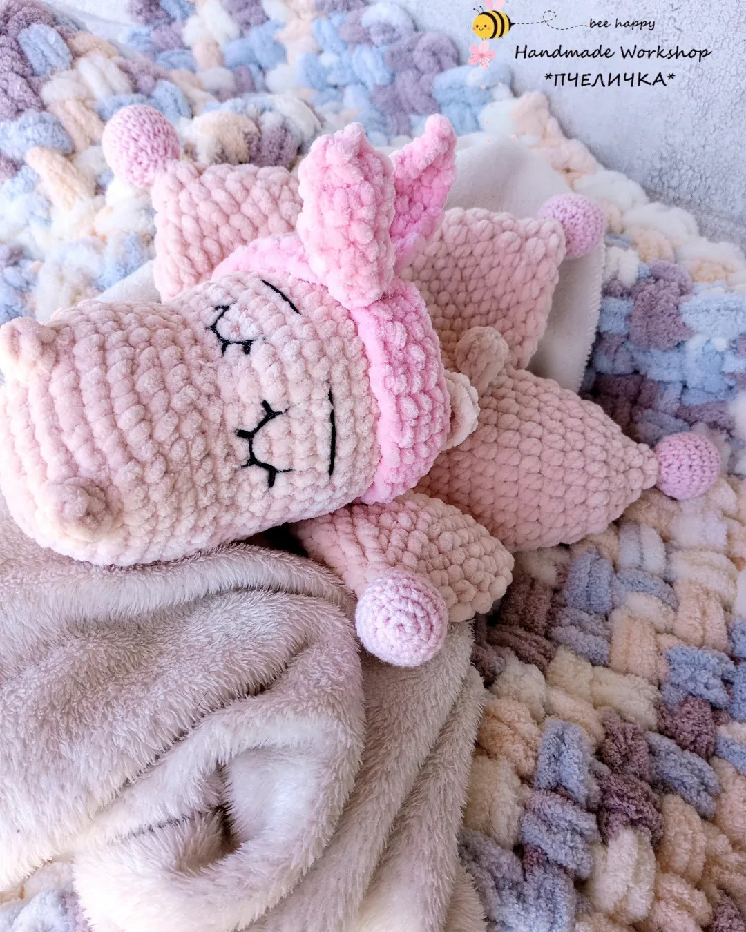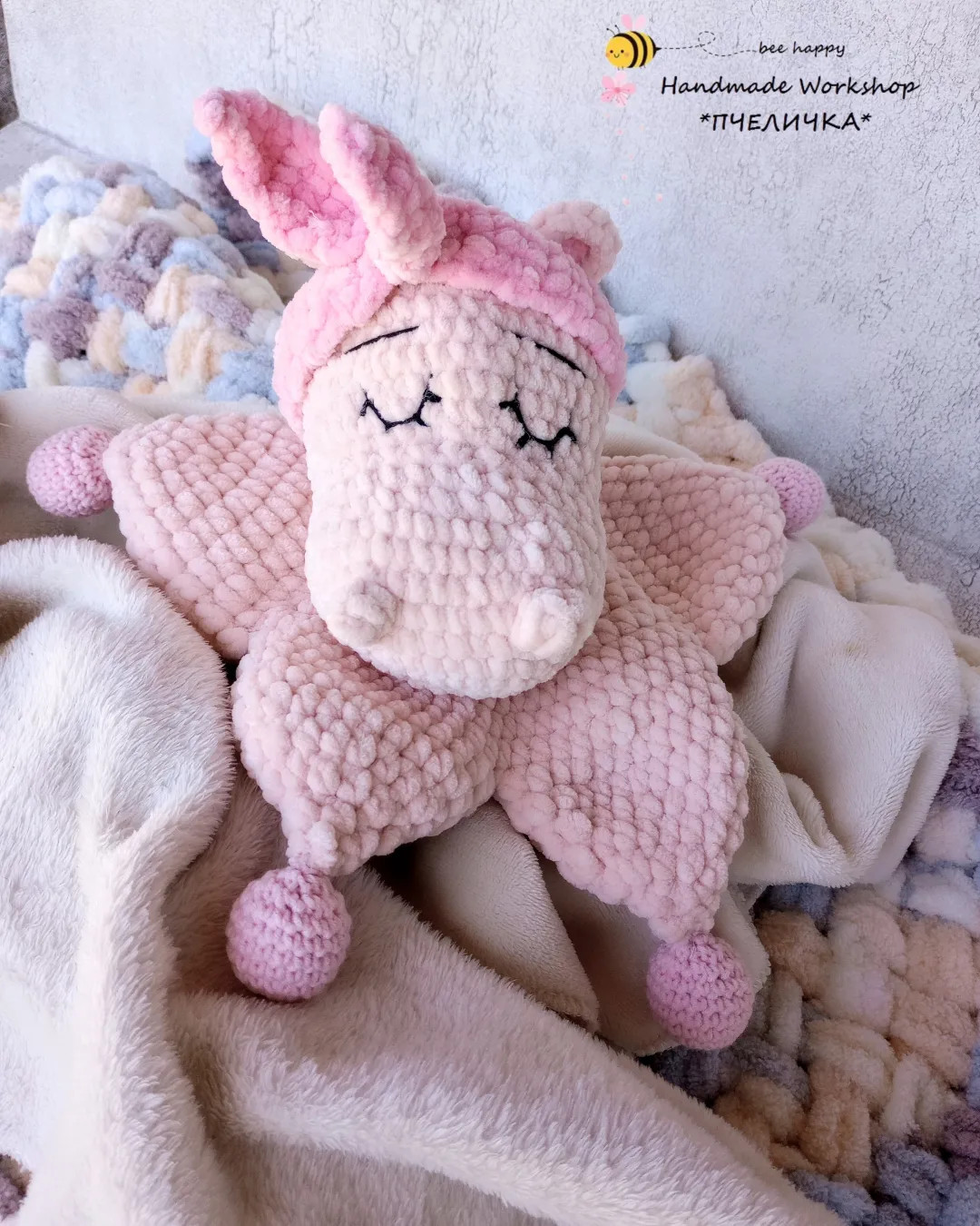 ????? Ето я и нея - най-гушливото хипопотамче! ? Изплетена на една кука от мека плюшена прежда, предназначена за бебешко и детско плетиво, висококачествен гранулиран, силиконов пух, тялото е без пълнеж. ? Чудесен подарък за най-малките, за игра, за гушкане или приспиване. ? Подходяща за деца от 0+ месеца, защото няма опасни елементи.