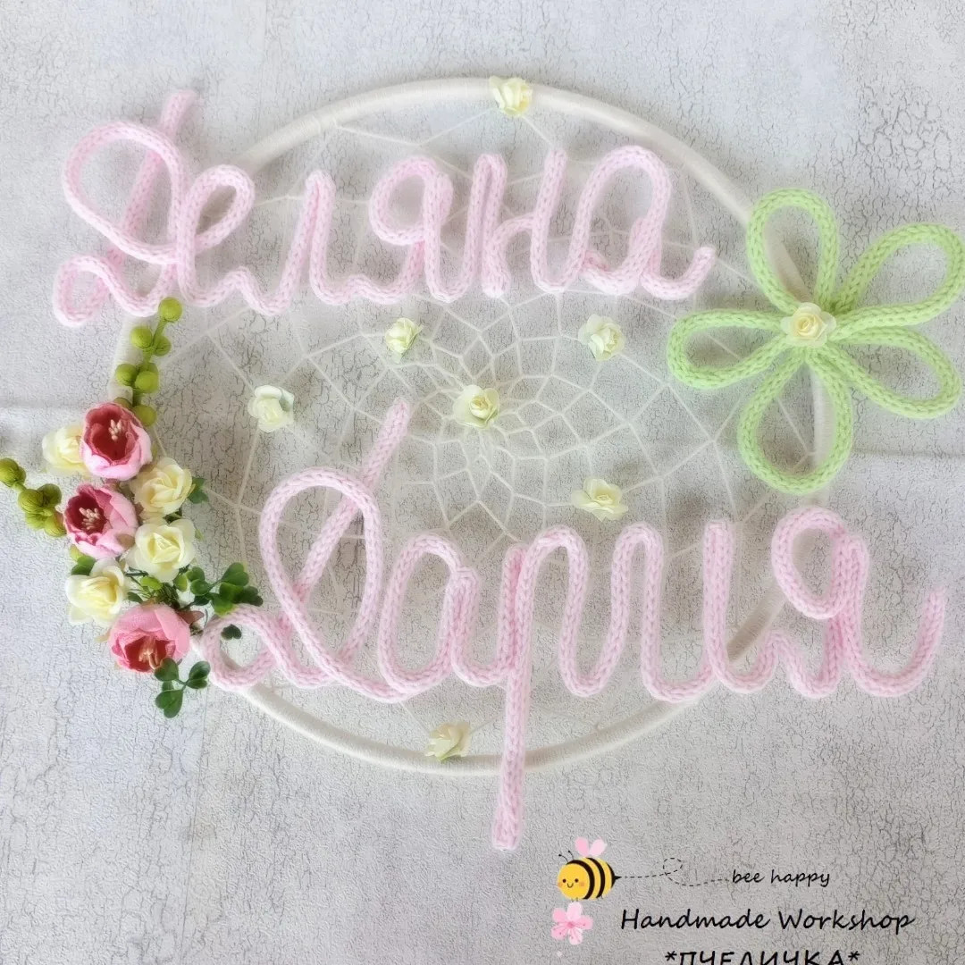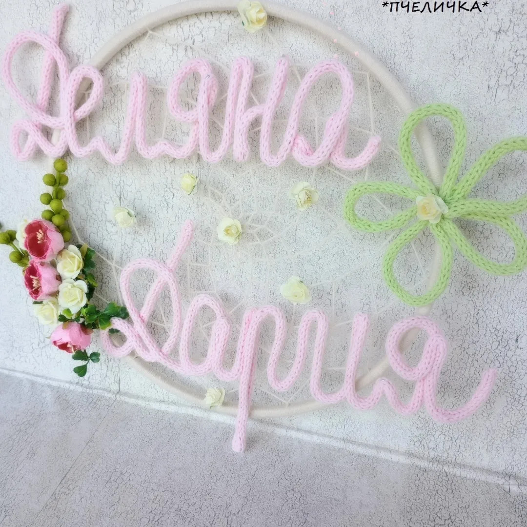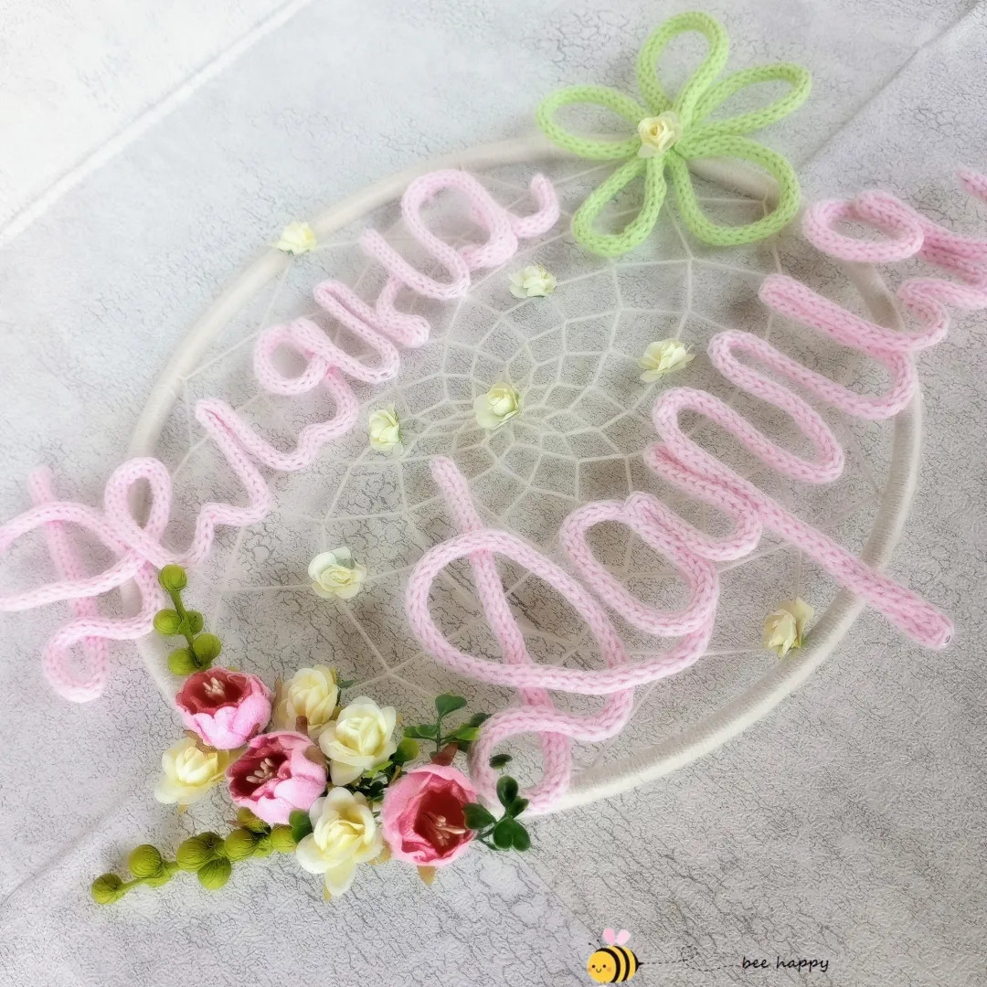 Ето и едно ново предложение! ? Персонализирана декорация за стена! ? С декорация от цветя и имена от плетен шнур. ? Диаметър на ринга: 30,5 см. Може да бъде изработен в цветове и декорация по ваш избор! Развихрете въображението си, а аз ще се постарая да изпълня вашите желания!
