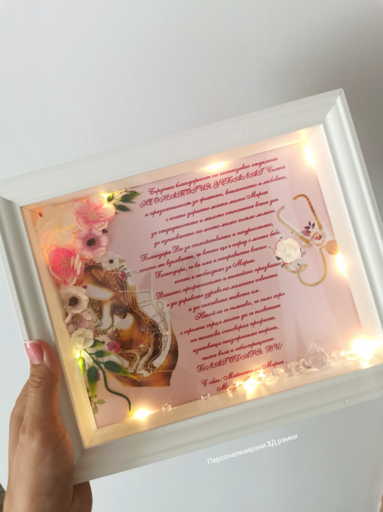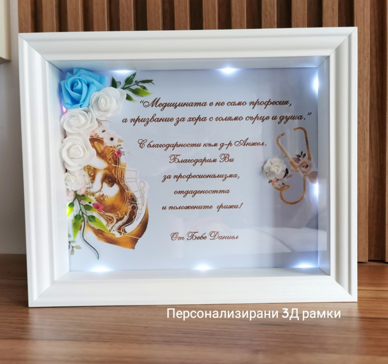 Персонализирани светещи 3д рамки с текст, дизайн и снимка по ваш избор. Изработвам по поръчка за всеки повод.