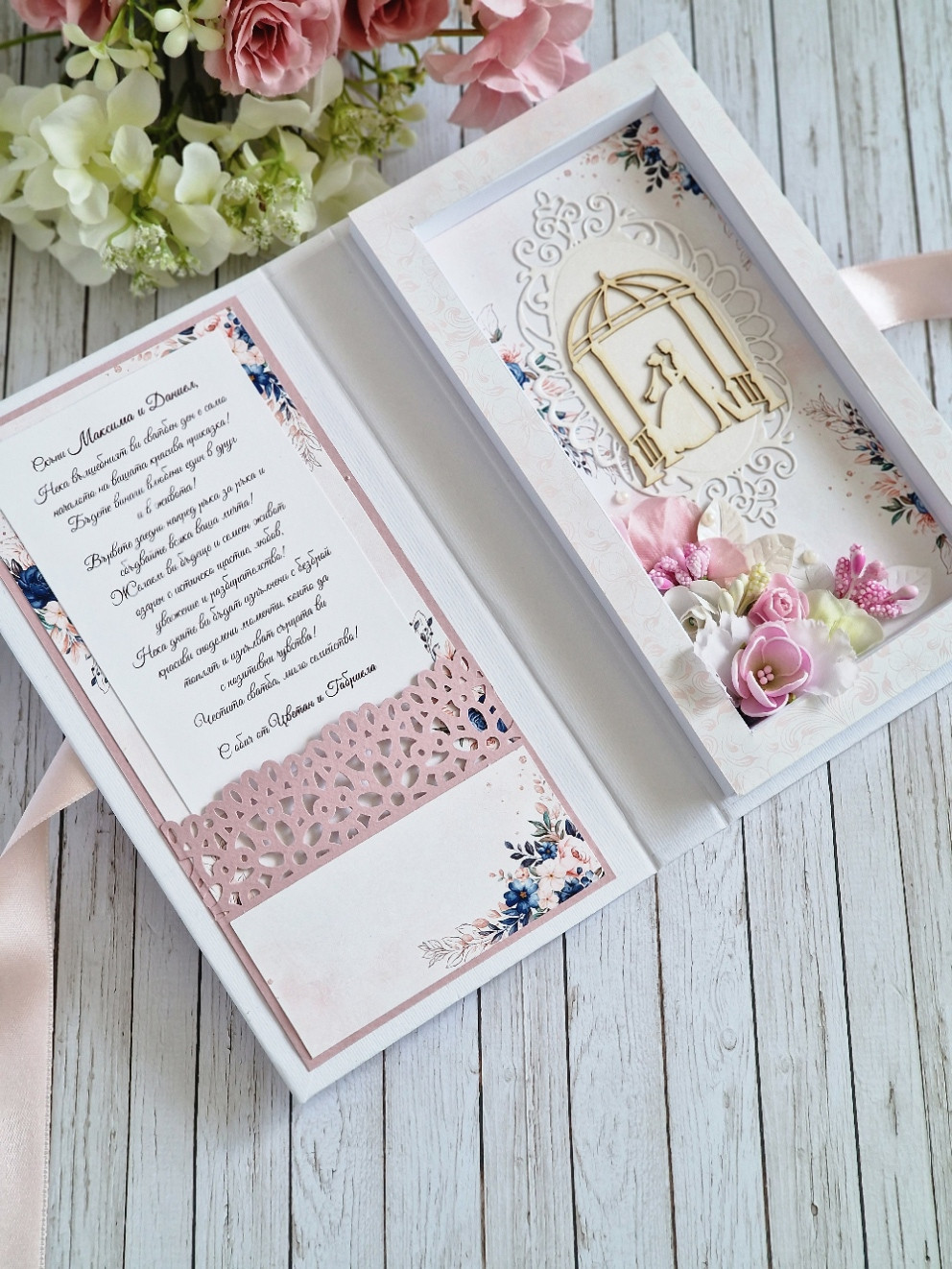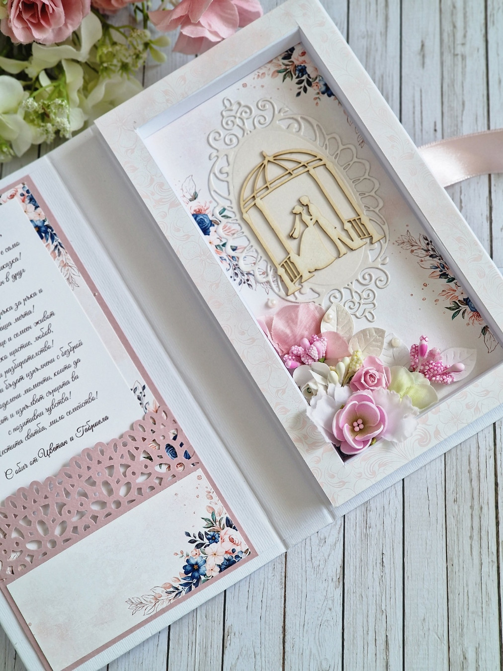 Поздравителна сватбена картичка плик с джоб за паричен подарък или ваучер ?Поздравителна сватбена картичка с размери 21/10см ?С джоб за паричен подарък ?С възможност за поставяне на пожелания #craftytreasuresstudio #сватба #младоженци #празник #картичка #кутия #книга #ръчноизработенподарък #пликзапари #Плик