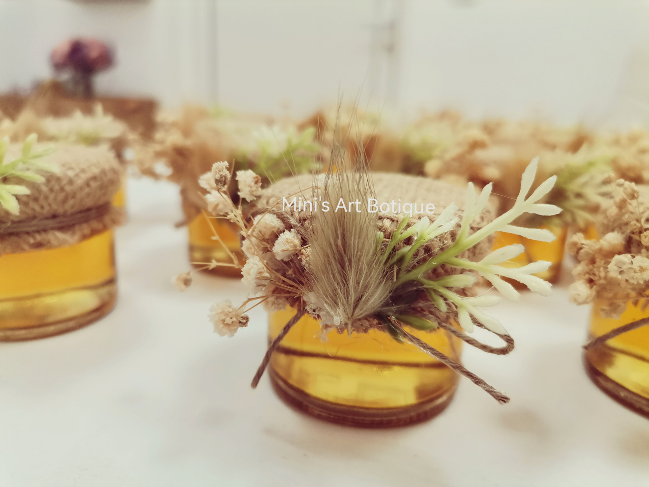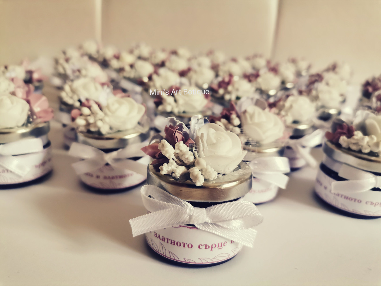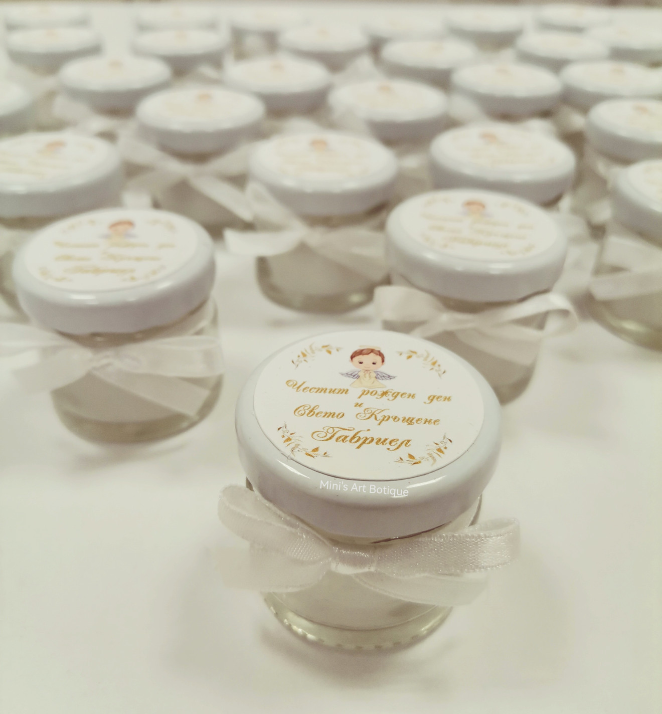 Красив начин да поднесете подаръци на вашите гости. Бурканчетата с мед могат да бъдат съобразени с темата и цвета на вашето тържество. За въпроси и повече информация съм насреща
