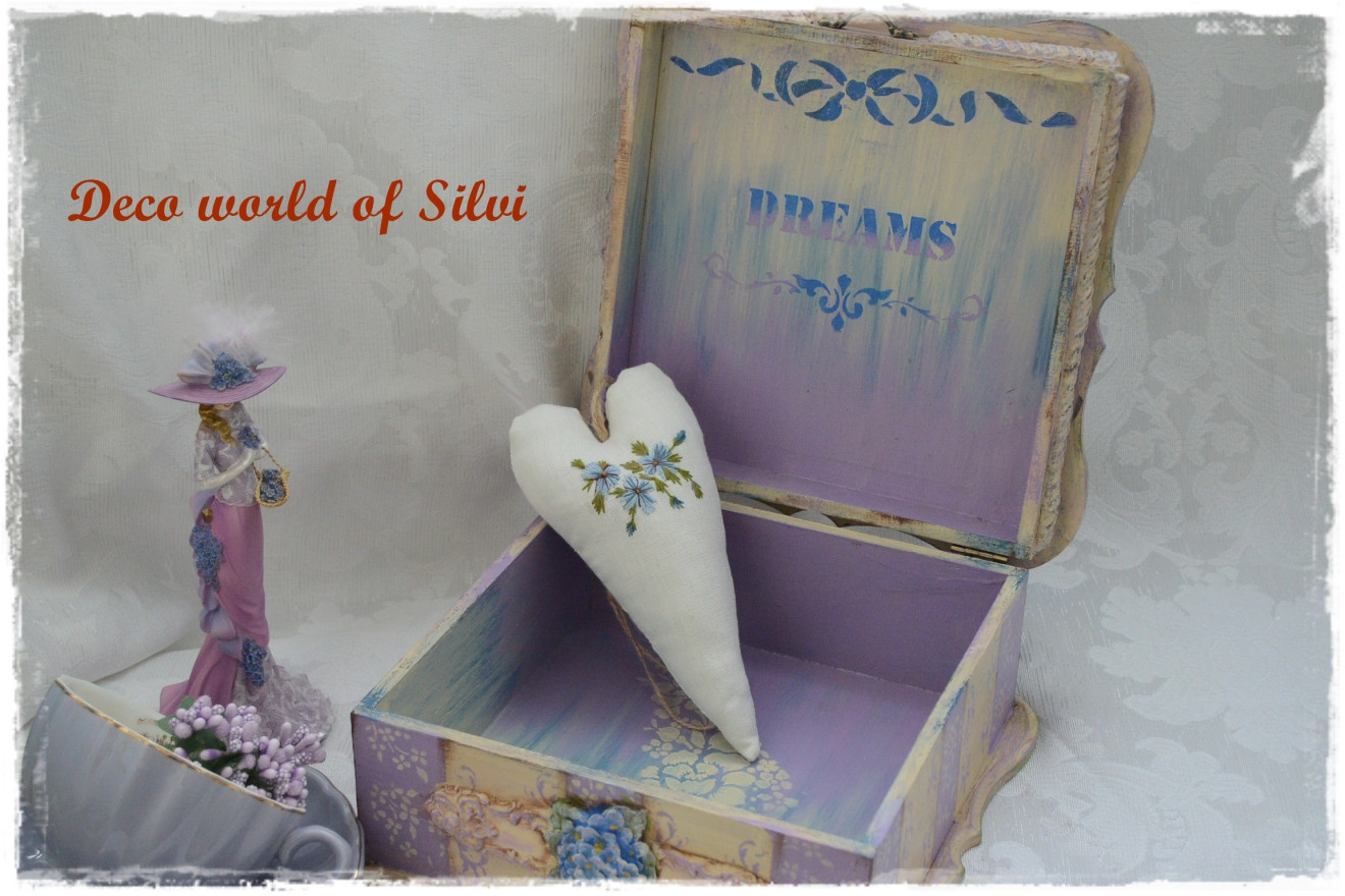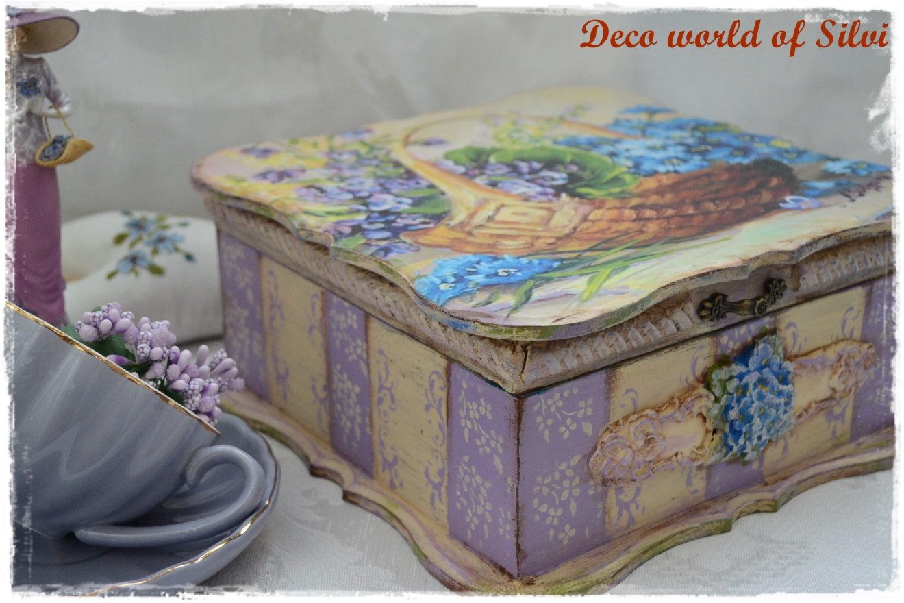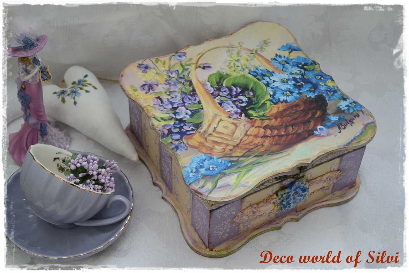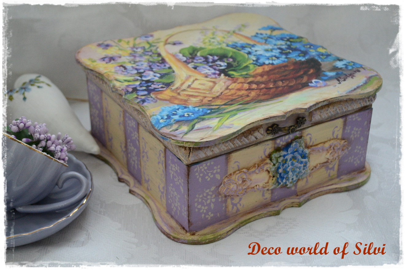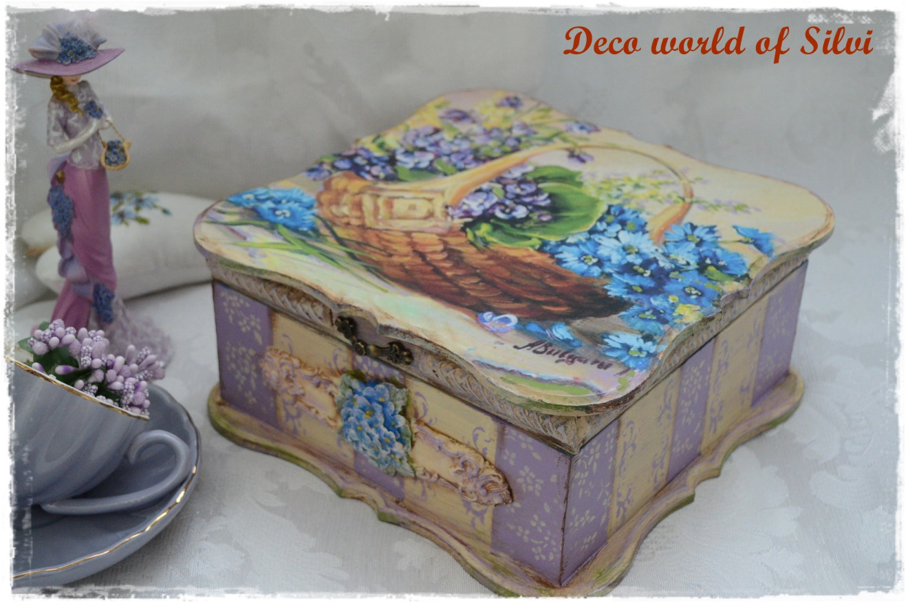 Стилна кутия за бижута .Декорация с декупаж и елементи от глина