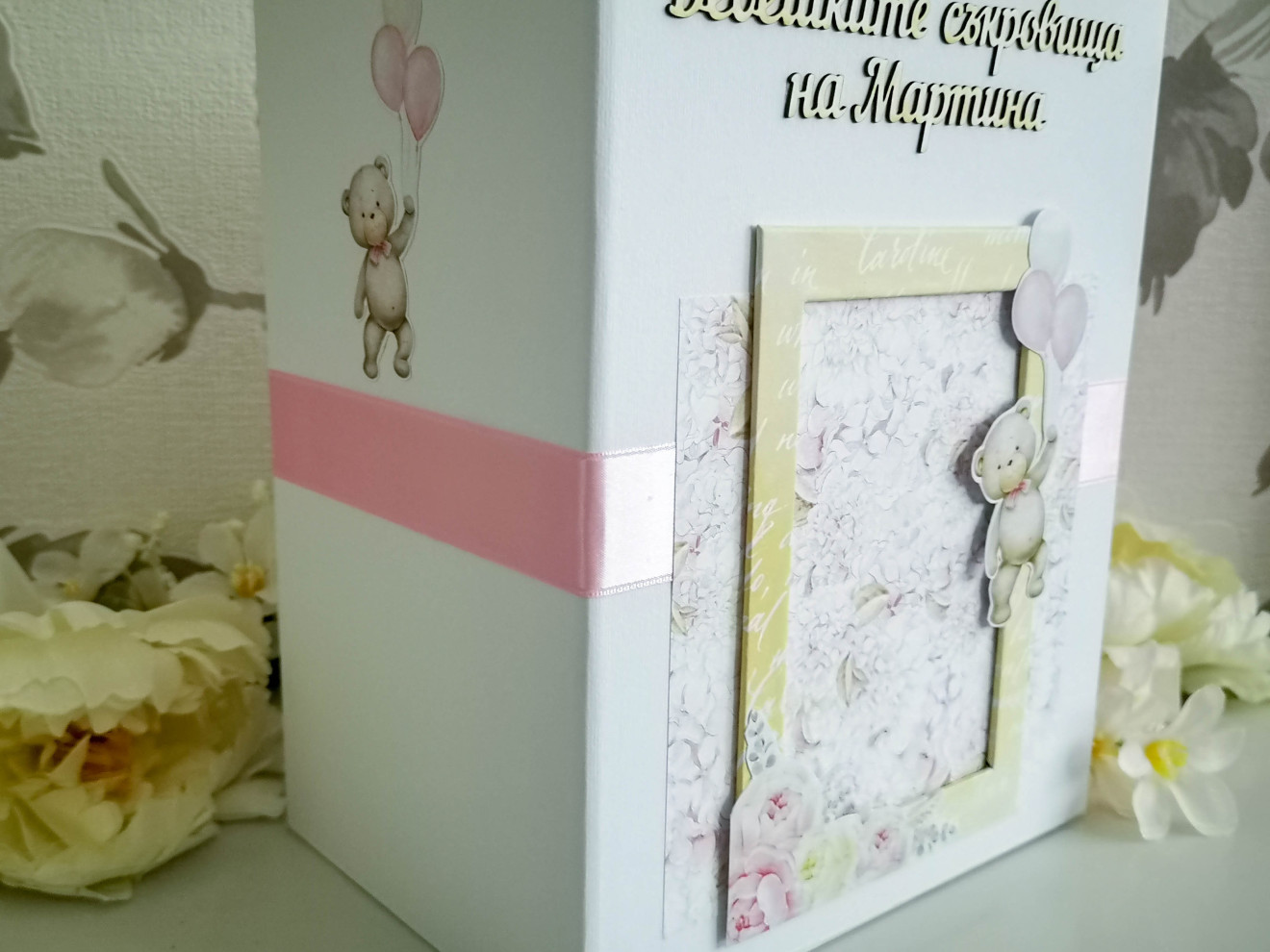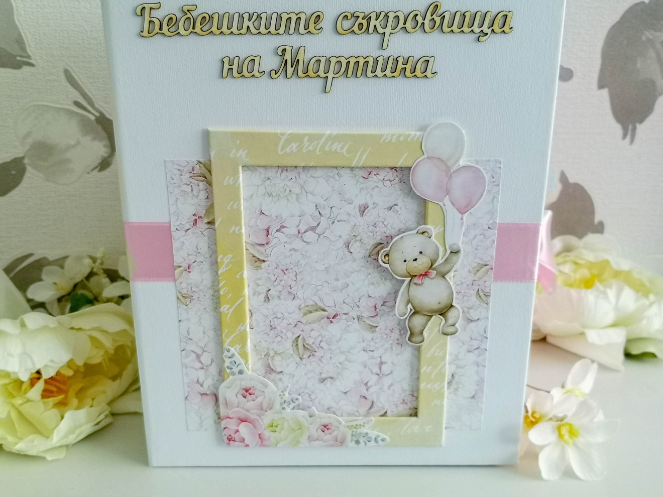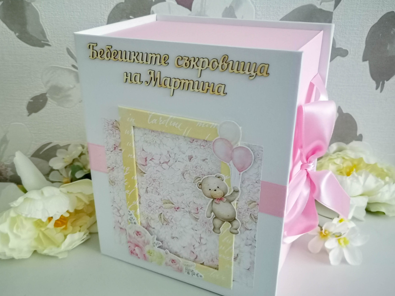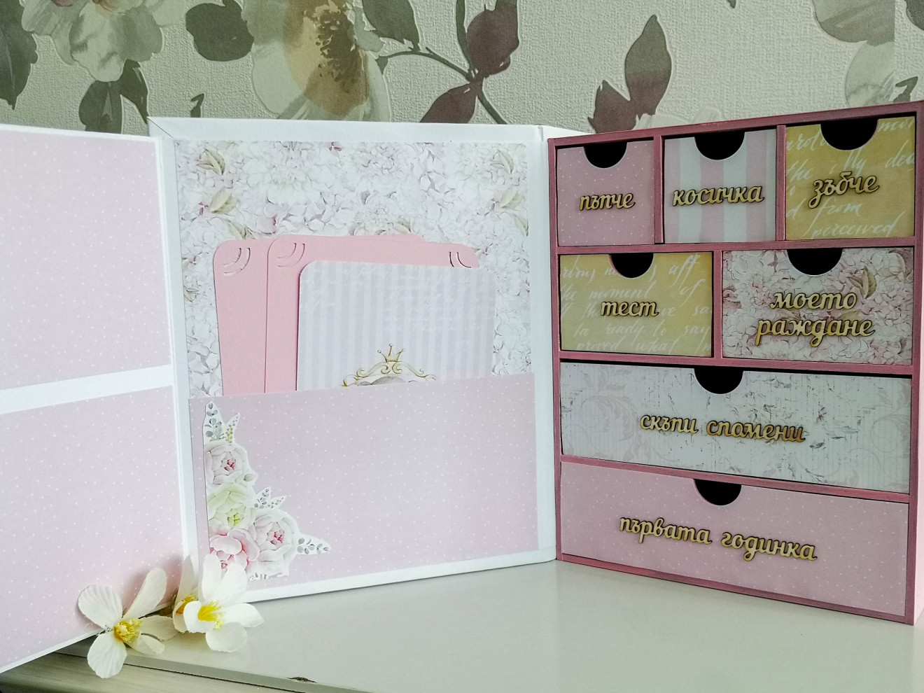 Една малко по-различна кутия за бебешки съкровища. Изработва се по поръчка и съобразно предпочитания ви, както за момиче, така и за момче. #Дървена #кутия, със седем чекмеджета. Пълна персонализация и надписване по ваш избор. Съдържа визитка с данните на бебето, място за 4 снимки и картичка с уникален дизайн. Има възможност за изработка на мини албумче за снимки от първата годинка и плик с картички за записване на данни от растежа. Срок на изработка 5 дни. Обявеният срок е ориентировъчен и варира в зависимост от моментната ми натовареност. За повече информация и поръчка, пишете ми или се обадете на посочения телефон. www.facebook.com/HandmadeByYasnaBozhinova/