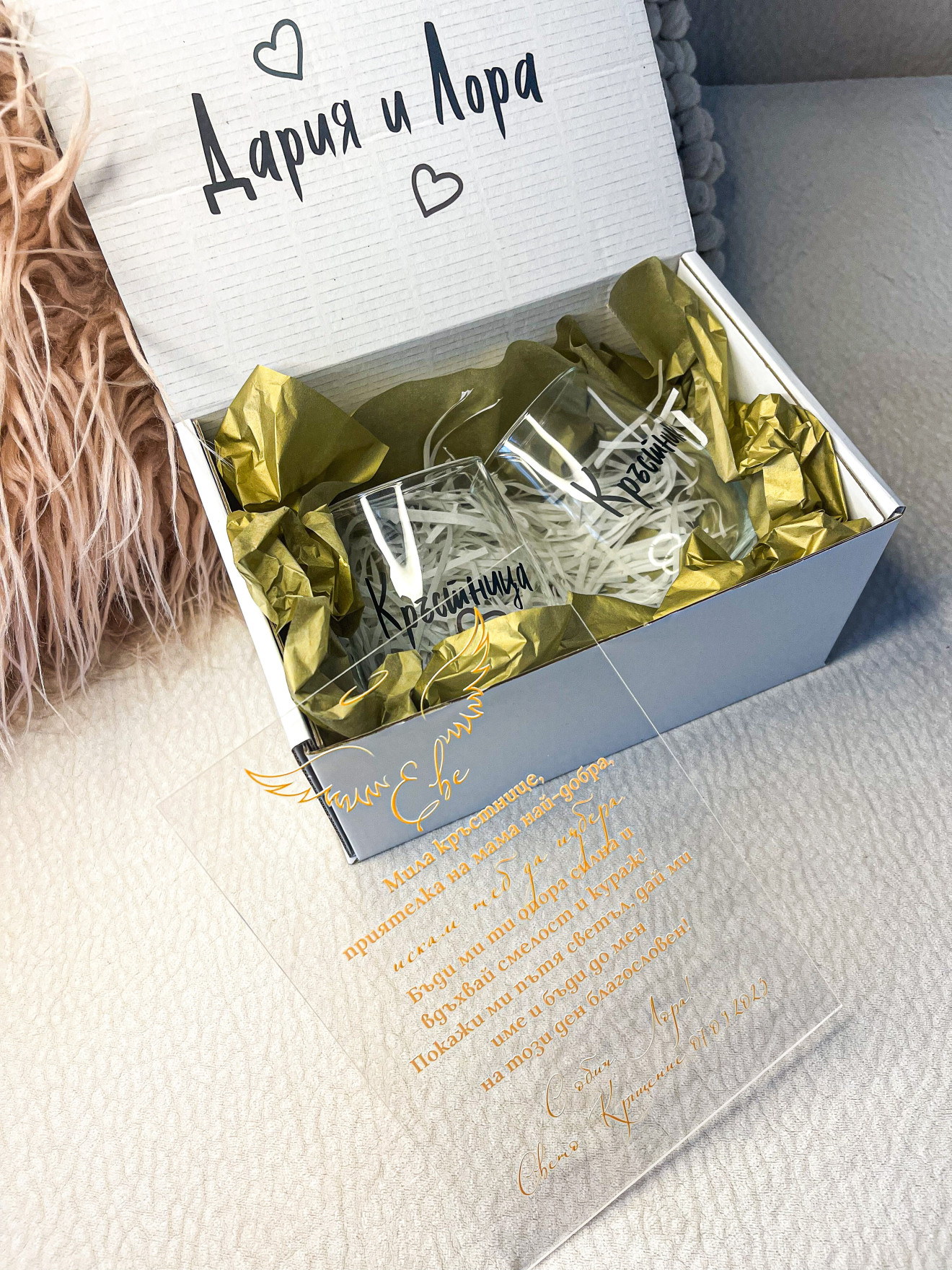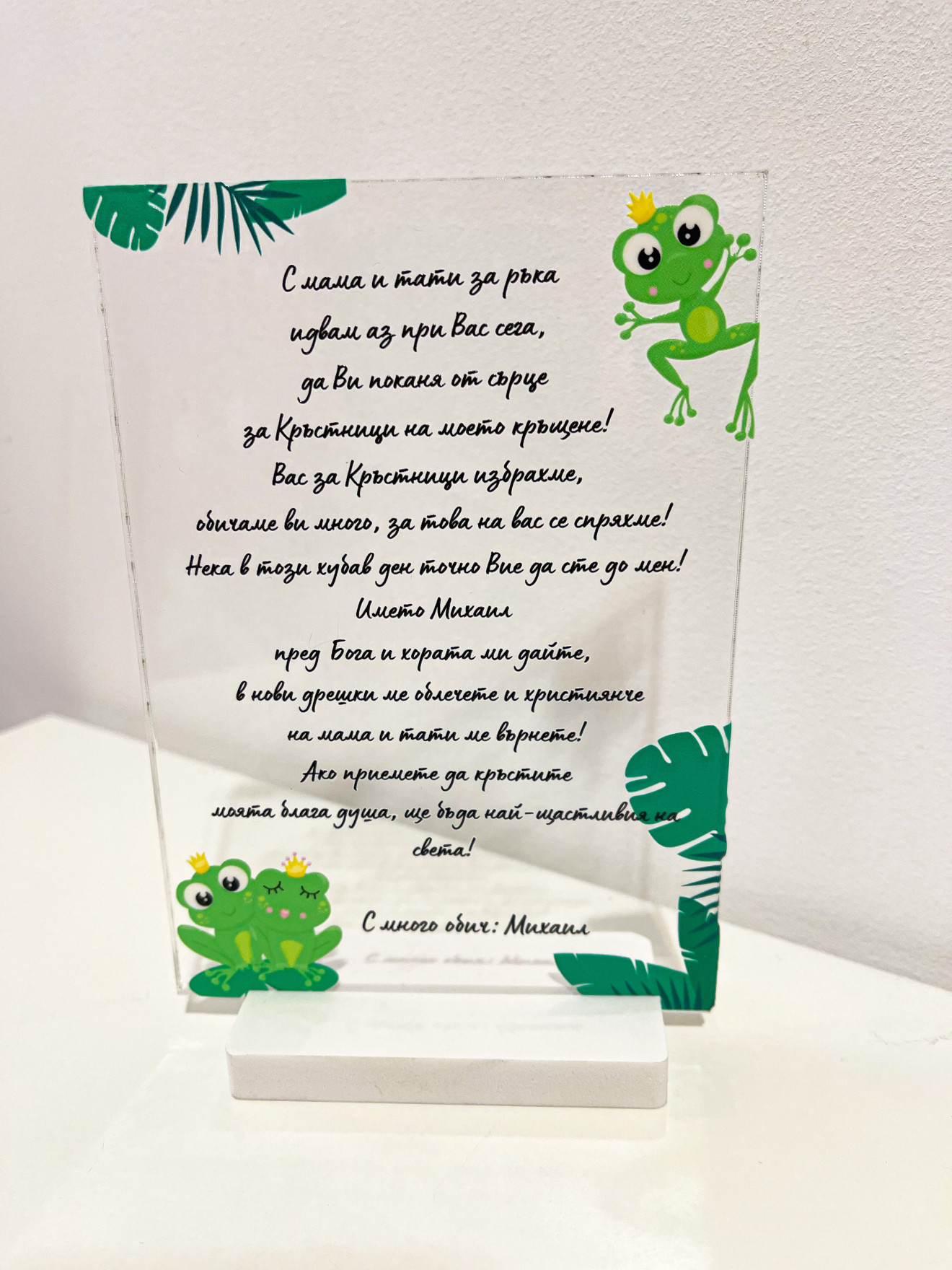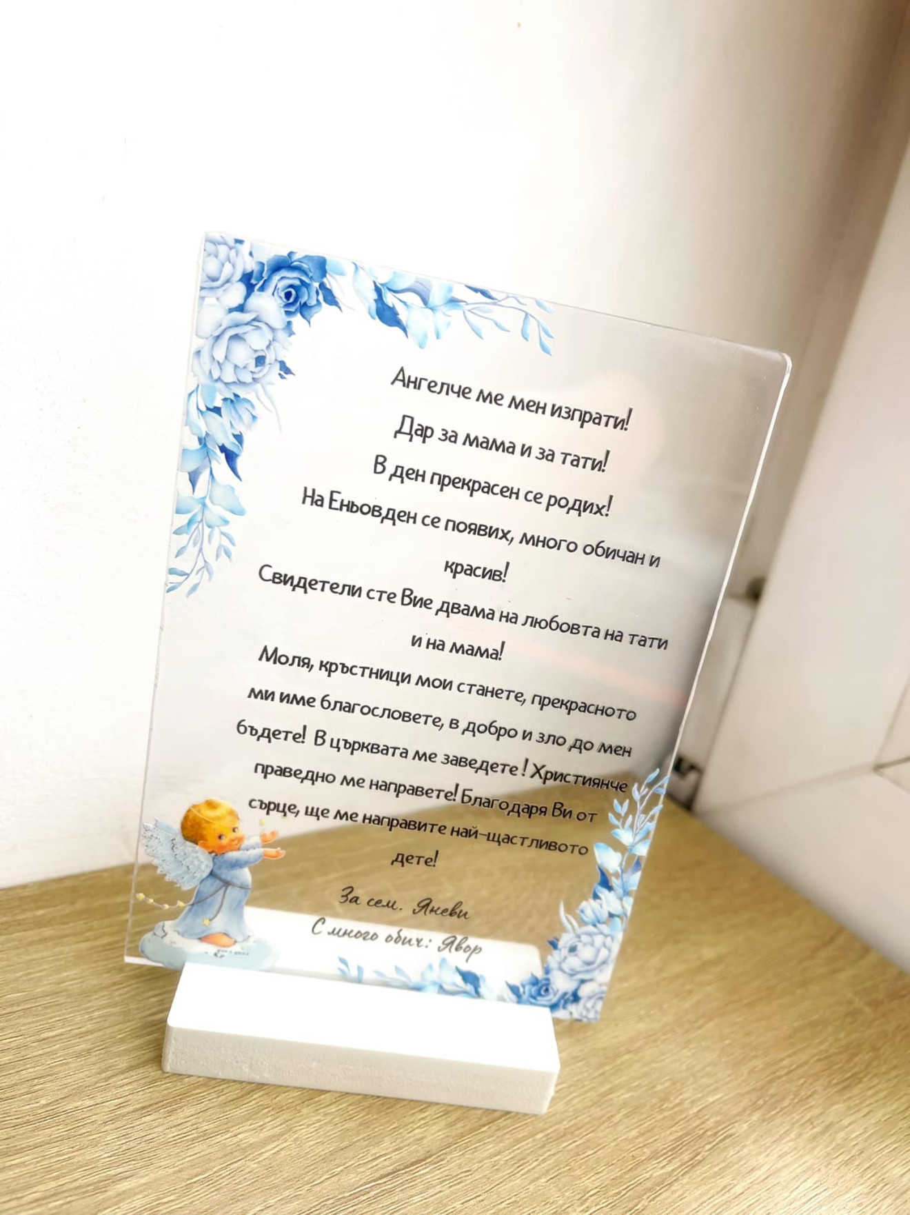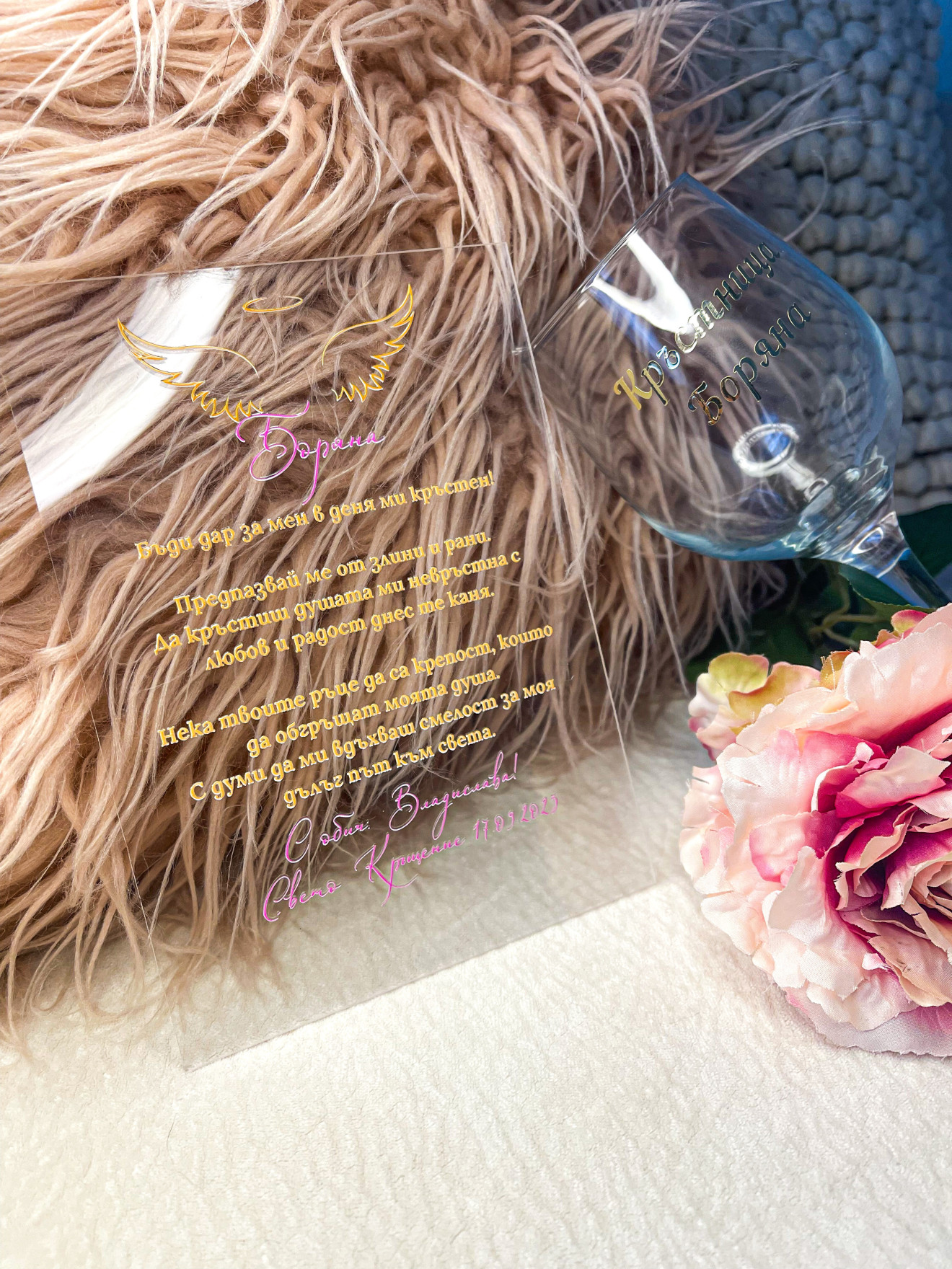 Акрилни покани за кръщене, както и подаръци за кръстниците към тях