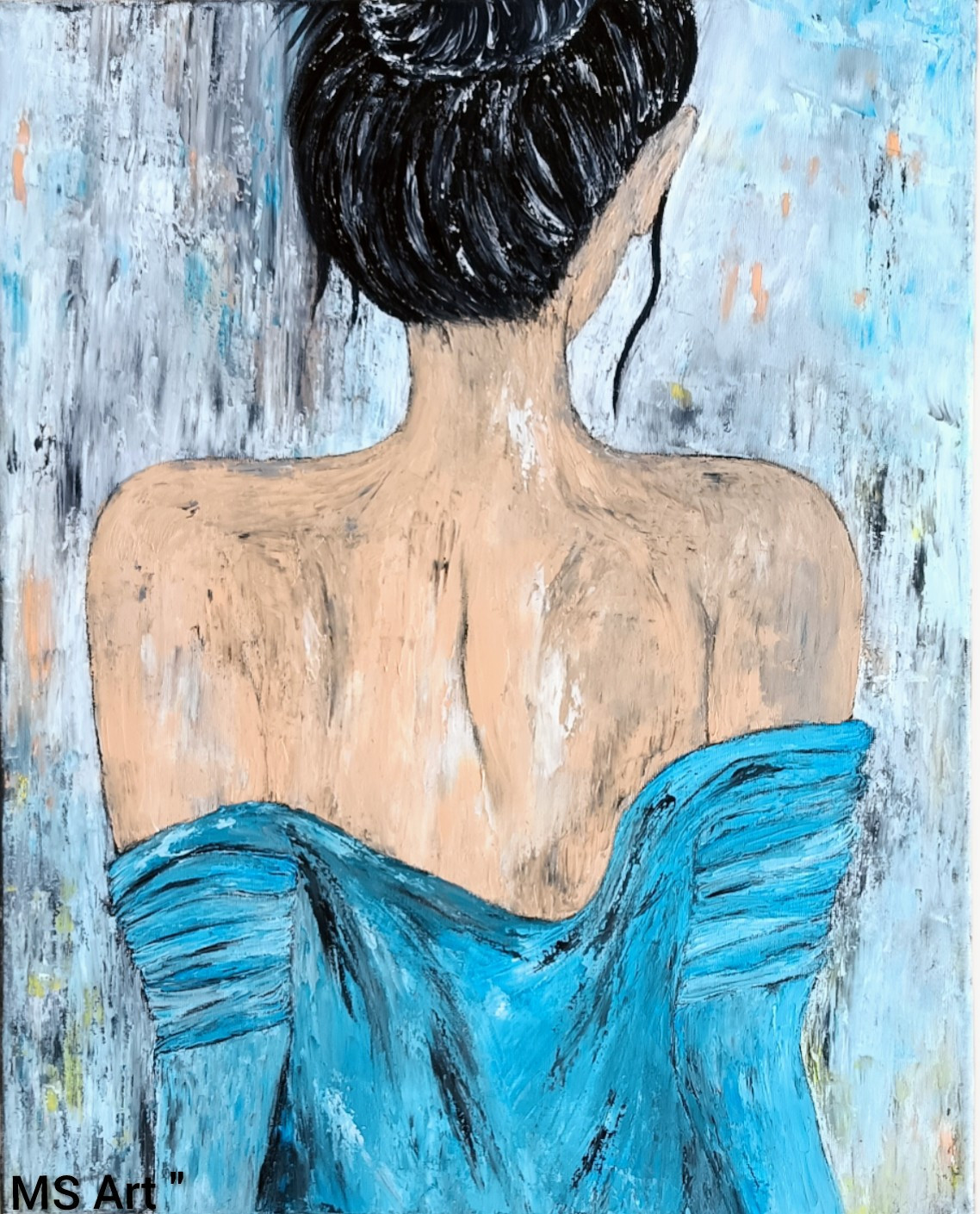 Силует на жена в гръб" #Картина с #масло върху #платно с подрамка, изцяло рисувана с #шпакла, размери 40/50 см, цена 150 лв.