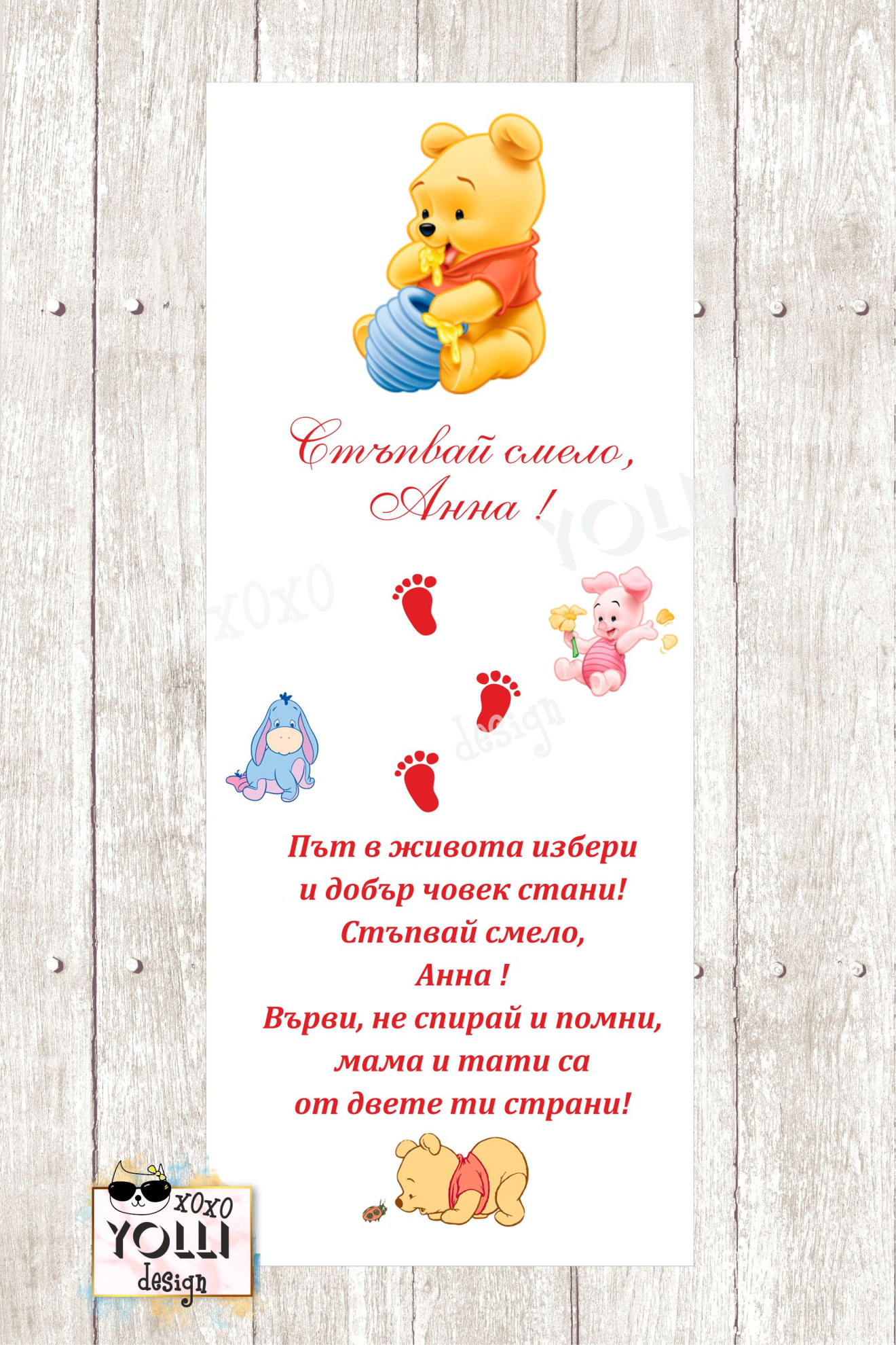 Прохождането на детето безспорно е един от на-чаканите и вълнуващи моменти. Затова трябва да бъде удостоен с красиво платно, по което детето да мине, за да стигне до наредените предмети, наречени с професии. Платната се отпечатват на винил с размер 120/50 см. Цветът и дизайнът на надписите е по ваш избор. Моля, напишете в коментар при поръчката името на детенцето. Стандартното време за изработка е 1-2 работни дни. При желание от ваша страна да бъде изпратено в същия ден + 3 лв към основната цена. Като можете да ни уведомите в коментар към поръчката, че искате експресна поръчка.